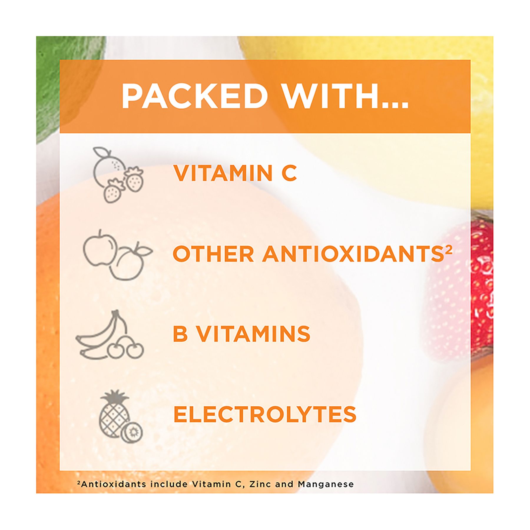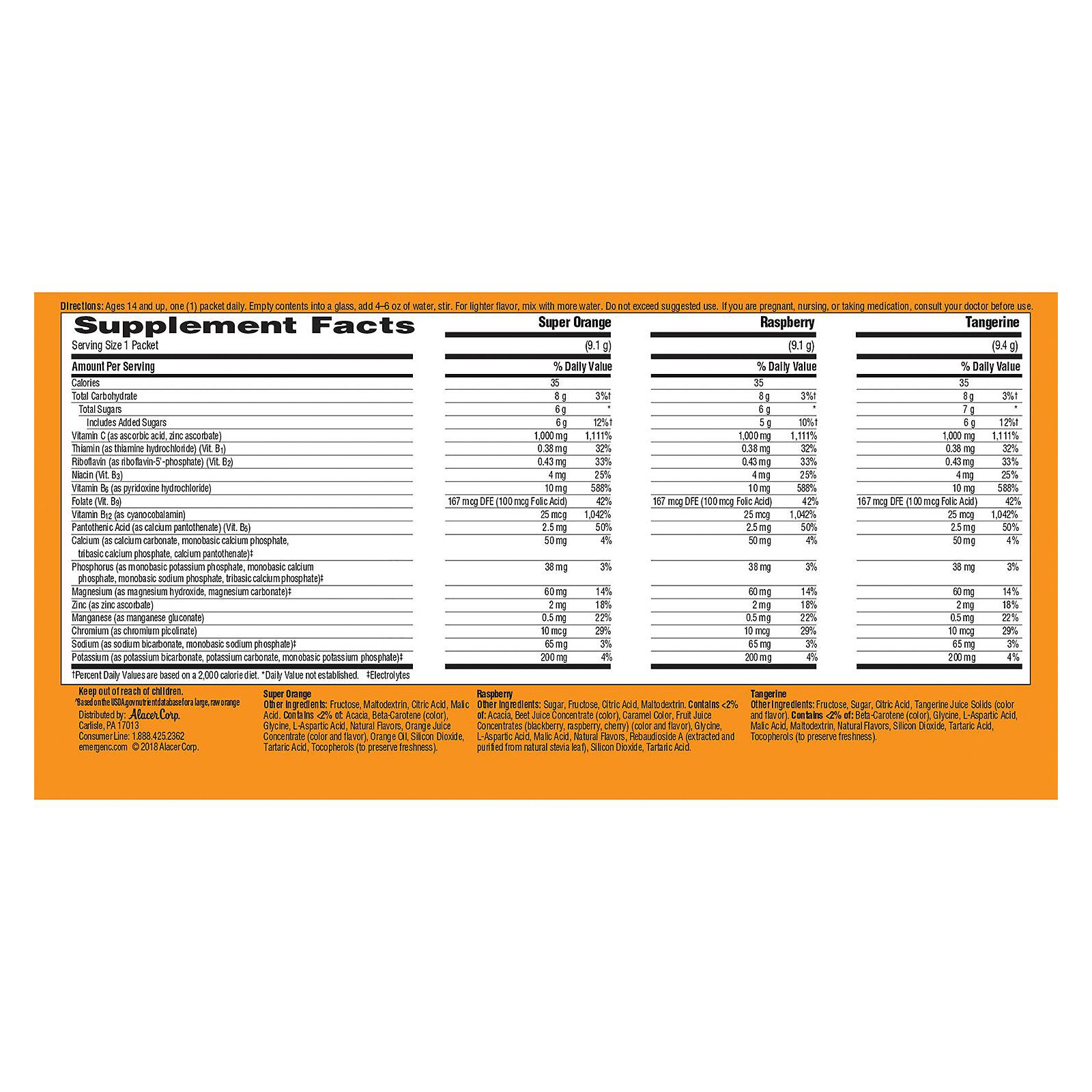 Includes 30 packets each of Super Orange, Raspberry and Tangerine flavored fizzy drink mixes For ages 14 and up; consume 1 packet up to 2 times daily Each packet contains 24 nutrients with 7 B vitamins to enhance energy naturally with no crash afterward* 1,000mg of vitamin C, zinc, quercetin and antioxidants help support your immune system* Drink post-workout to replace key electrolytes lost during perspiration* Empty contents into glass, add 4 to 6 oz. of water and stir