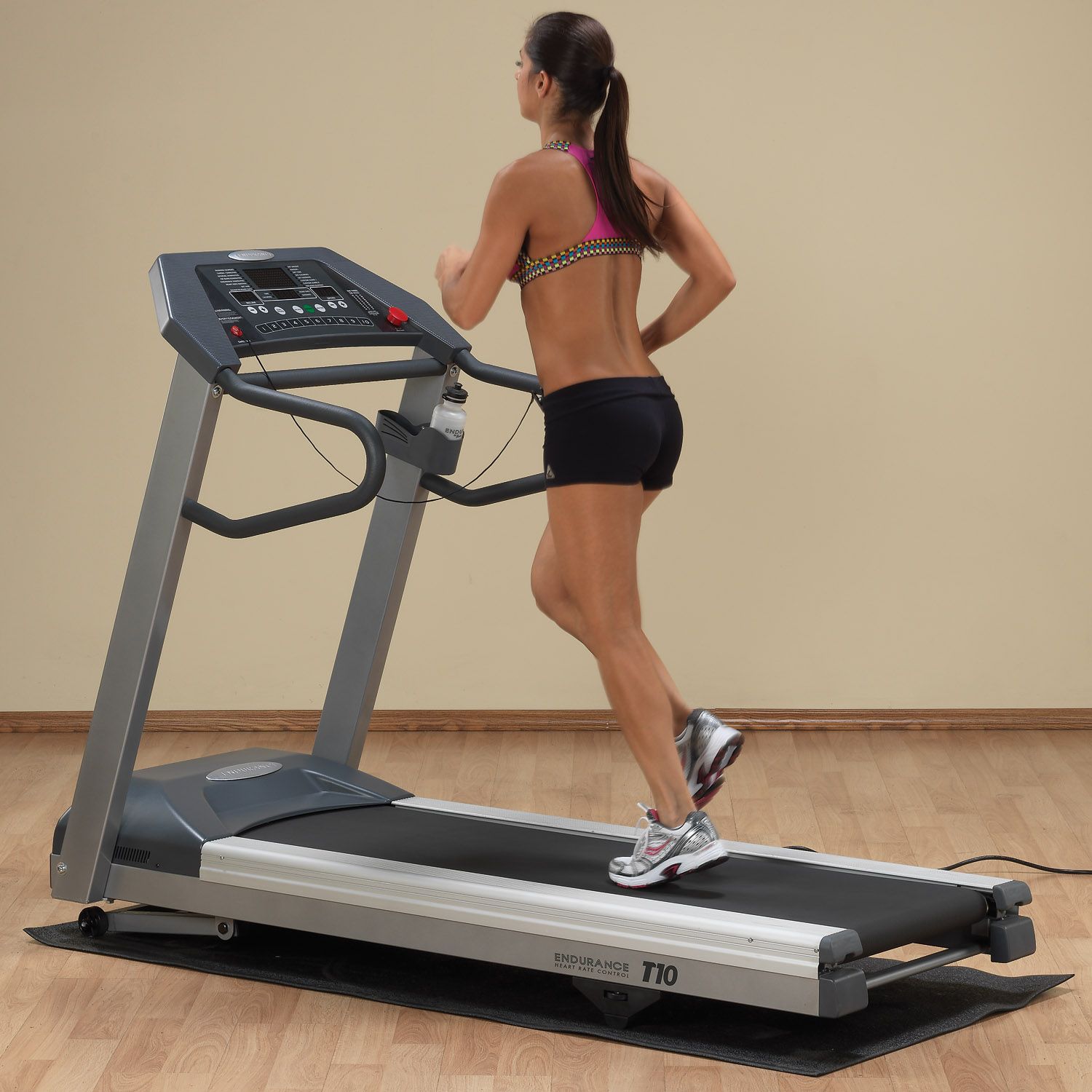 2" x 3" and 2" x 4" steel frame construction Poly-V belt drive system offers quiet operation 2.5"-diam. crowned steel rollers with a wide-radius crown Continuous-duty 3 HP motor, with 8.4 HP peak duty, features Pulse Width Modulation (PWM) technology and air cooling Integrated circuit breaker protects against power surges Suspended Running Surface (SRS) is supported by a multipoint shock-absorption system to keep knees, hips, ankles and feet comfortable 20" x 60" running surface 0.5-10mph speed adjustment 0-15% elevation adjustment Contact heart rate control with Telemetry strap 25 workout programs, including endurance, running, custom learner, heart rate control, interval, cardiovascular, walking, fat burn and manual Profile matrix LED shows heart rate, elevation, time, distance, calories and speed Operates only when safety key is engaged CD/MP3 player holder Water bottle holder Supports up to 350 lbs. Some assembly required Includes treadmill Warranty: lifetime parts, 1 year labor