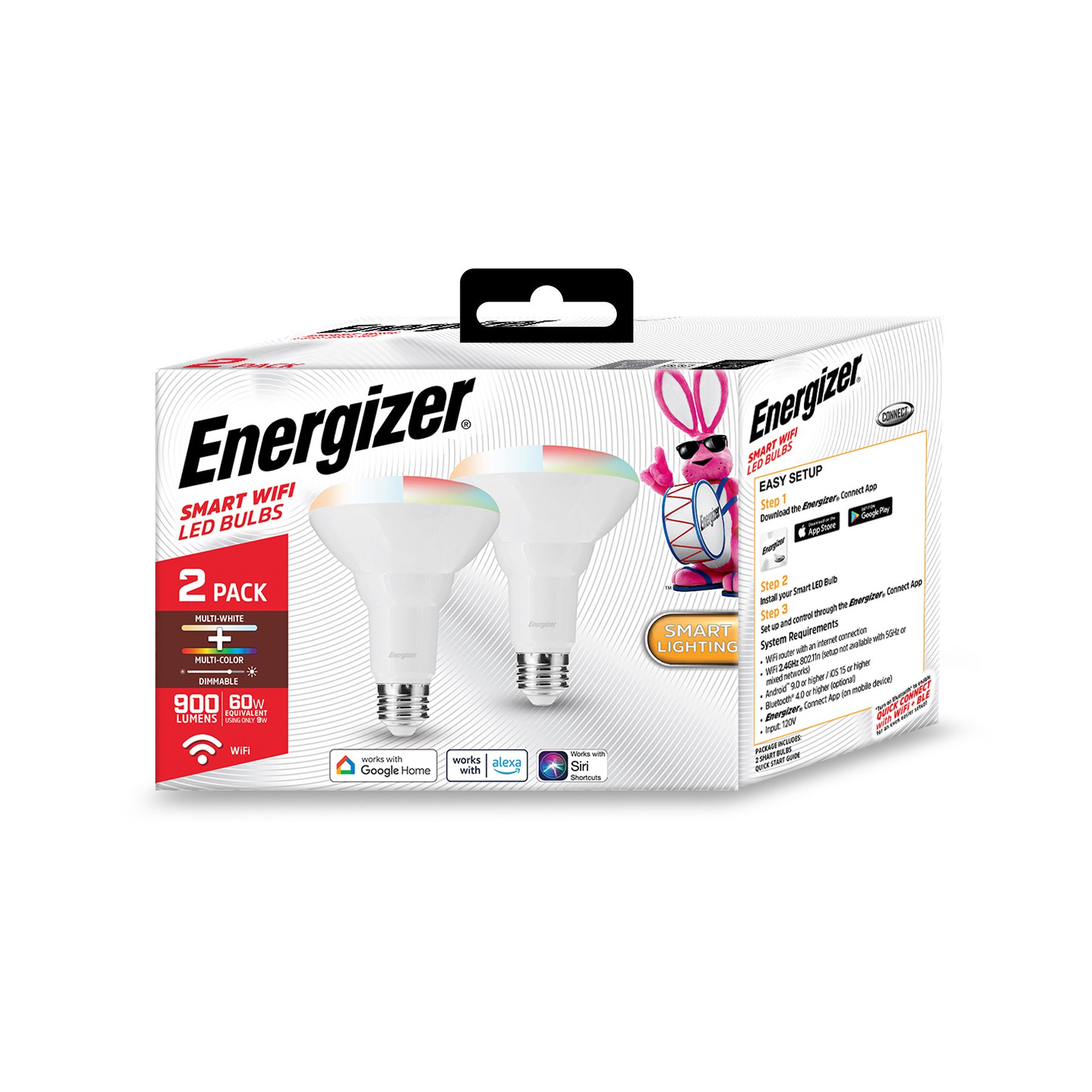 Energizer Connect Smart Wi-Fi BR30 White and Multi-Colored LED Flood Light Bulb, 2 pk.