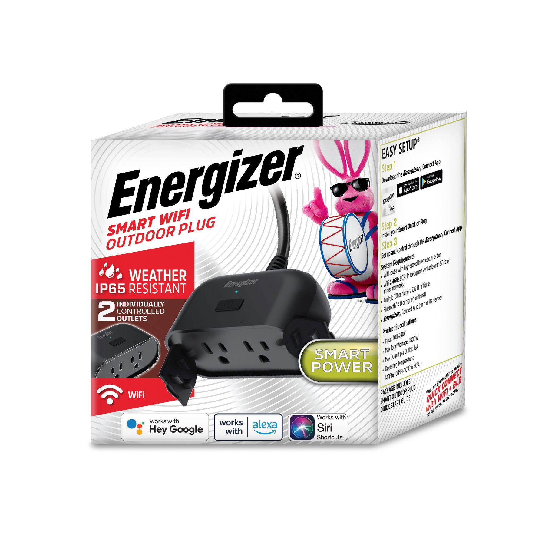 Energizer Connect Smart Wi-Fi Weather Resistant Indoor/Outdoor Plug (2nd Generation)