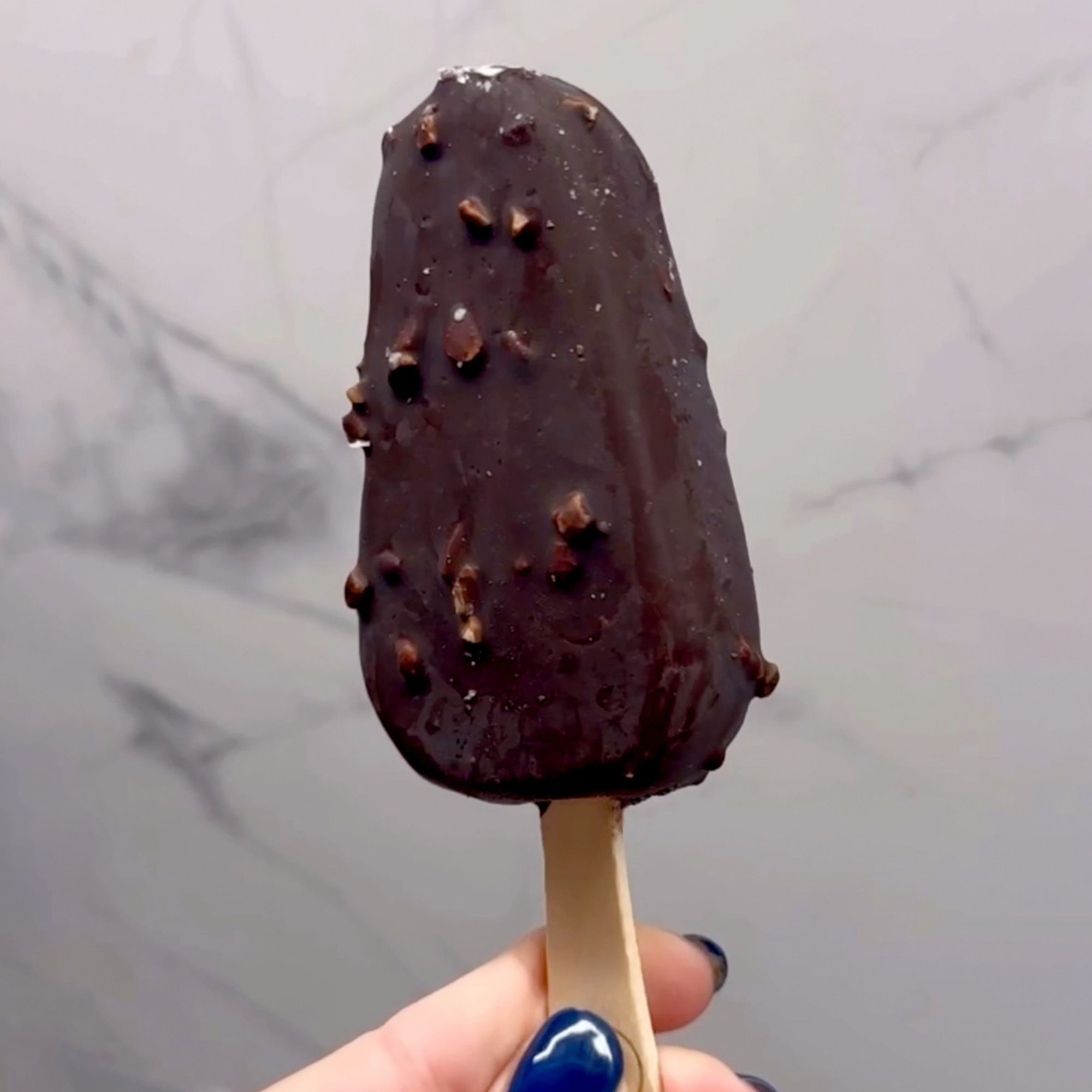 Vanilla ice cream with a dark chocolate shell and almond coating