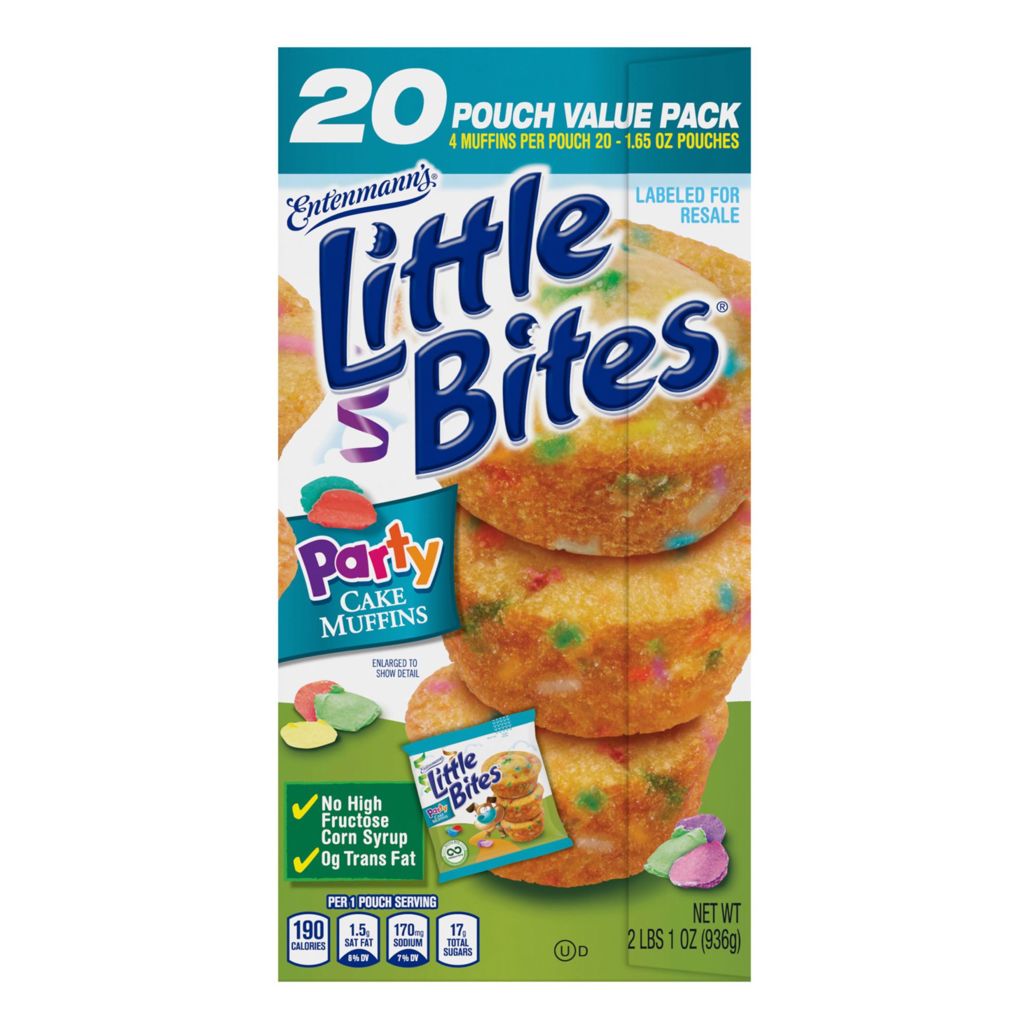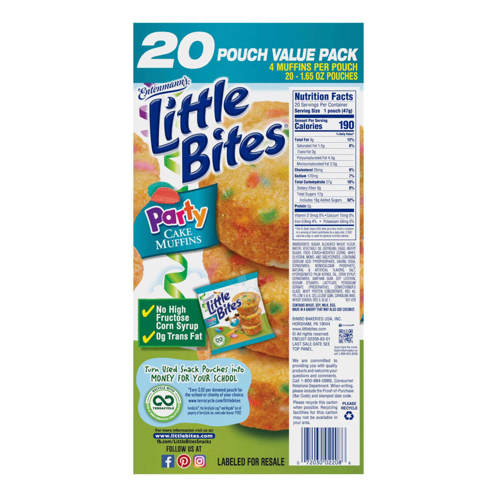 Entenmann's Little Bites Party Cakes are soft and moist cakes that will melt in your mouth. Perfect size to throw into a lunch or even as a standalone snack. Whatever the time, whatever the place Entenmann's party cakes are always a great choice. This pack includes 20 pouches of Entenmann's Little Bites party cakes.
