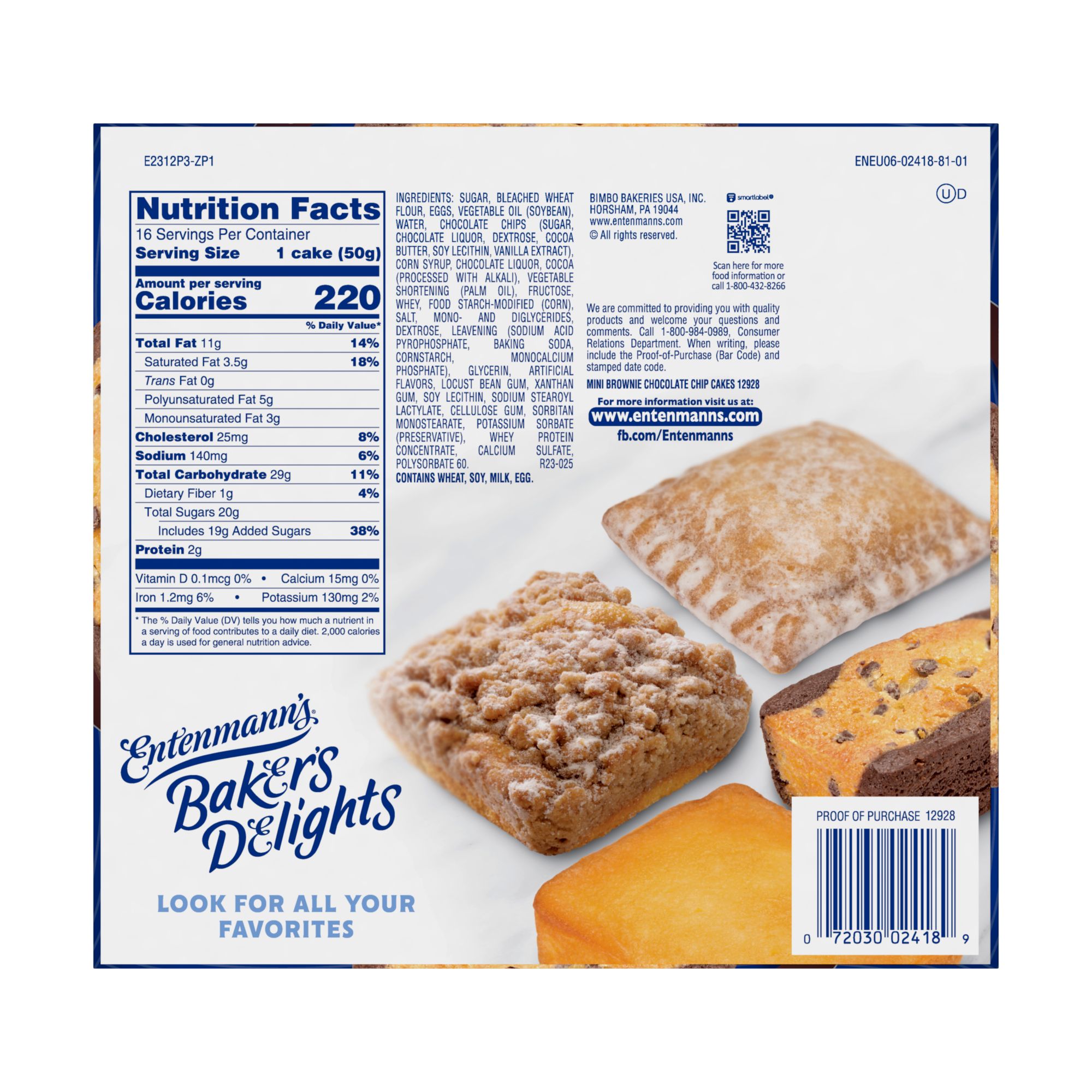 Combines a soft baked chocolate chip cookie and a fudgy brownie Mini in size, not in taste Perfectly sized, perfectly delicious Includes 16 individually wrapped Entenmanns Chocolate Chip cake