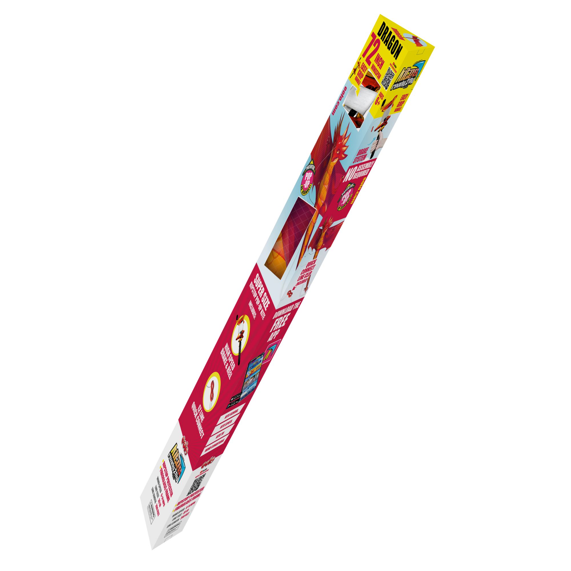 These stunt kites are only for BJ's and will not be sold to any other accounts This product is recommended for children and people of ages 6+ Master the Skies With Eolo Kites: with Eolo's revolutionary and patented pop-up system, kites assemble in merely seconds; they’re easy and ready to fly; this particular kite has a majestic 72" wingspan and is great for kids with some kite flying experience High Quality and Performance Kite: this kite features a sturdy fiberglass frame and tough ripstop nylon construction for durability, easy line clip connection, ergonomic grip, a premium 200' flying line, and an exclusive custom handle with high-speed reel and brake Super Quick and Easy Assembly: if you're tired of regular kite assembly, you won't be with our pop-up system; just slide to open your new sky companion Kite School App: check out the Kite School App to get started; learn how to fly, stunt kite tricks, and discover how to maneuver your kite in different wind conditions Comes with everything you need to start flying Includes Dragon Eolo Kites Ready 2 Fly supersized 72" pop-up kite