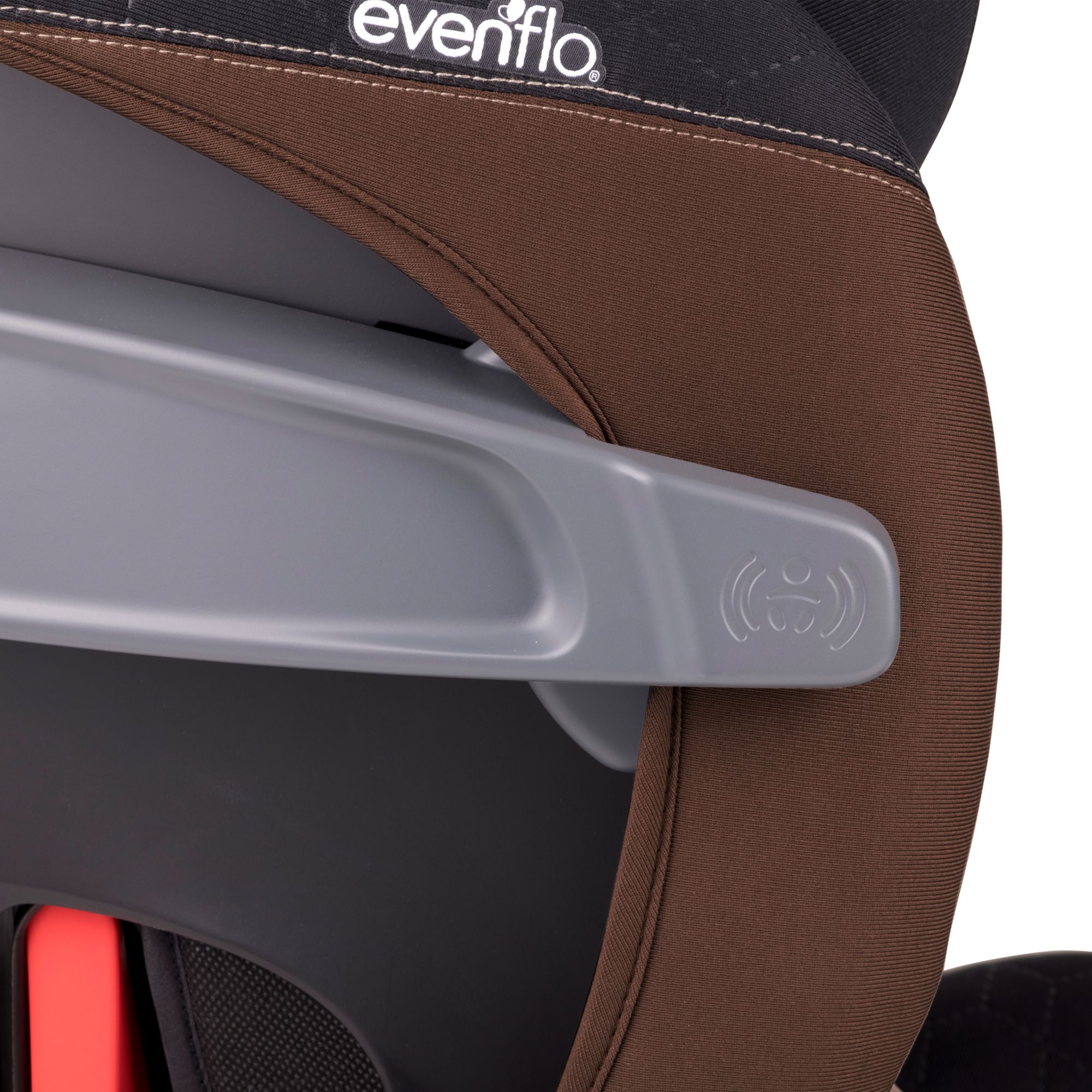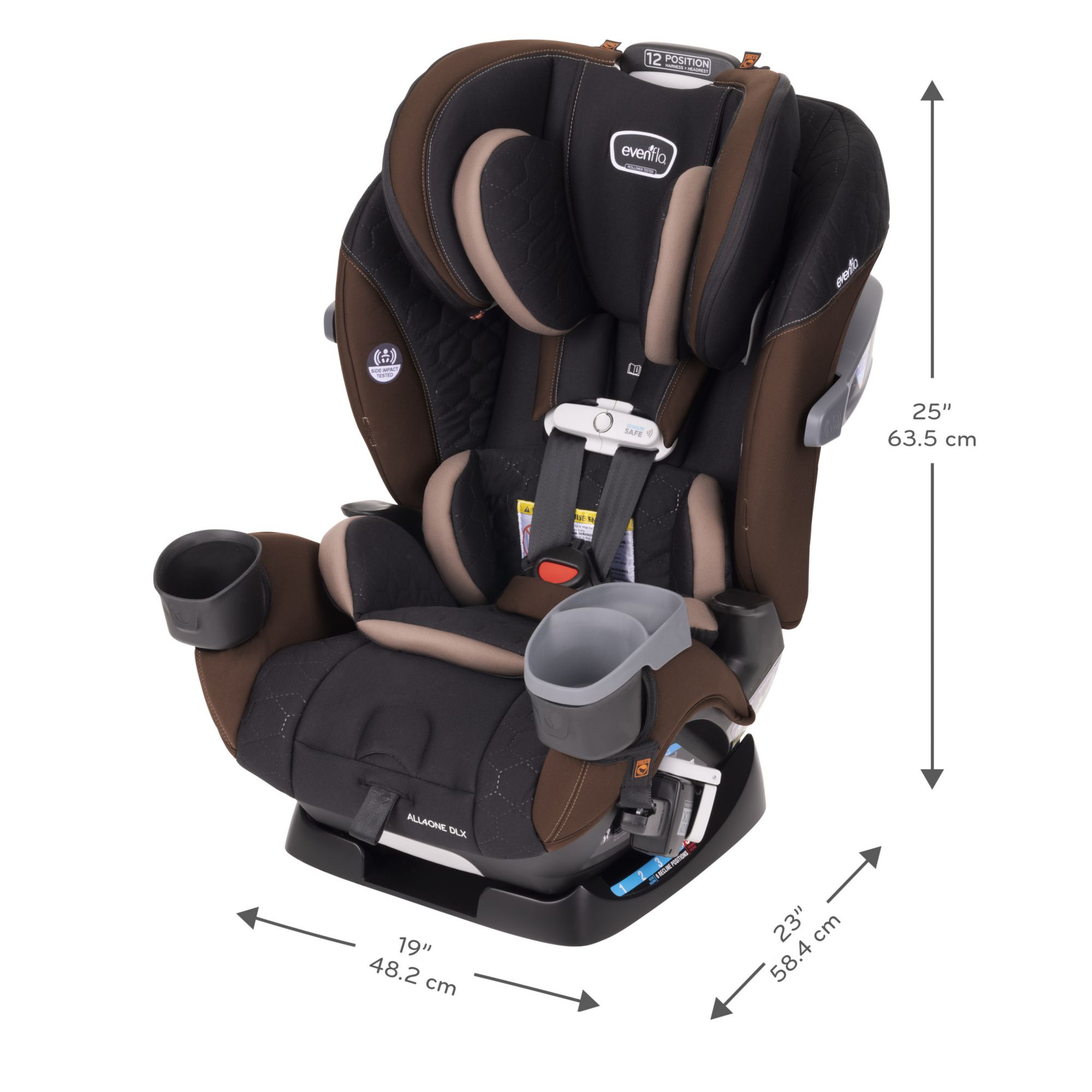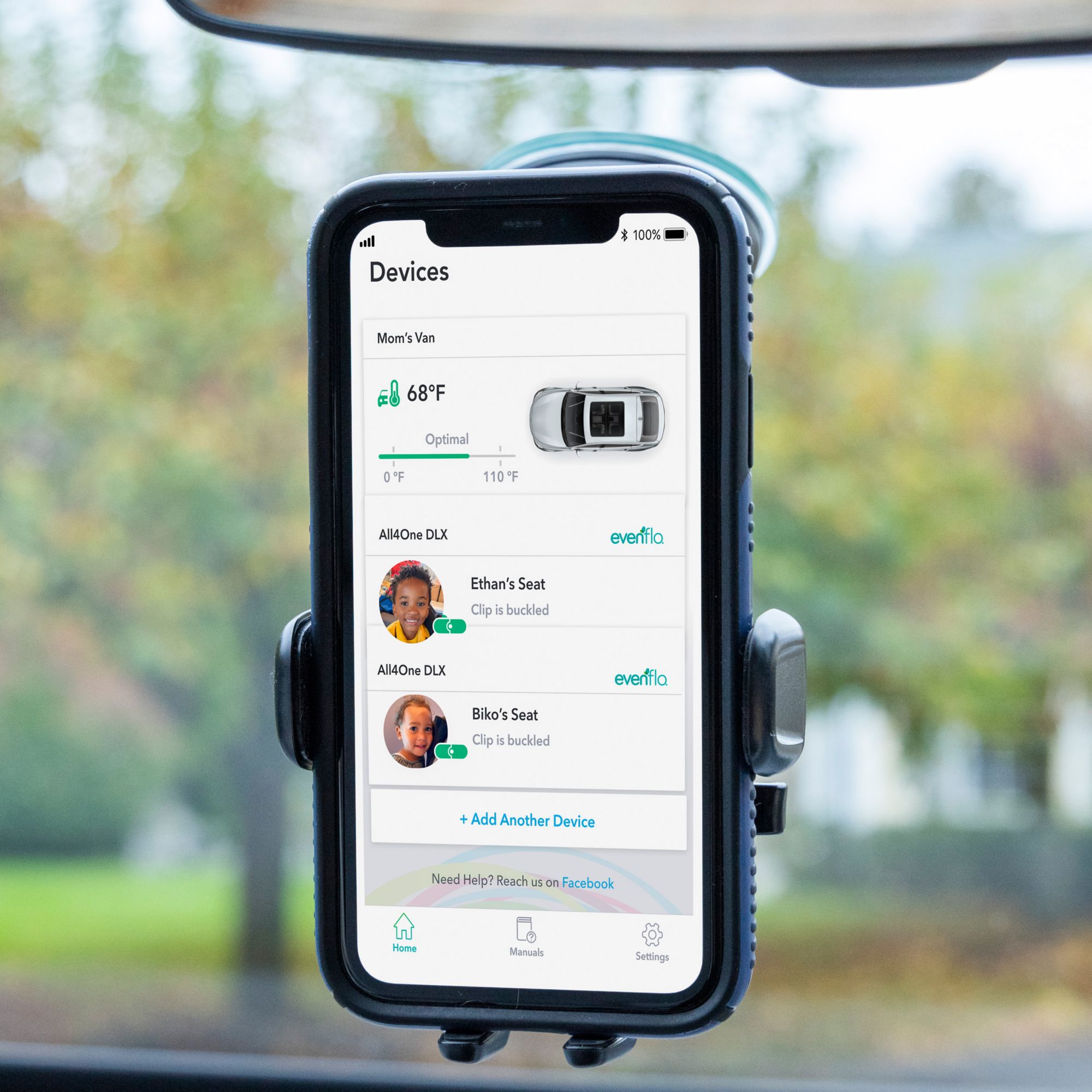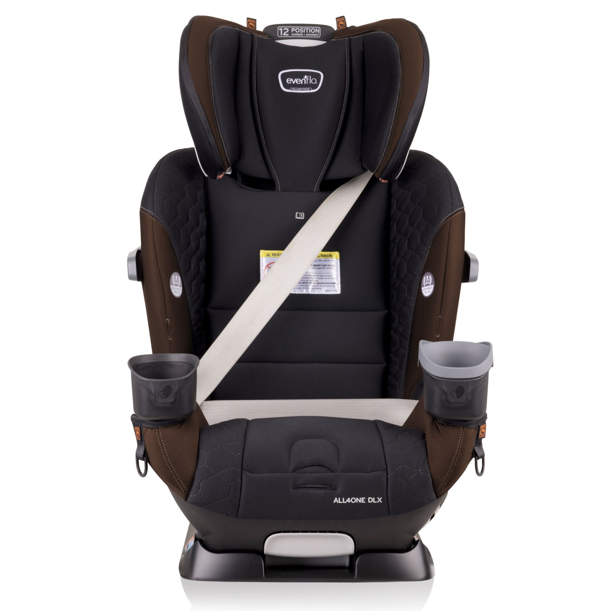 Take a closer look at the car seat designed for your digitally connected life: the Evenflo All4One DLX 4-in-1 Car Seat with SensorSafe. While your eyes are focused on the road, integrated SensorSafe technology instantly alerts you to four potentially unsafe conditions from your child’s car seat via your phone: unexpected chest clip unbuckling, unsafe temperature, child unattended in the car, and child seated too long. With SensorSafe to keep you connected to your child from the back seat, the All4One DLX is clearly the savvy choice. It’s also a versatile choice because you can invest once in a car seat that will grow with your child for 10 years! During that 10 years of use, this car seat will adapt to every stage of development from infancy to big kid as your child grows from 4 to 120 lbs. Over the years, four modes allow you to adjust as appropriate from the rear-facing harness to the forward-facing harness and from the high-back booster to the no-back booster. Count on our EasyClick LATCH system to provide security with confidence. EasyClick ratchets to achieve a rock-solid installation that’s 3x* tighter than the competition. More to feel good about: The All4One DLX is the only 4-in-1 car seat that’s GREENGUARD Gold Certified for low chemical emissions to create a healthier environment for your child. Because life is messy, it also includes a convenient Quick Clean Cover that’s easy to remove and easy to wash. For added protection, the All4One DLX features side-impact technology which helps absorb energy in the event of a collision. And the perks don’t end there! The headrest offers 12 positions, the handy no-rethread harness adjusts with just one hand without having to uninstall the car seat, shoulder belt guides properly position the vehicle belt over your child’s shoulder to ensure an accurate fit in booster mode, and head and body pillows are removable for easy cleaning. On top of that, dual-integrated cup holders keep drinks within your child’s reach and the removable snack tray is dishwasher-safe. Connect with everything you need in a car seat for 10 years. The All4One DLX.