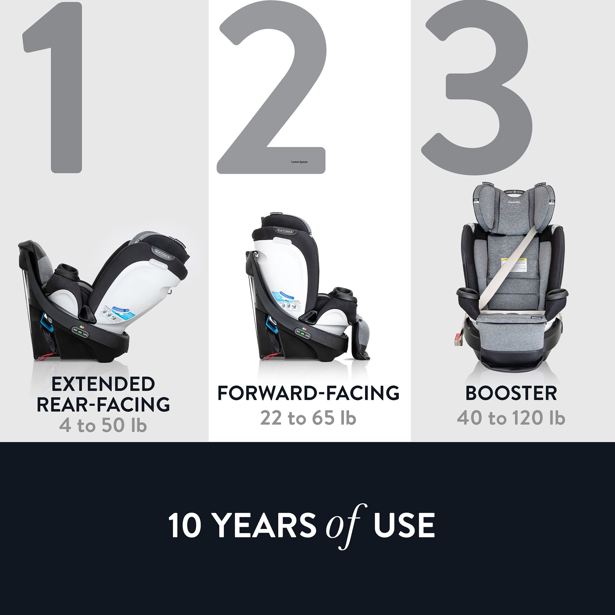 Grow up with it: grows with your child providing 3 modes of use that adapt to every stage - rear-facing (4 to 50 lb), forward-facing (22 to 65 lb) and booster (40 to 120 lb)