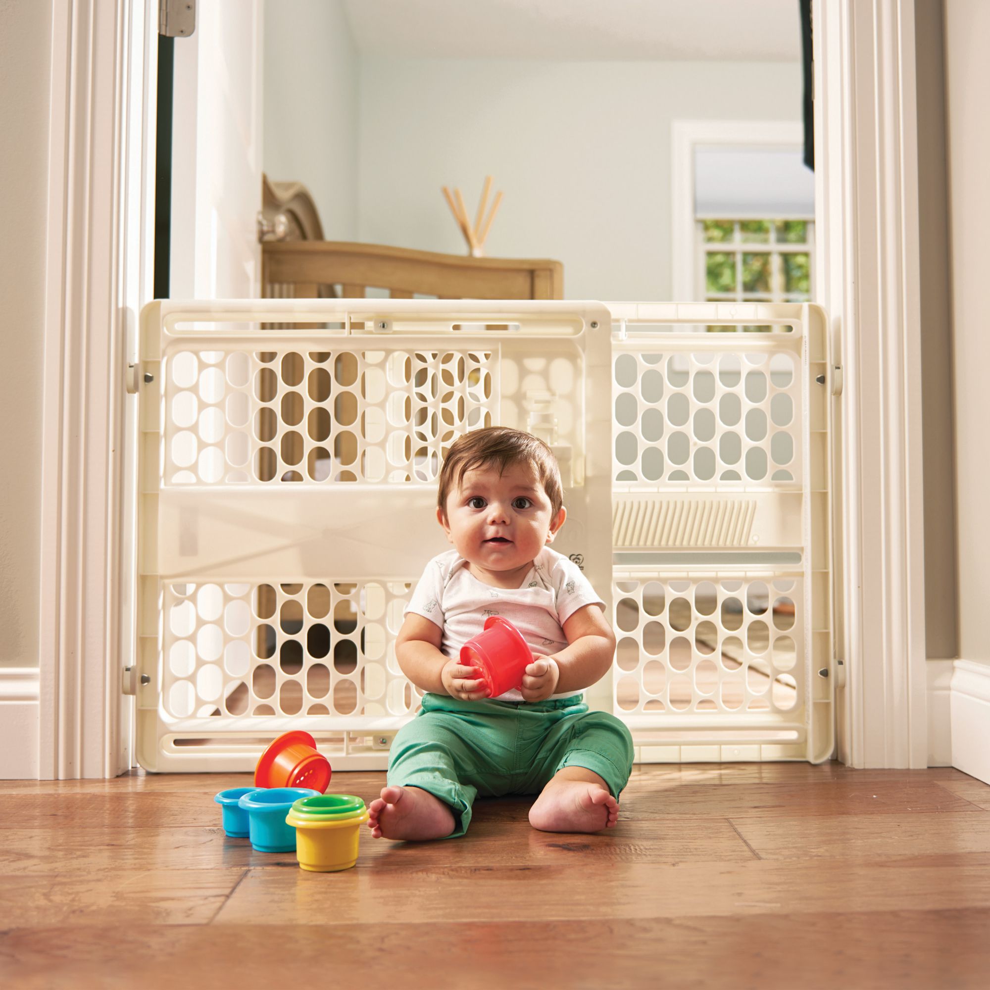 - No tools required: Simple press on the handle to lock in place. This gate installs and un-installs in seconds, making the move to another location a breeze