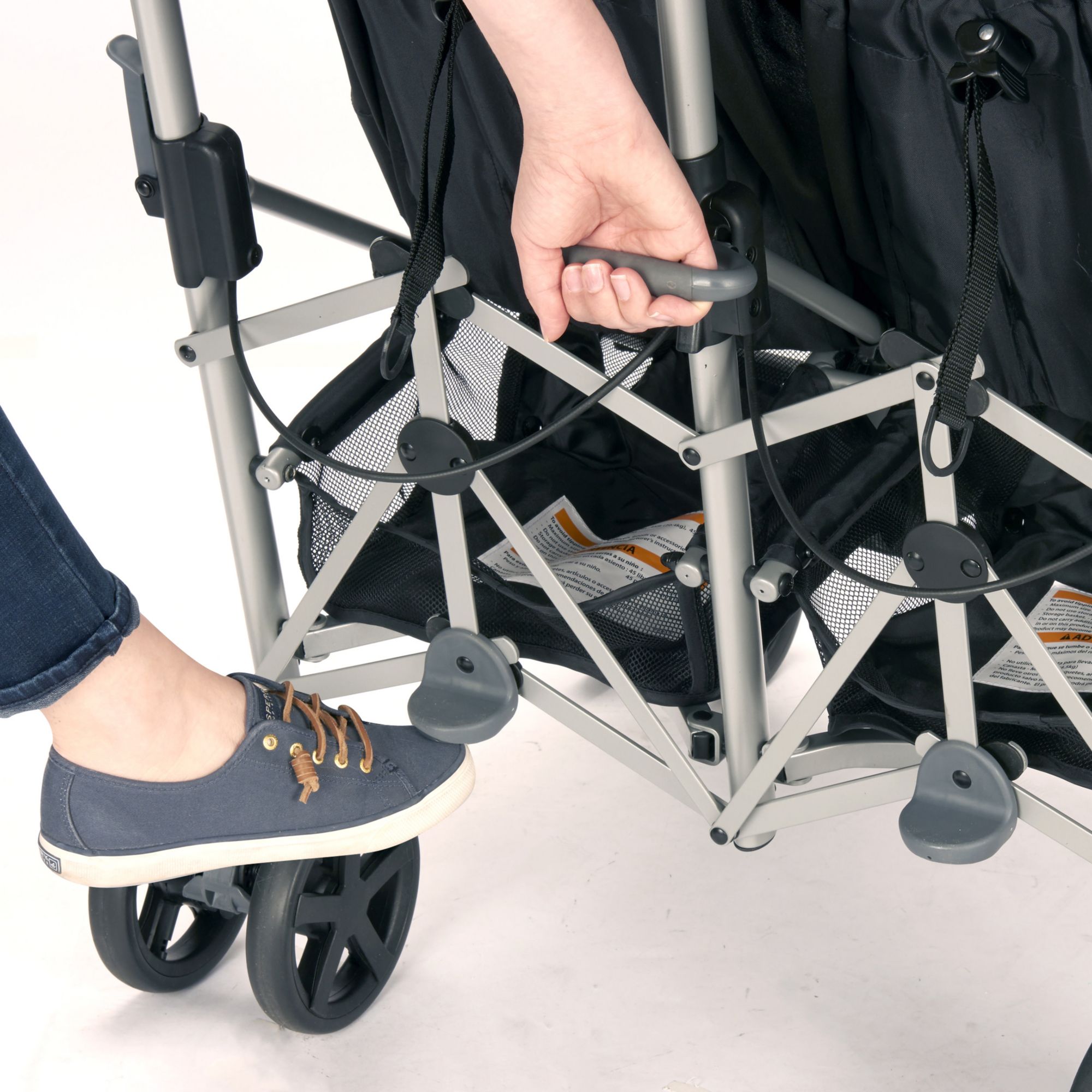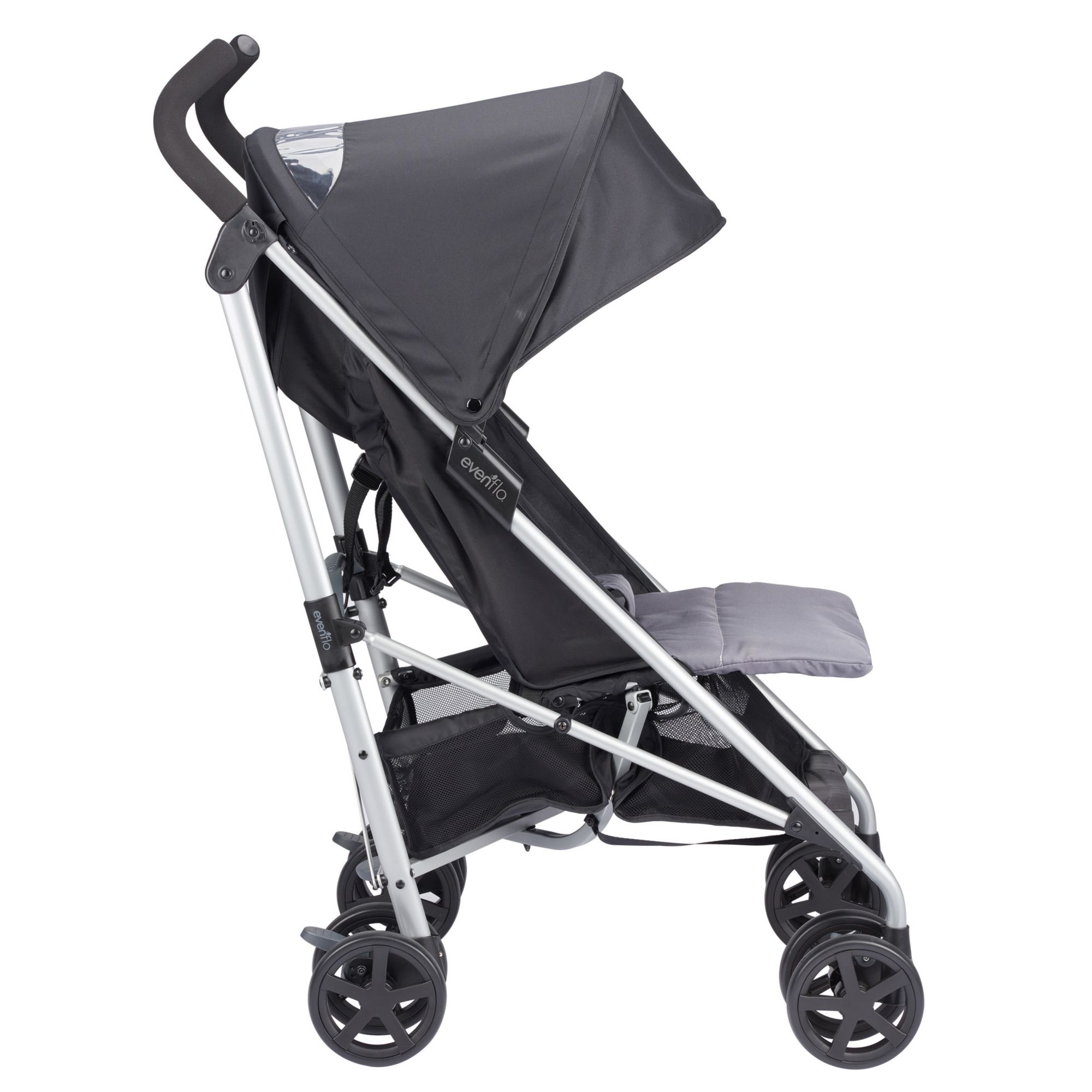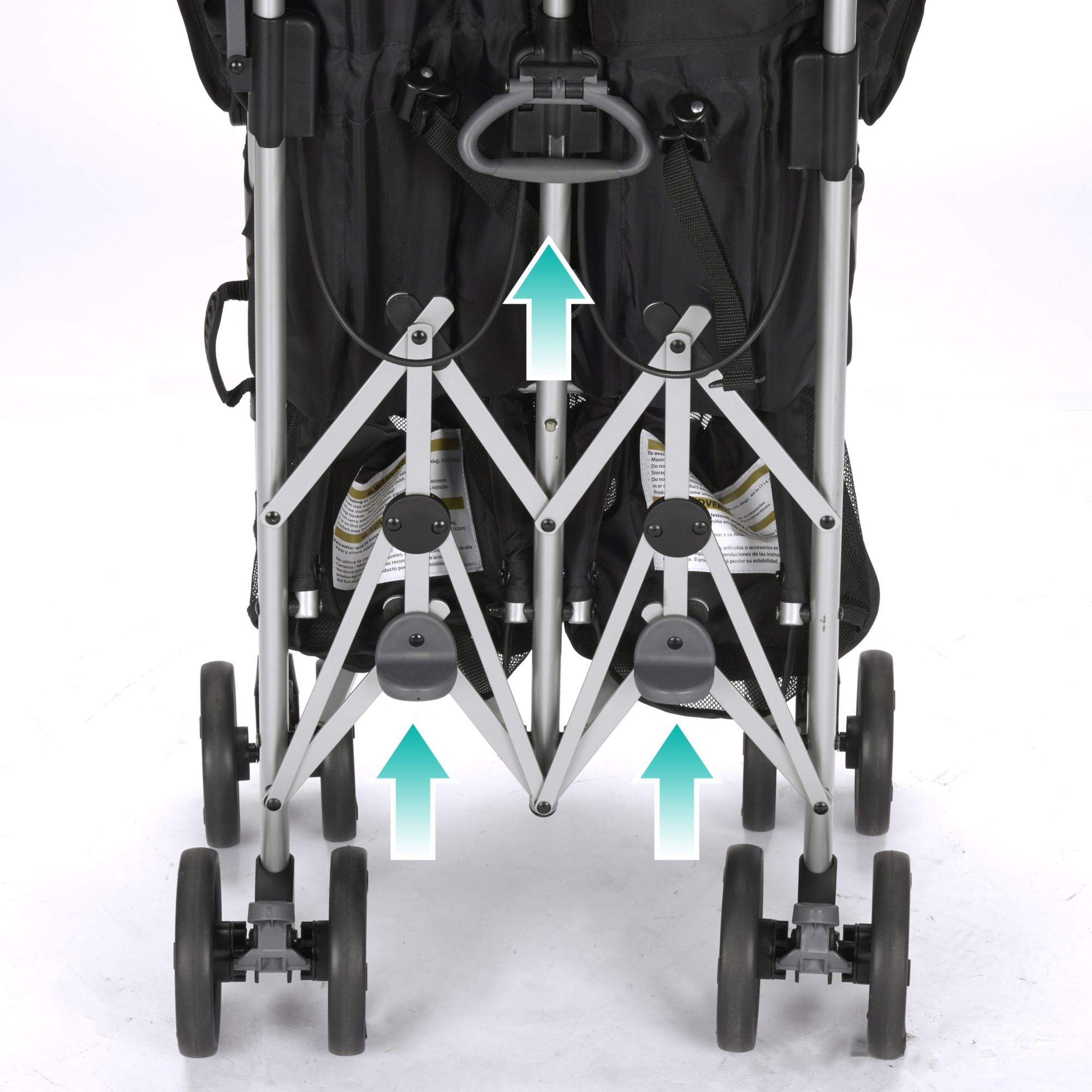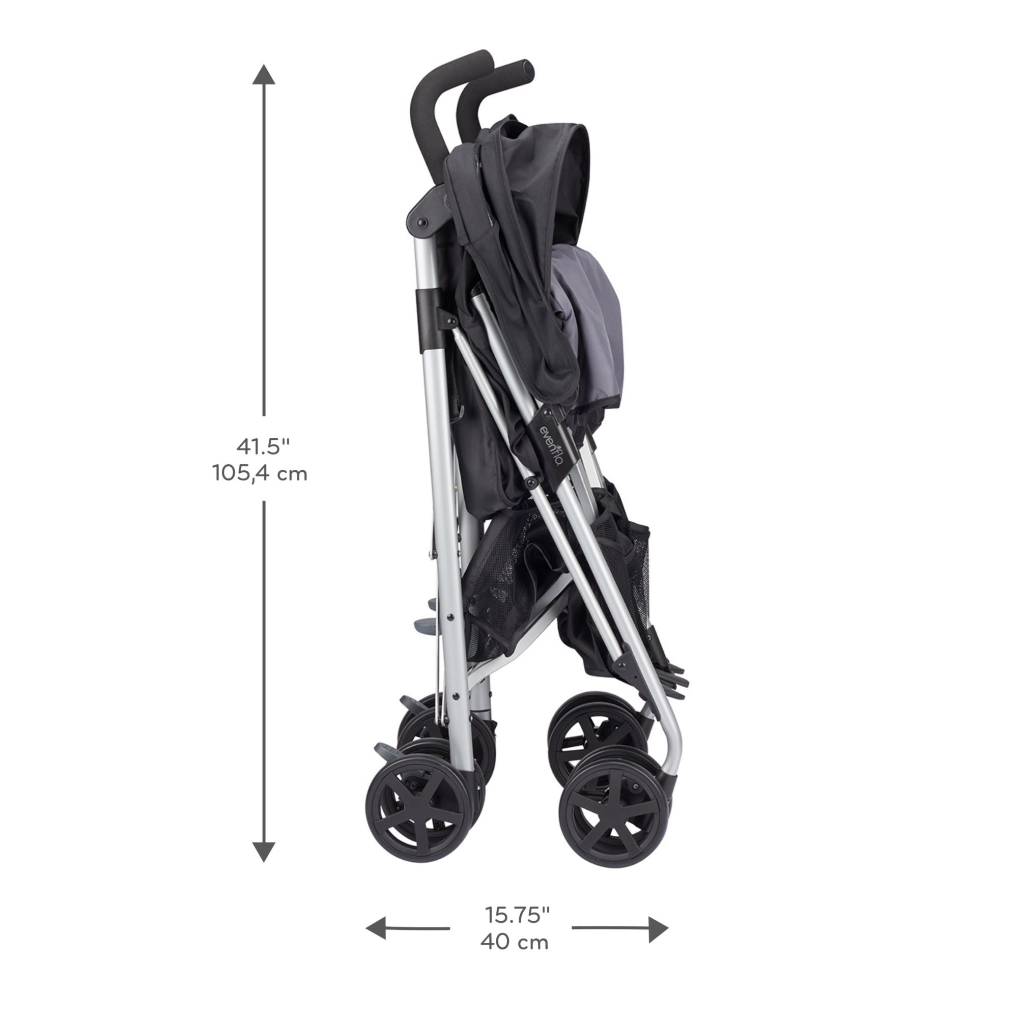 Compact Fold: Release foot pedal, grab handle and pull up to close with one hand - self-standing so no need for parent to bend over Smooth Ride: Front wheel suspension for easy maneuverability Protection: Oversized canopy with extended visor provides protection from the elements Parent Cup Holder: Removable for easy cleaning Generous Storage Basket: Provides ample storage on-the-go with rear access Comfort: Cushioned, multi-position reclining stroller seat provides a comfortable ride for your little one Front Swivel Wheel: Lockable to achieve superior maneuverability Adjustable Footrest: 2-positions for optimal comfort Comfort and Convenience: Angled handle bars allow a just-right grip and convenient carry handle makes transporting the Minno a breeze Includes The Evenflo Minno Twin double stroller inspires you to take both of your babies on adventures, whether you’re running errands or going for a stroll in the park. Its compact fold and narrow design make it convenient to bring everywhere and at only 27” wide, it fits through most doorways with ease