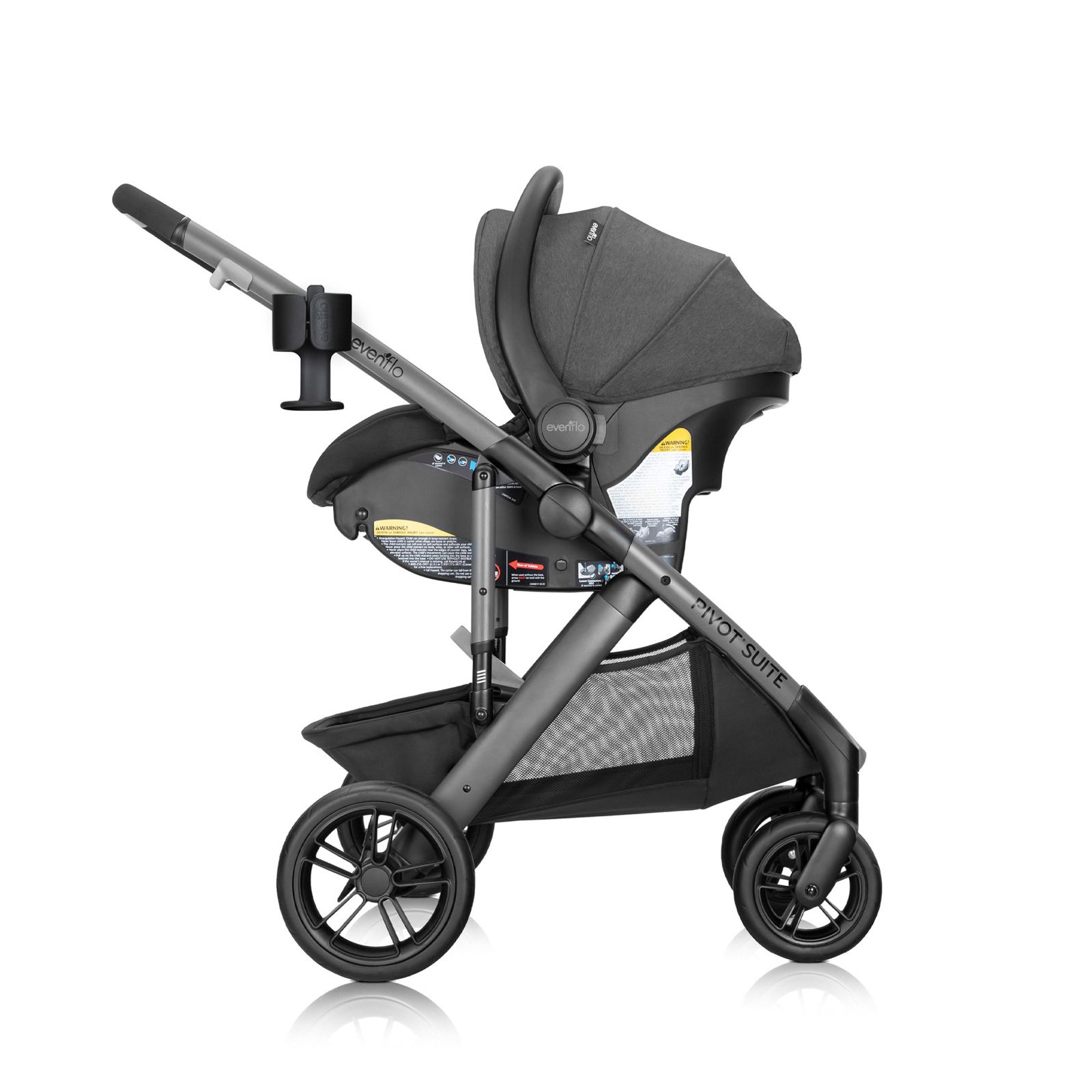 Transport your child in style with the Evenflo Pivot Suite Modular Travel System. For 100 years and counting, Evenflo continues to push the boundaries in baby and children’s gear design and innovation. The needs of new parents are met by focusing on what they really care about: leading-edge safety, smart design and technology, and convenient features that help them enjoy the journey of parenthood.