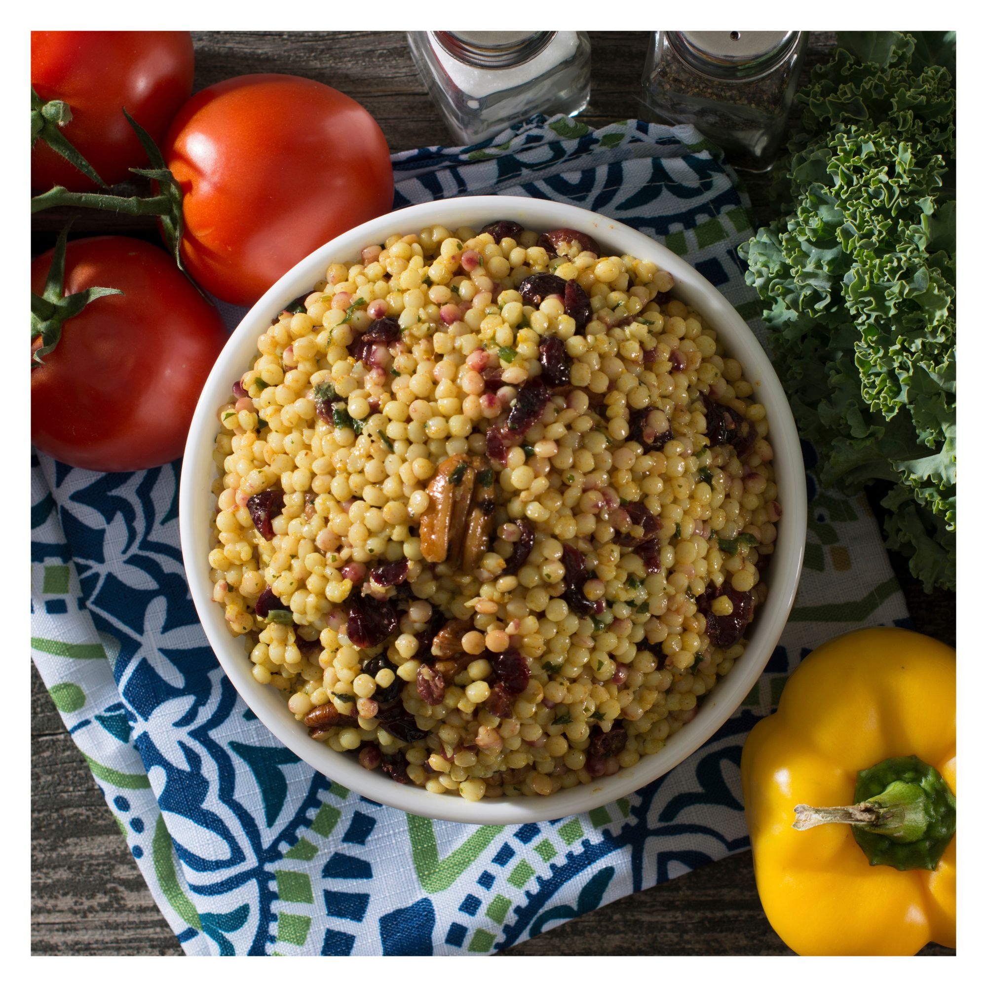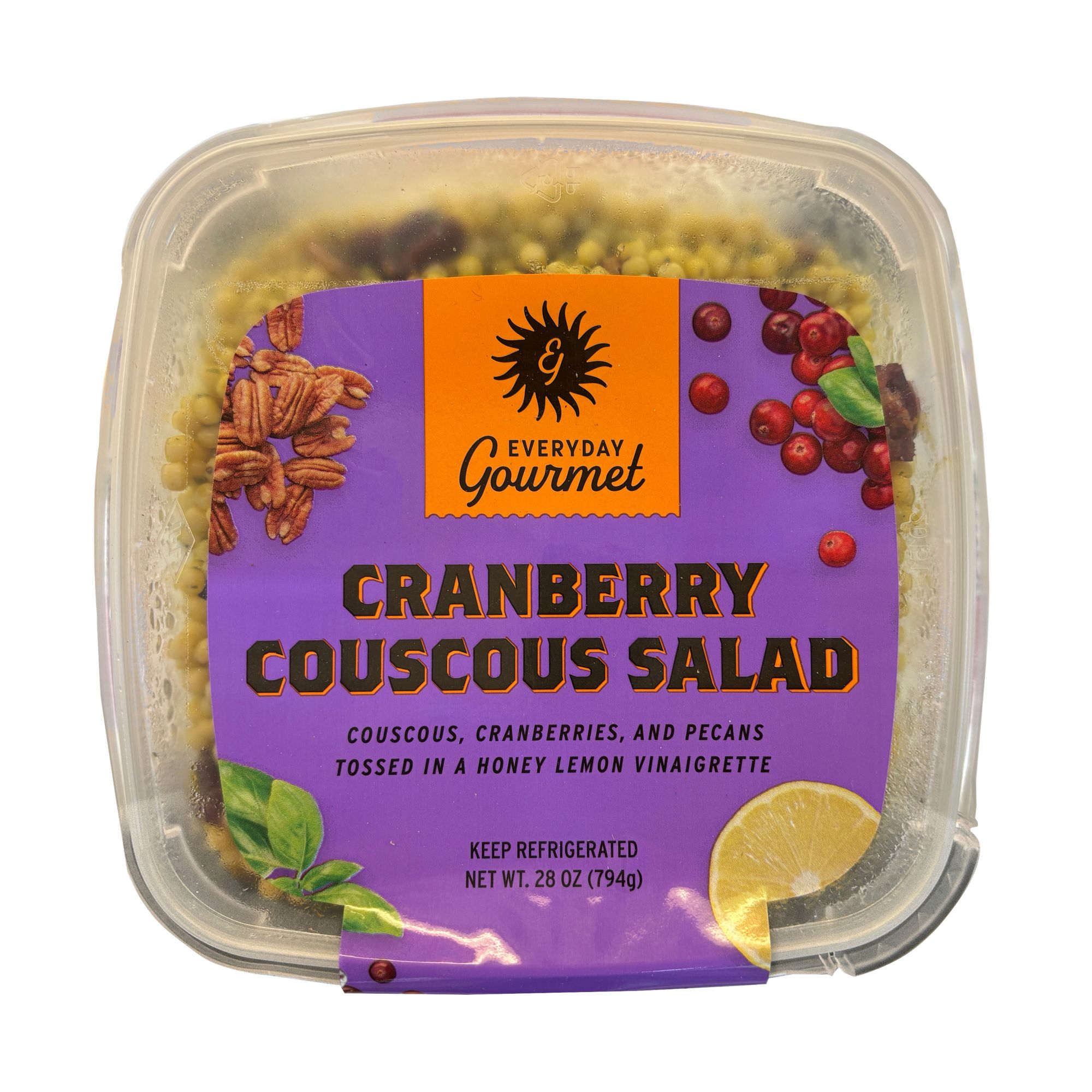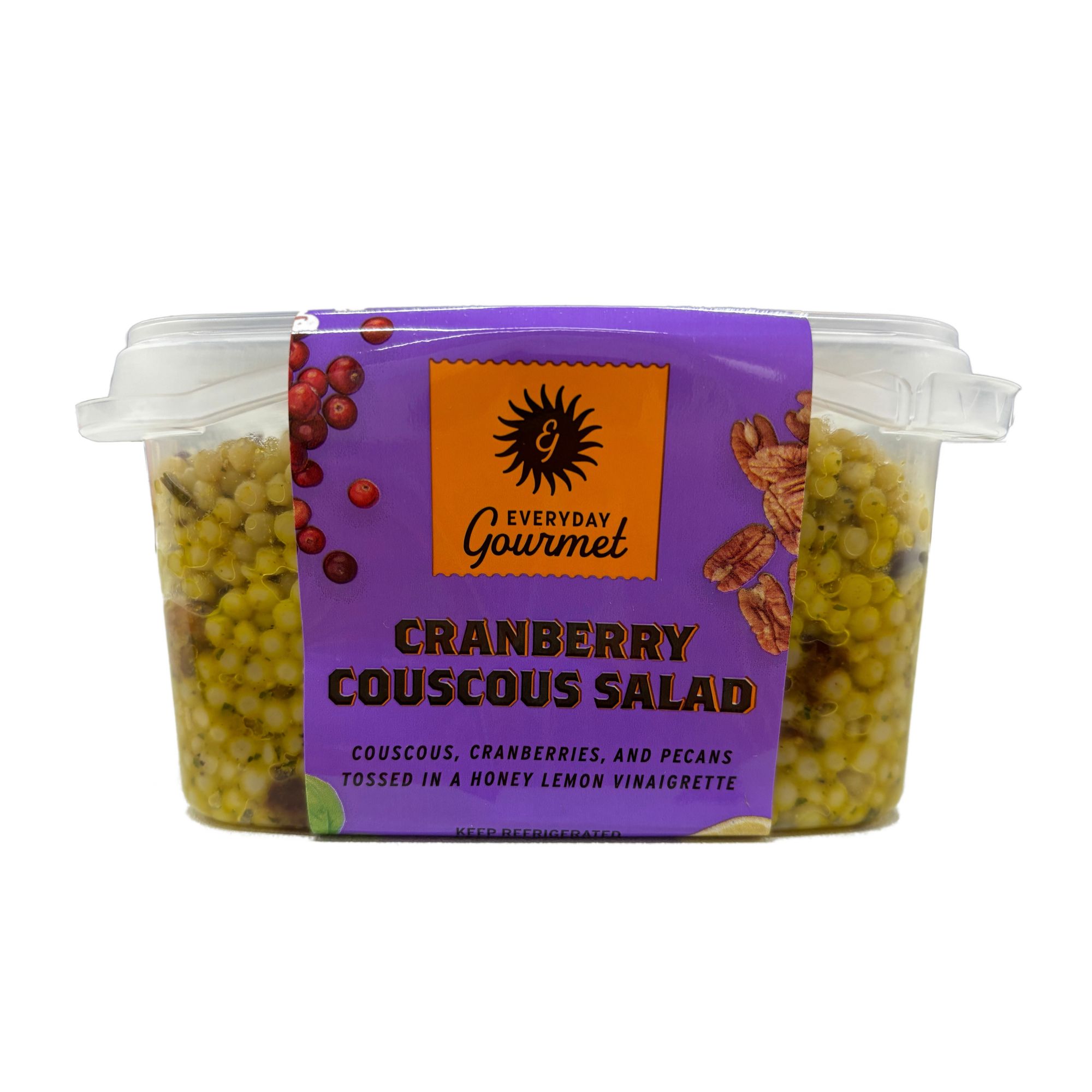 Everyday Gourmet Cranberry Couscous Salad is made with couscous, cranberries, and pecans, tossed in a Honey Lemon vinaigrette. This Everyday Gourmet Salad is a delicious blend of high quality ingredients that tastes as good as it looks. Israeli couscous, dried cranberries and pecan pieces are tossed with a light citrus dressing to form this bright and unique salad that will enhance any meal or get together.