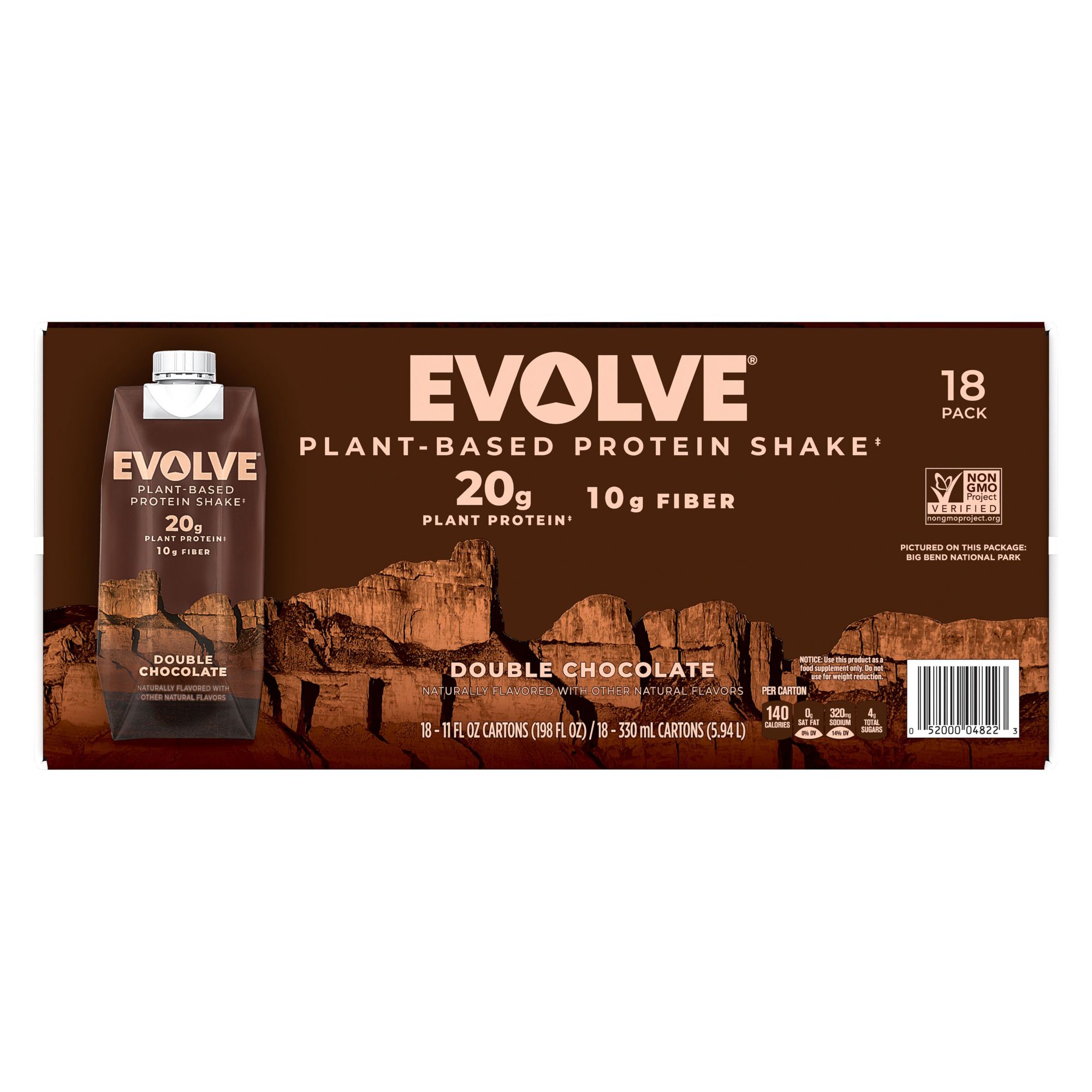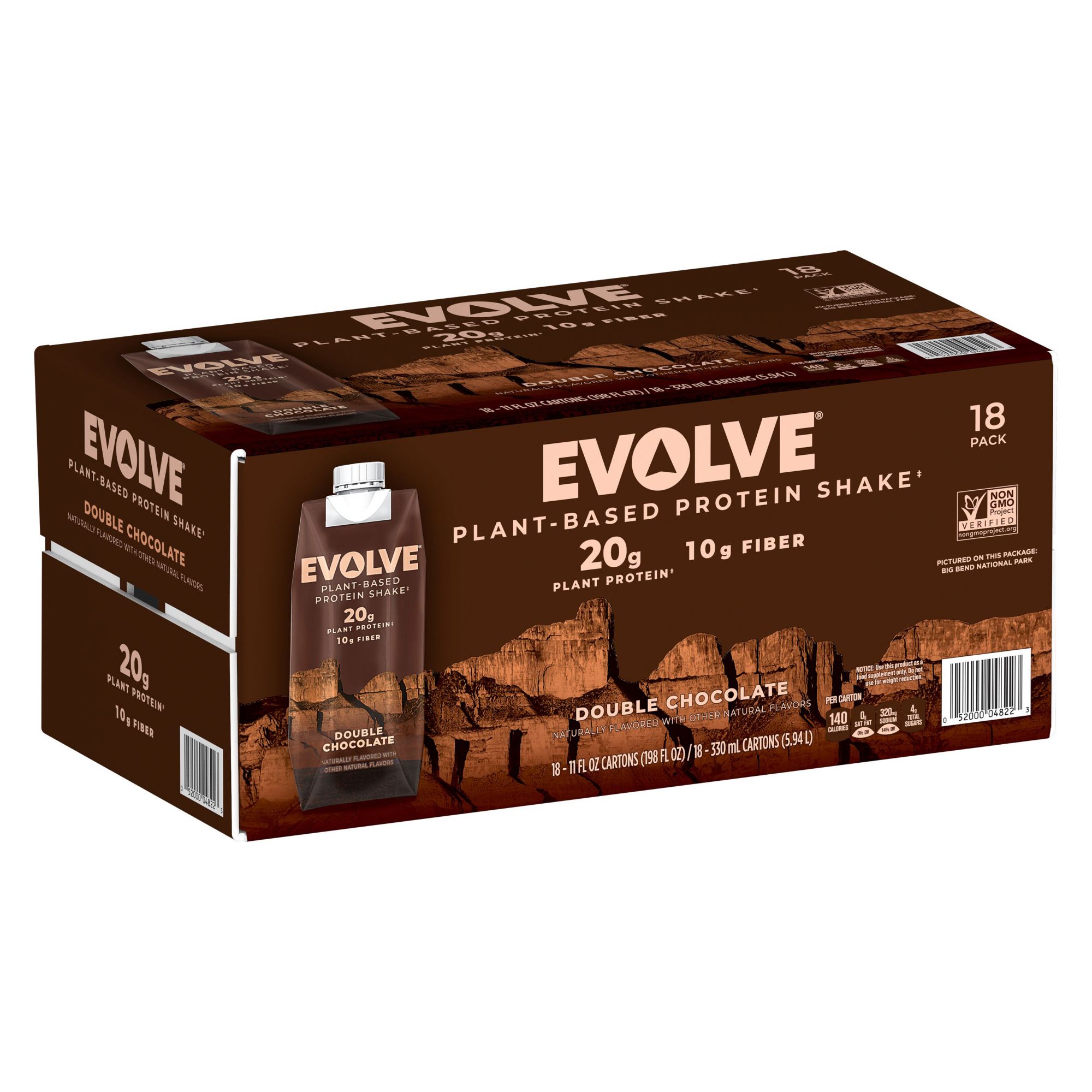 Evolve Plant-Based Protein Shake Double Chocolate Flavor, 20g Protein, 18 ct./11 oz.