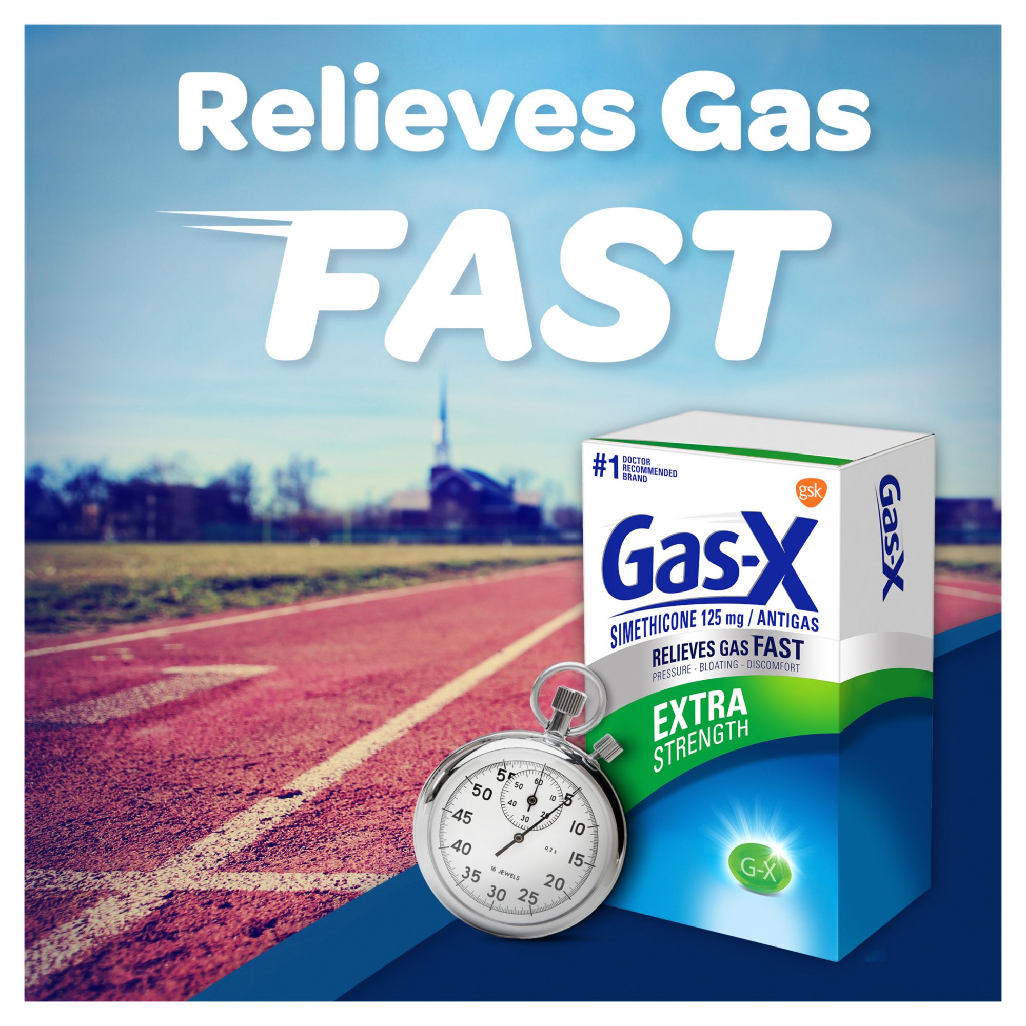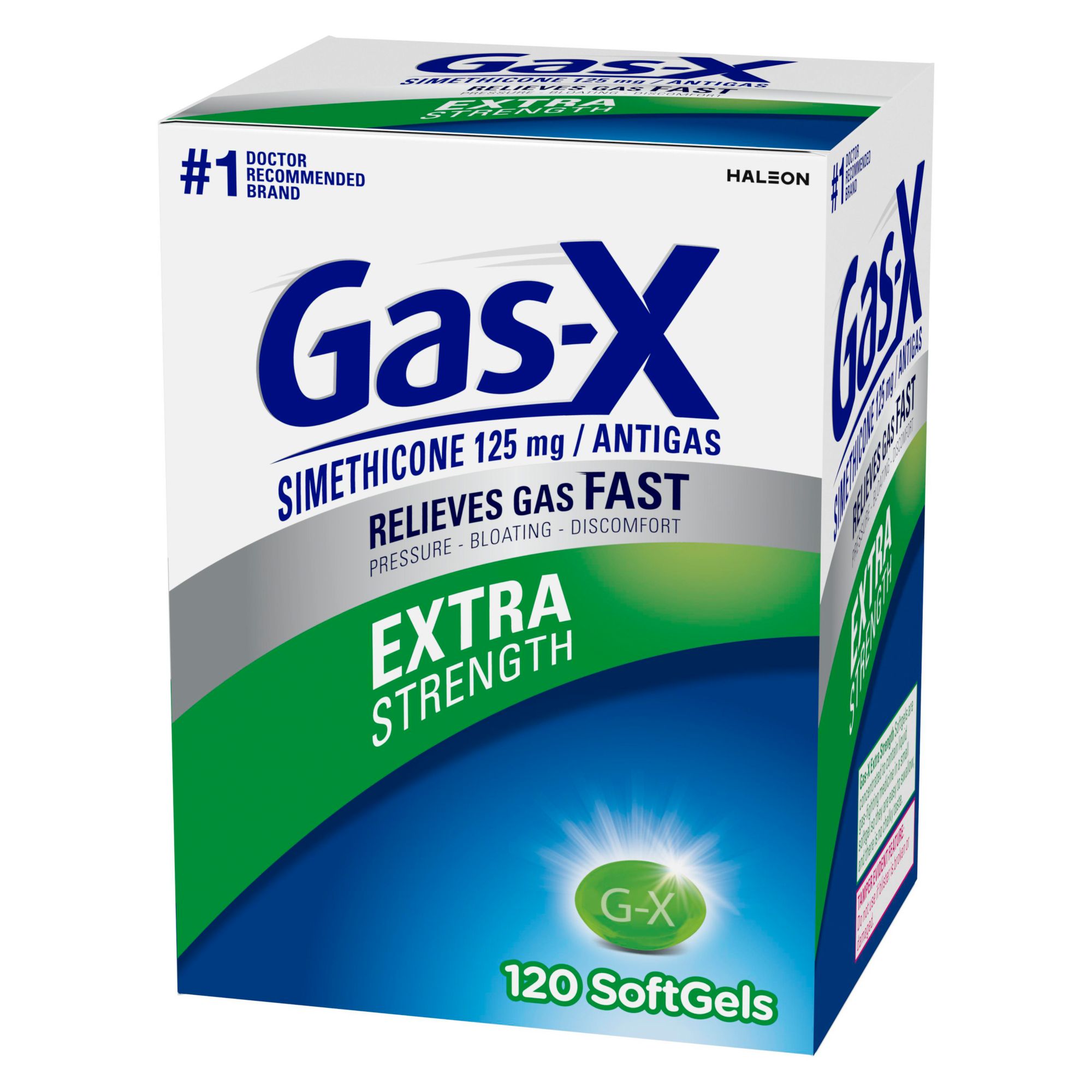 From the #1 Anti-Gas Relief Brand comes Gas-X Extra Strength Gas Relief Softgels with Simethicone 125 mg deliver fast relief of gas pressure, bloating and discomfort. These simethicone 125 mg softgels go to work in minutes, rescuing you from embarrassing situations and helping you get back to feeling like yourself. Gas-X uses 125 mg simethicone to break up gas bubbles in your stomach and intestines. Once this trapped gas is broken down, your body can deal with the gas properly. These Gas-X Antigas Softgels are portable and easy to take. Adults and children 12 years of age and older may take one or two antigas pills as needed, not to exceed four gas relief pills in 24 hours unless directed by a doctor. Gas-X is the name you turn to when you need serious gas relief. Trust Gas-X, the #1 doctor recommended OTC anti-gas product.* *ProVoice Survey fielded from March 1, 2020 to February 28, 2021, and recording recommendations for OTC Anti-Gas products.