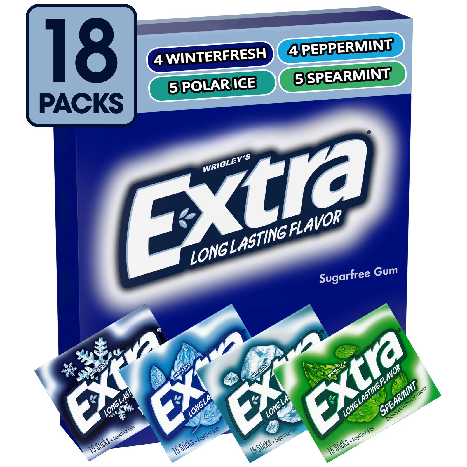 - Variety box contains eighteen (18) 15-piece packs of EXTRA Gum