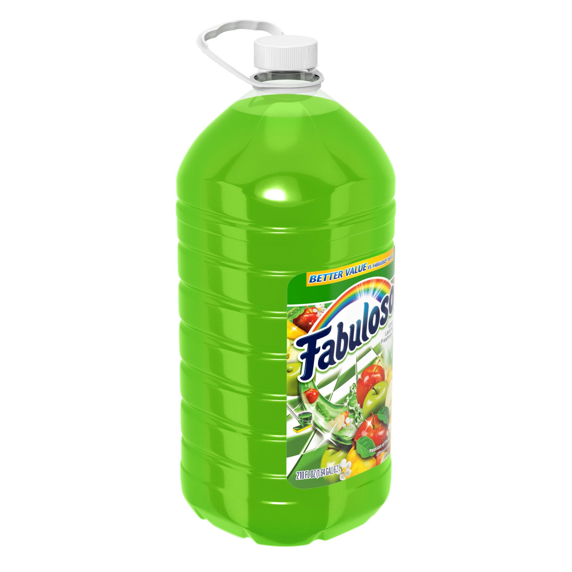 Fabuloso Multi-Purpose Cleaner leaves a fresh scent that lasts. The Passion of Fruits fragrance leaves an irresistible scent your family and guests will notice. It comes in a convenient, easy-pour bottle. This Fabuloso cleaner is easy to use, so there is no need to rinse, and it leaves no visible residue. Discover the long-lasting freshness of Fabuloso multi-purpose cleaner that leaves your home shiny, clean, fresh, and fragrant.