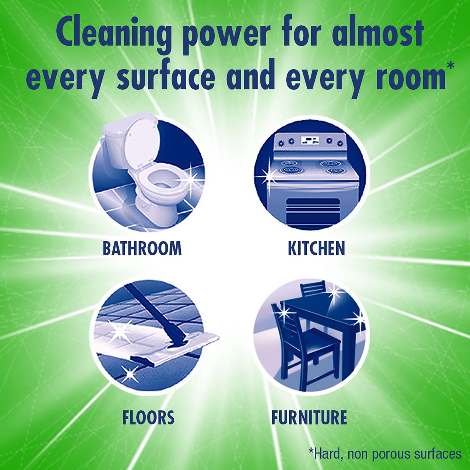 Smells clean for 24 hours* *tested in controlled setting Multi-surface cleaning power Leaves no visible residue No need to rinse Easy to pour bottle