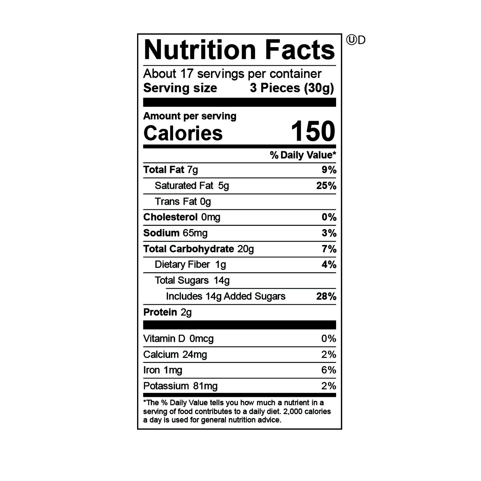 Product Warnings and Restrictions: Contains Milk, Soy Wheat. May Contain Eggs, Peanuts, Tree Nuts (Almonds, Coconut, Pecans, Walnuts).