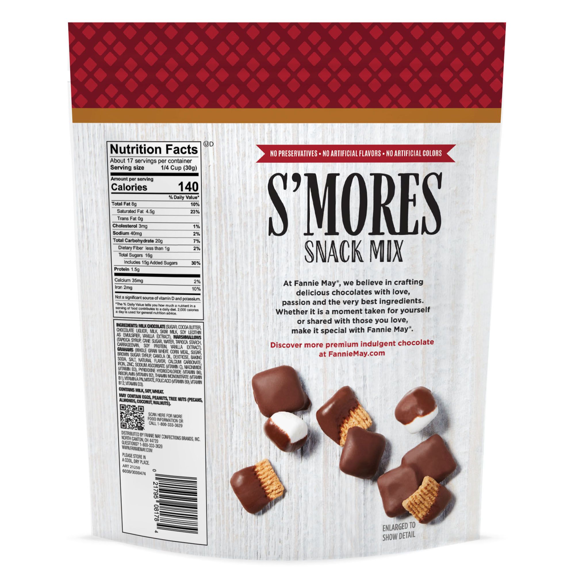 S'mores Snack Mix — the iconic American treat has been perfected by Fannie May Chocolate. The ideal combination of crunchy grahams and fluffy marshmallow coated in rich milk chocolate makes this indulgent snack irresistible. For 100 years, Fannie May has crafted delicious chocolates with love, passion and the very best ingredients.