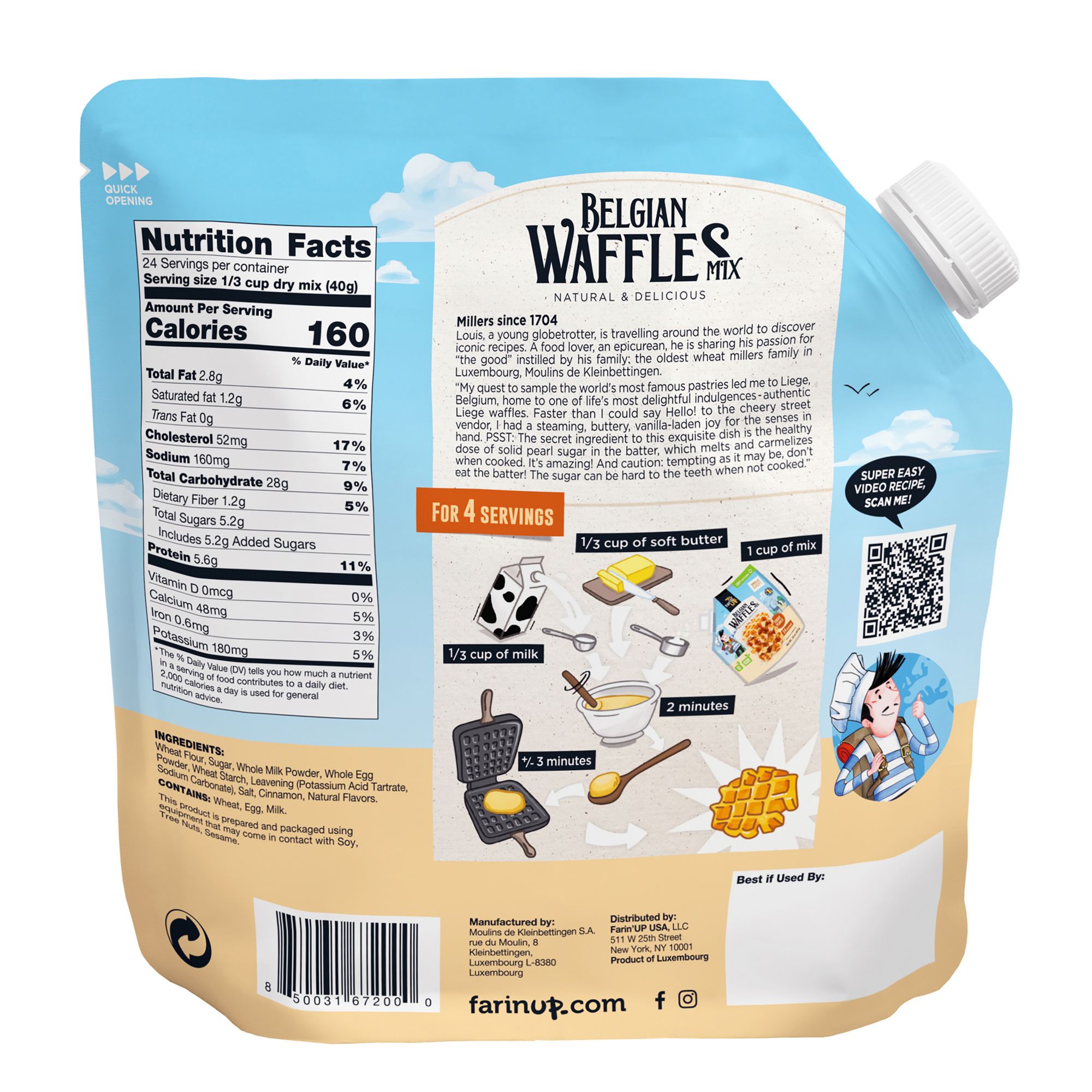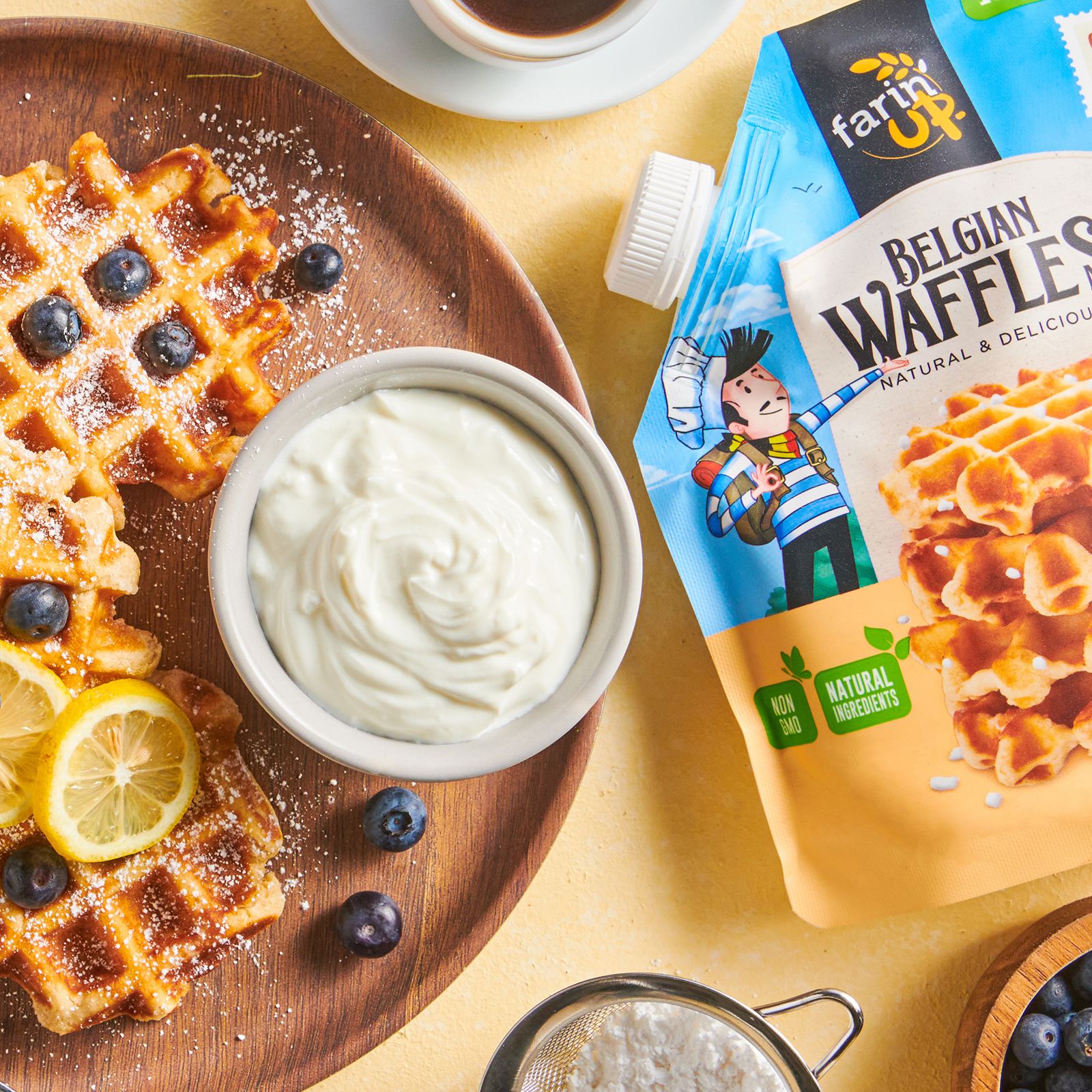 Farin'UP Belgian Waffles Mix contains delicious sugar pearls, which melt when cooked and add a caramelized taste to the waffles. This quick and easy mix is prepared with butter and milk. The packaging is resealable, so you can pour cleanly what you want to cook, reseal and store back safely in the pantry.
