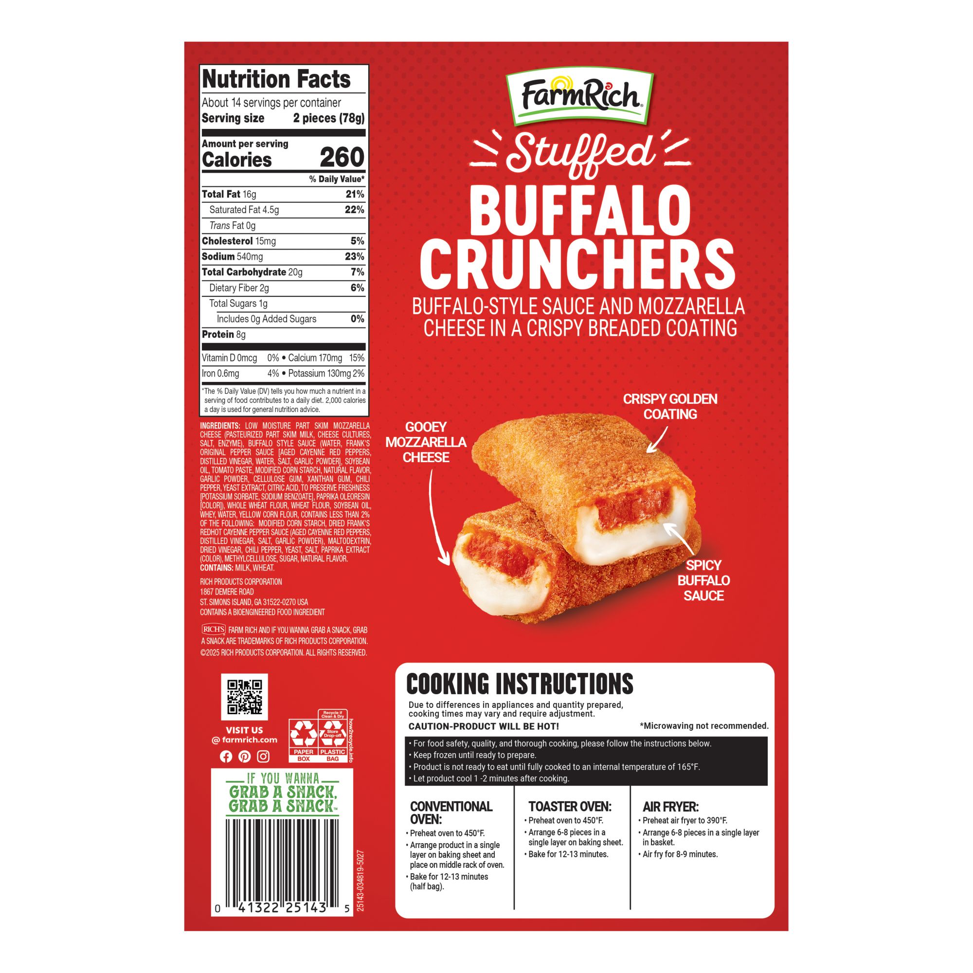 Farm Rich Buffalo Crunchers, Made with Franks RedHot Sauce, 100% Real Mozzarella, 40 oz.