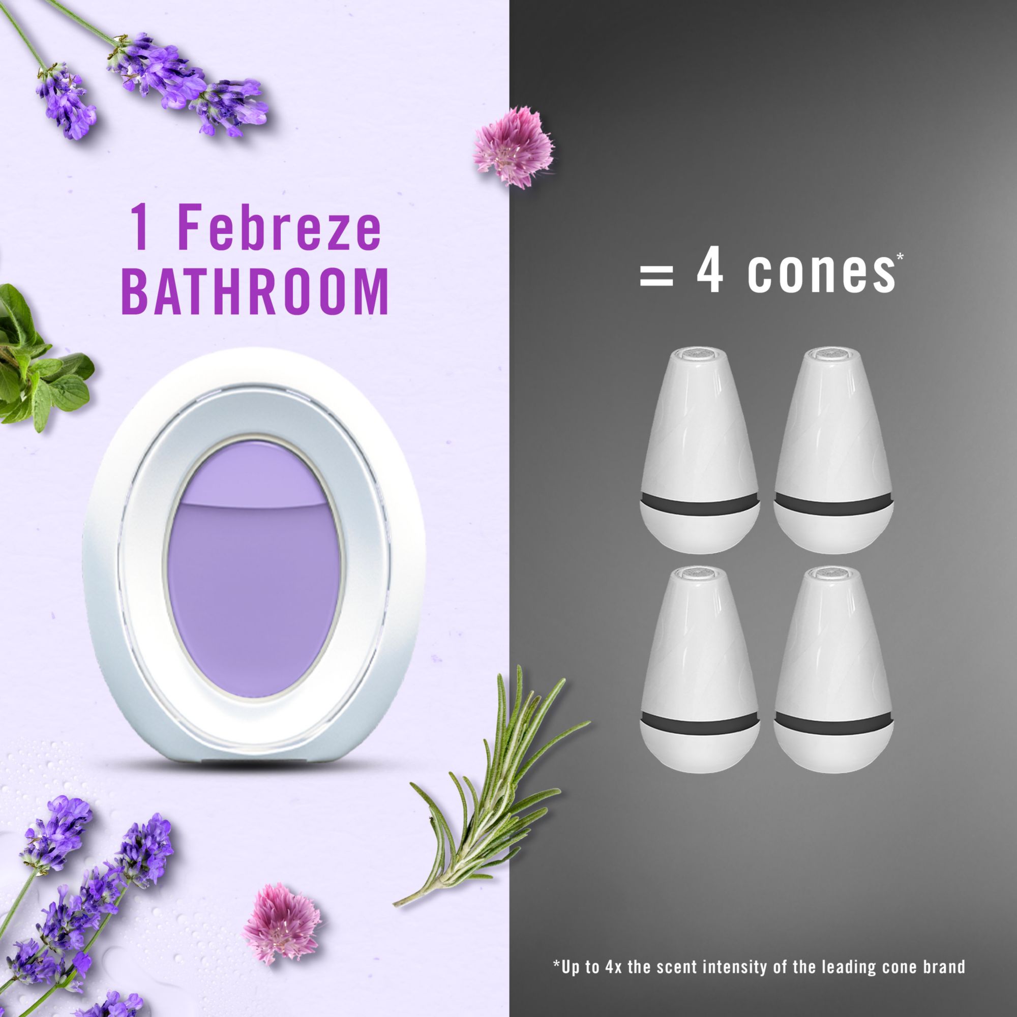 Doesn't mask: fights odors with up to 4x the scent intensity of the leading cone air freshener