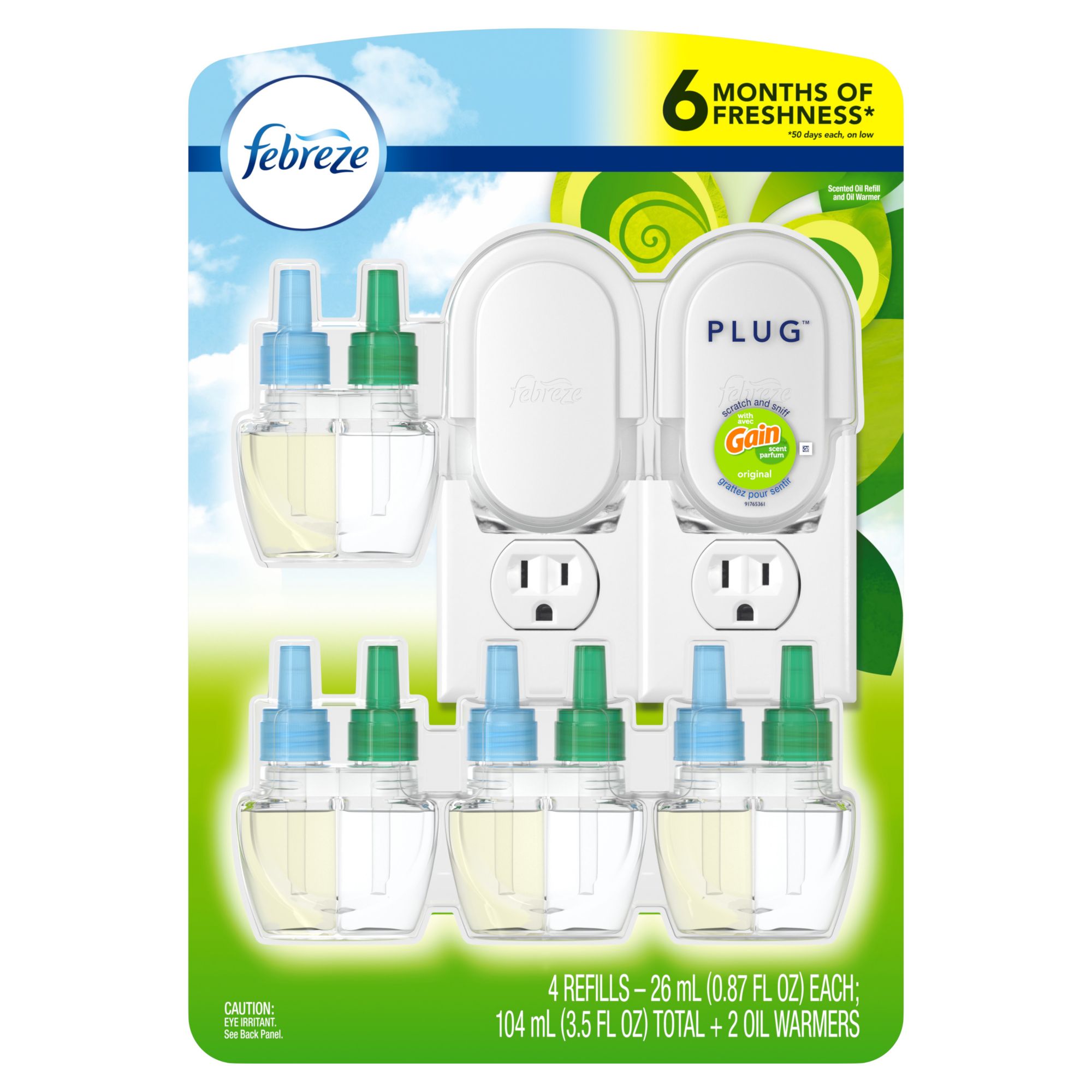 Febreze Gain Original Scent Air Freshener, 2 Oil Warmers and 4 Scented Oil Refills