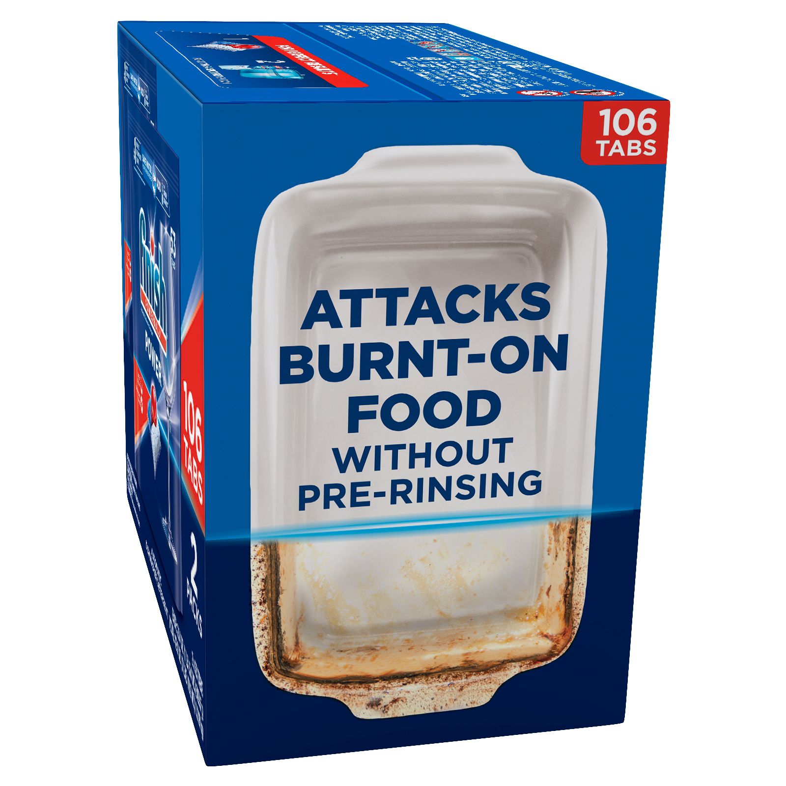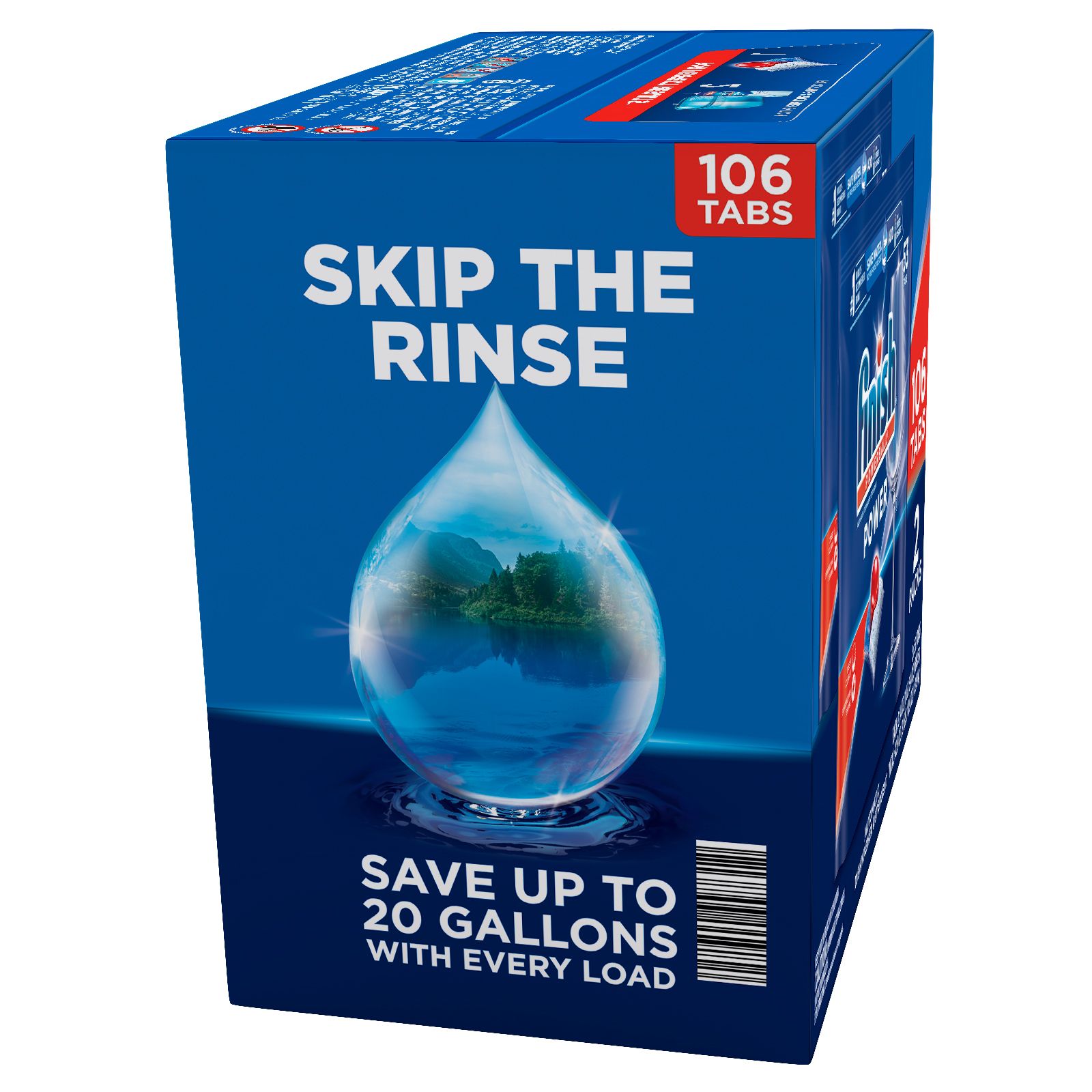 One box that contains two resealable packs, containing 53 tabs each Dishwasher tabs provide a deep clean and sparkling shine World's #1 recommended brand - Recommended by more dishwasher brands worldwide Easy-to-use, wrapper free & pre-measured with clean, fresh scent Skip the Rinse! No need to pre-rinse. Save 20 gallons of water everytime.