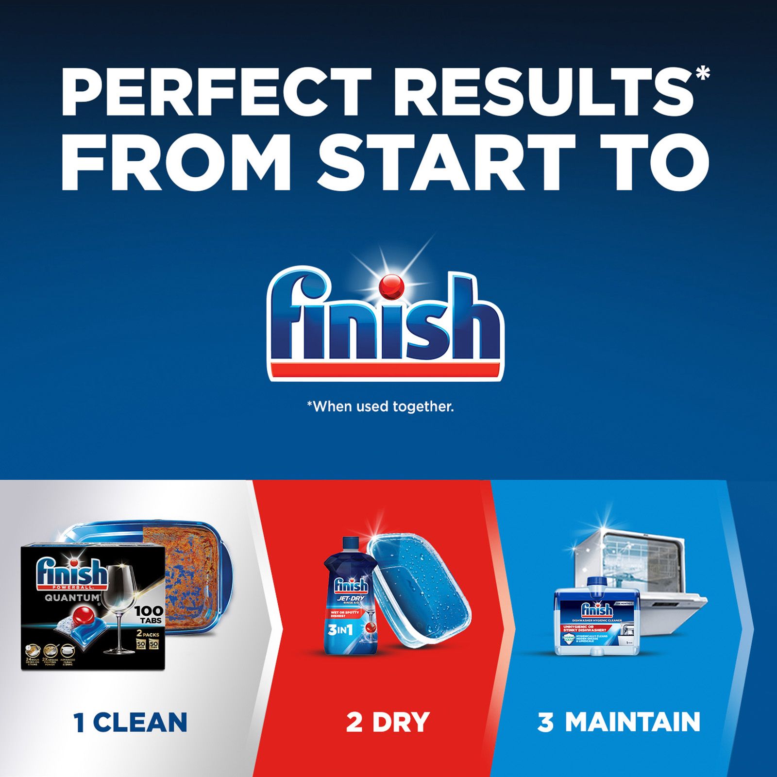 Finish Quantum with Activelift technology gives you the next level of clean with superior clean and shine. Three separate fast-dissolving chambers deliver three power actions: break down and lift toughest messes, grease-cutting power and a finishing boost of shine. The three separate chamber tab delivers the cleaning power of an overnight soak, scrubbing away even 24-hour dried-on food. Advanced powder with bleach seeks out and cleans tough stains like tea and coffee. No need to pre-soak or pre-rinse. This formula cleans in short cycles and provides glass protection.