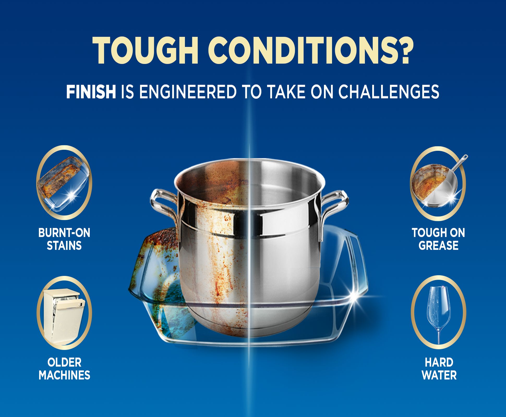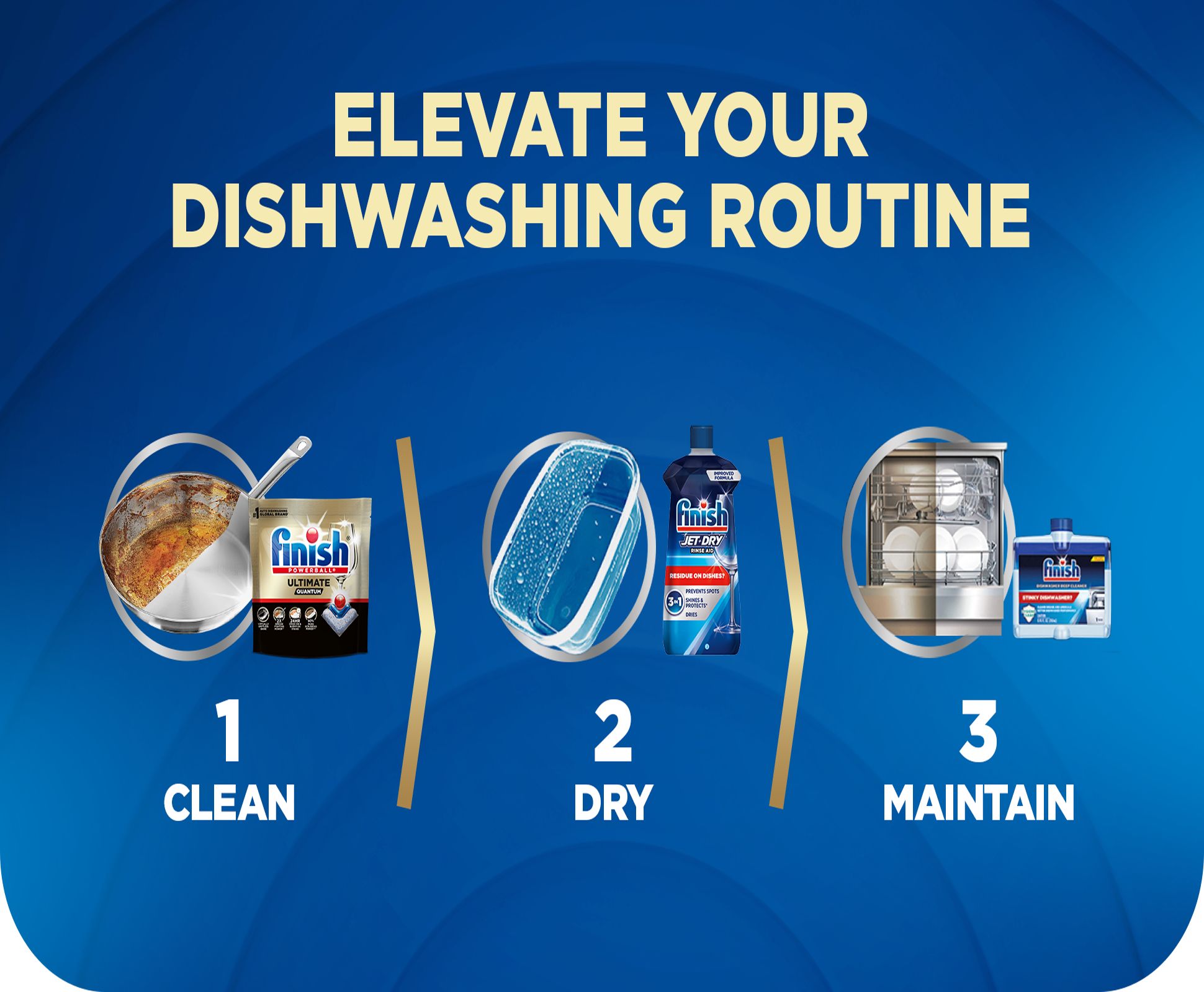 Powerful clean, no pre-rinse needed: Experience 50% more cleaning power* with Finish Ultimate Quantum. Designed to tackle over 100 tough stains, it delivers a deep clean without the need to pre-rinse - saving you time and water. *vs Power #1 global brand in auto dishwashing: Finish is the world’s leading brand in automatic dishwashing solutions, based on combined unit sales of detergents, rinse aids, and additives. Sparkling results, every time: Unlock the triple-action power of shine, degrease, and scrub. From delicate wine glasses to heavy-duty stainless steel pans, enjoy a sparkling, virtually spot-free finish with every wash.