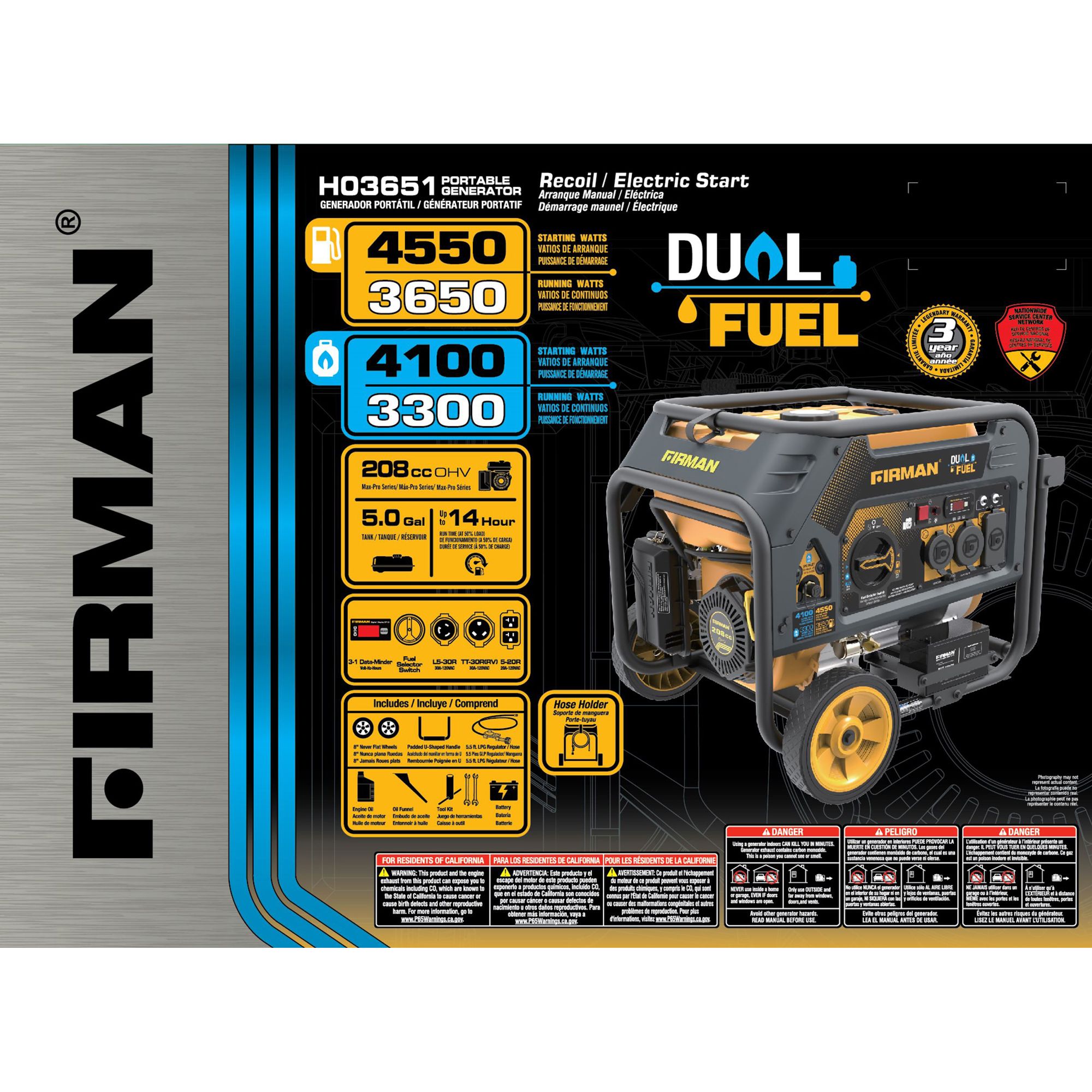 FIRMAN Power Equipment H03651 4550W Peak/3650W Rated Dual Fuel Generator