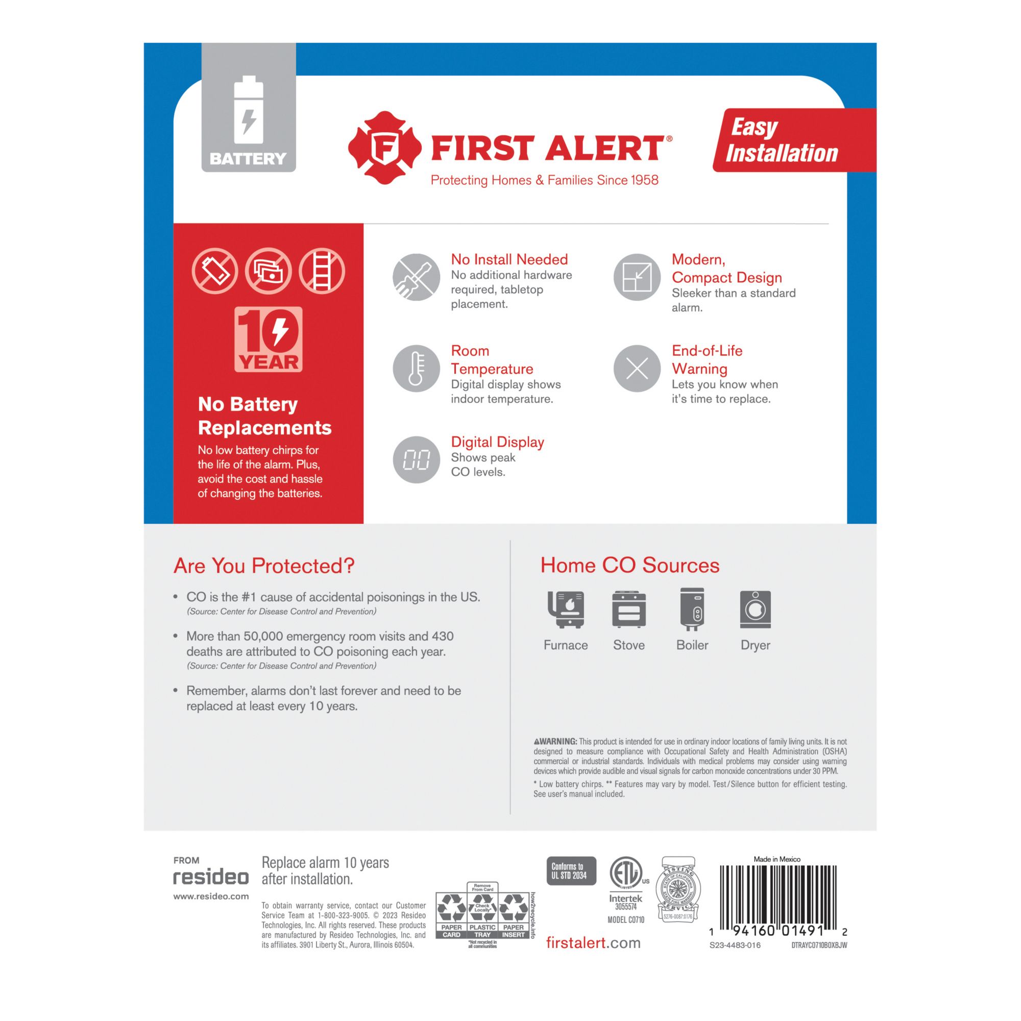 First Alert Carbon Monoxide Detector with Digital Temperature Display
