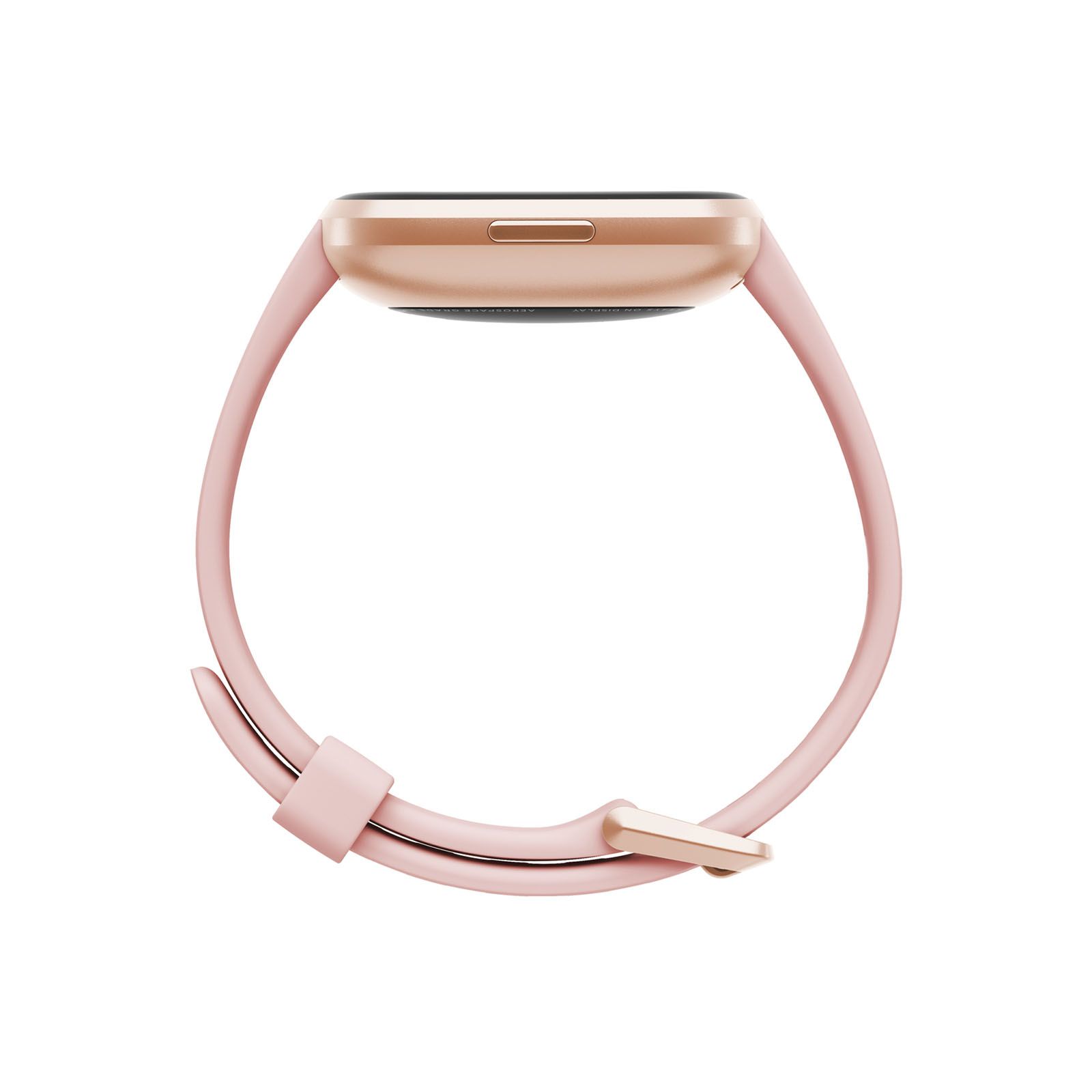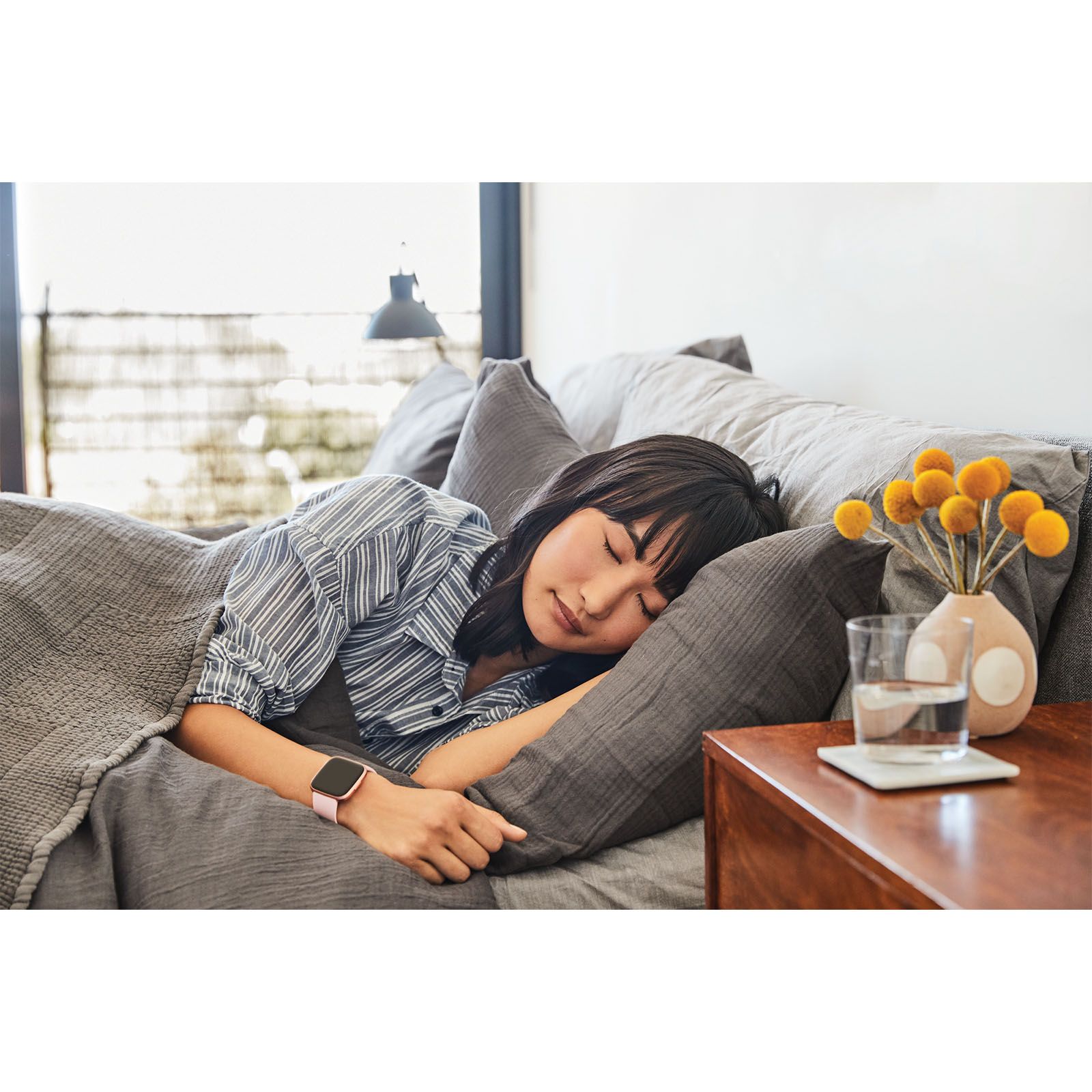 Smartwatch bundle with bonus small and large size bands Control Spotify, store & play 300+ songs 24/7 heart rate monitoring Built-in Amazon Alexa Secure purchases with Fitbit Pay on-wrist Sleep tracking and stages Four+ day battery life (varies with use and other factor) Smartphone notifications and apps Track nighty sleep quality score in-app Water resistant to 50m Always-on display mode Petal and navy Includes smartwatch, small band and large band