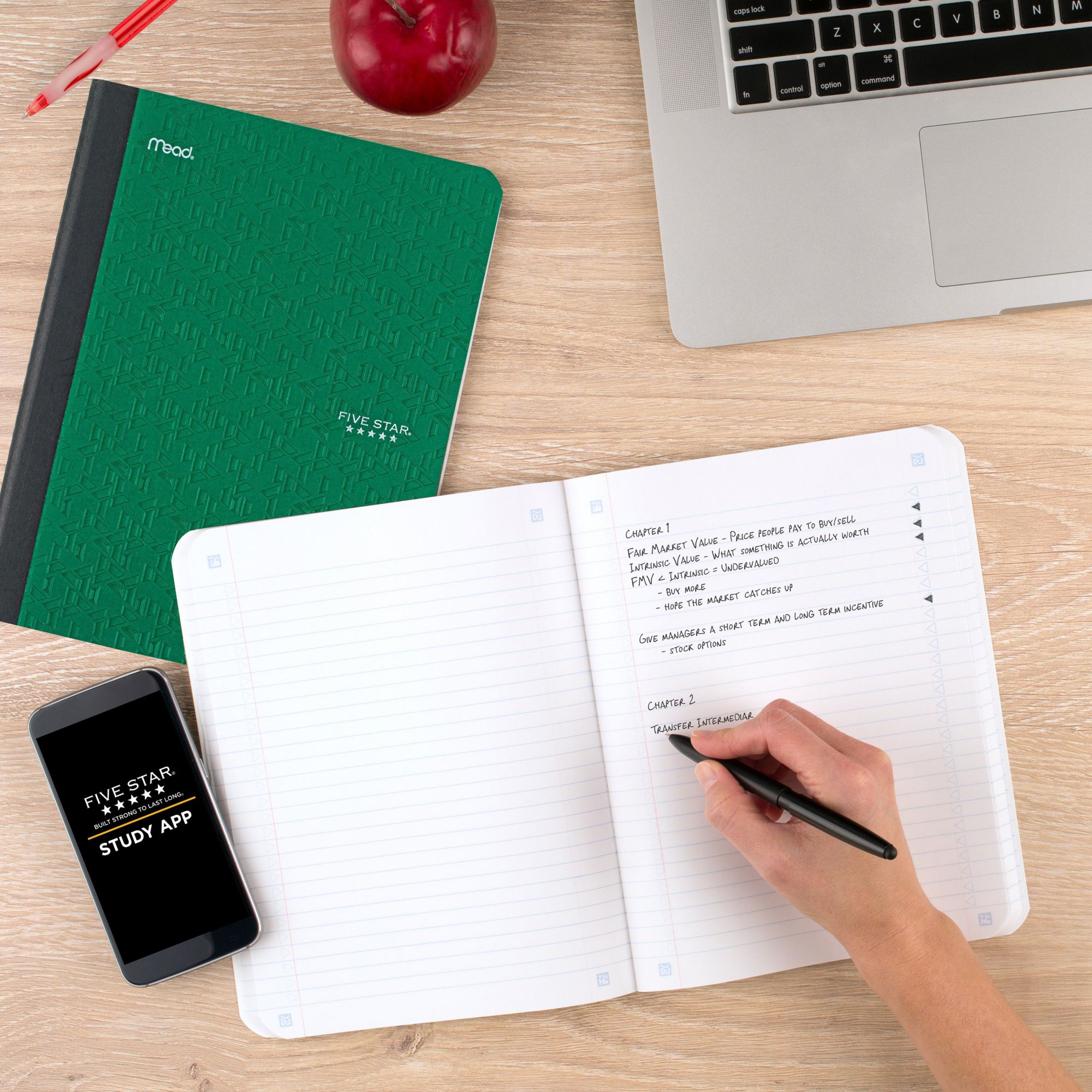 Five Star Composition Book Plus Study App, College Ruled, 80 Sheets, 7-1/2" x 9-3/4", 2 pk.
