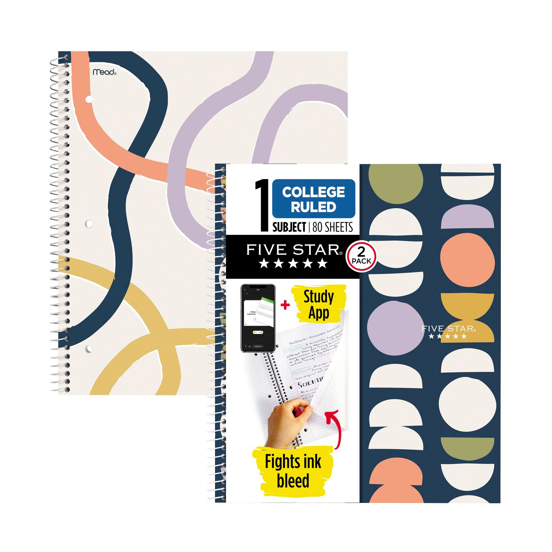 Five Star Wirebound College Ruled Notebook Plus Study App, 2 pk. - Simple Waves