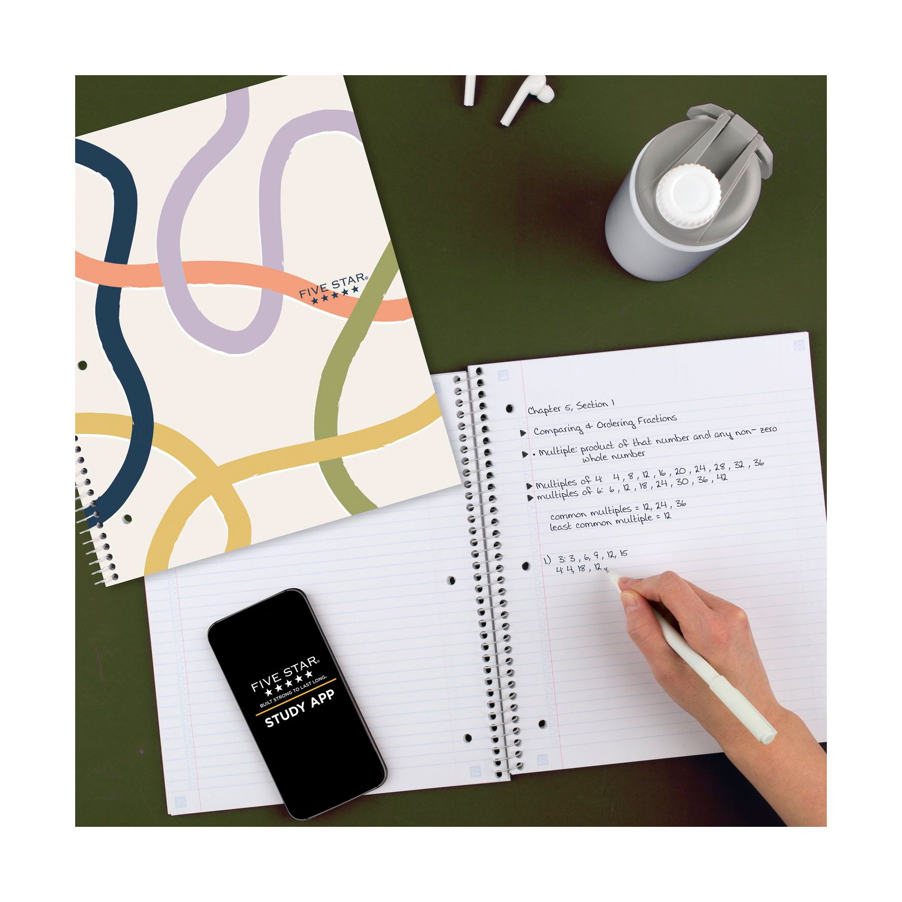 Lasts all year. Guaranteed. This Five Star one subject notebook is full of features. Compatible with the Five Star app, you can easily scan, study and organize notes on your phone. Create instant digital flashcards and sync notes to google drive and access them anywhere from any device. One subject notebook has 100 double-sided, college ruled sheets, which fight ink bleed. Sheets measure 8.5" x 11" and are perforated for easy tear out. Tough pockets help prevent tears and hold 8.5" x 11" loose sheets and handouts. Covers are water-resistant to help protect your notes and spiral lock wire helps prevent snags on clothes and backpacks. Made with SFI certified paper. Notebook is recyclable – just remove the reinforcement tape on the pocket and recycle the rest. Guarantee is valid for one year from purchase date. Does not cover misuse. Go to fivestarbuiltstrong.com for details.