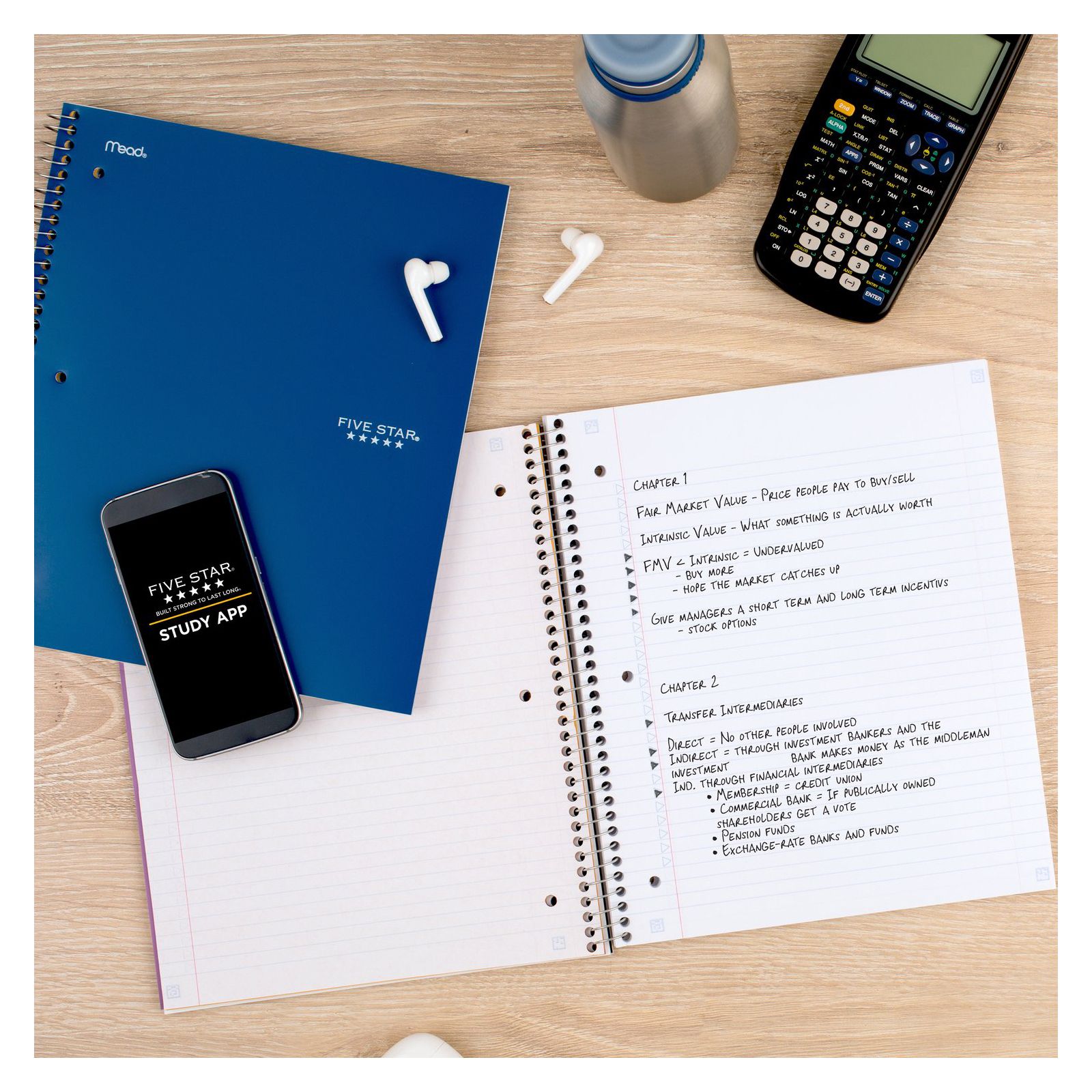 Five Star Wirebound Notebook Plus Study App, College Ruled, 2 pk., Blue/Red