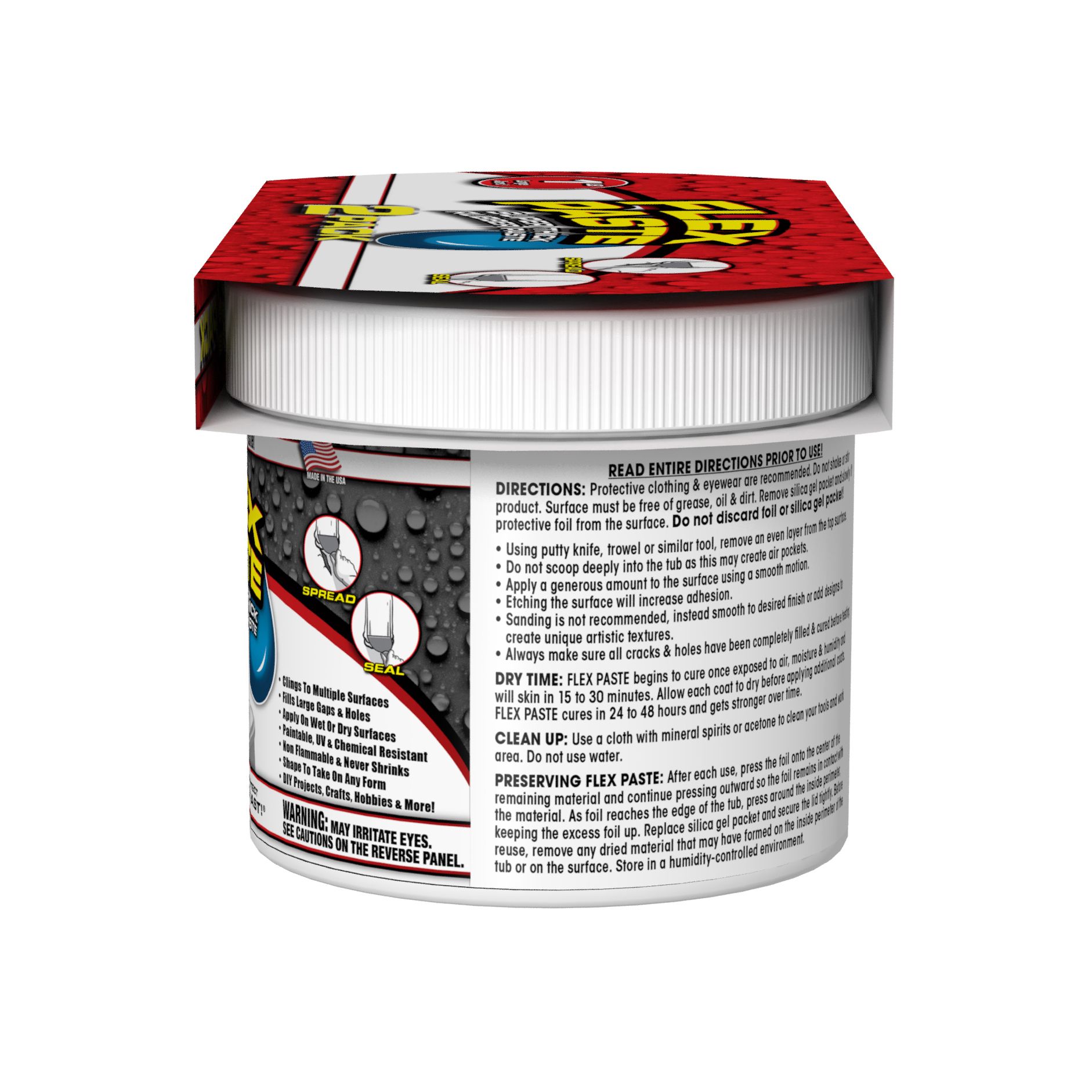 FLEX PASTE begins to cure once exposed to air, moisture and humidity and will skin in 15 to 30 minutes