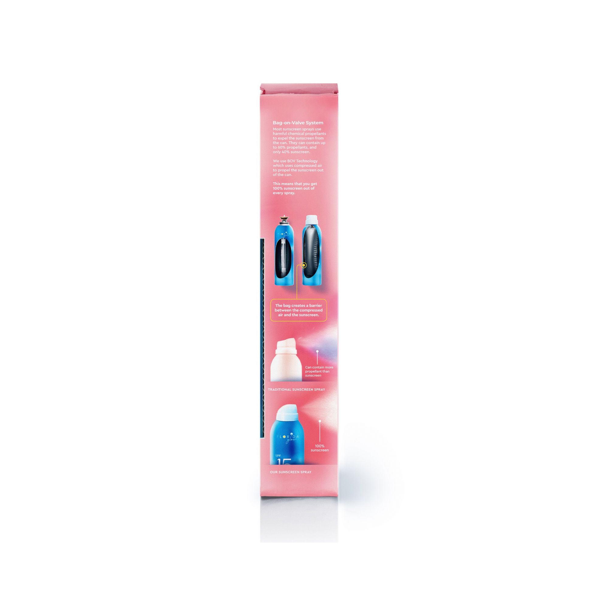 This isn't your average sunscreen. This sunscreen sprays use innovative Bag-on-Valve (BOV) technology, setting it apart from many other sunscreen sprays. What does this mean? It means it does not contain any harmful chemical propellants, and you get more sunscreen per can, more than double in many cases, than sunscreens that do not use BOV! This is because the chemical propellants dilute the formula. This ultra-lightweight mist can be sprayed from any angle, and will leave your skin soft and smooth- never greasy. Enriched with nourishing coconut oil and a creamy coconut aroma to match- this just might be your new favorite sunscreen!