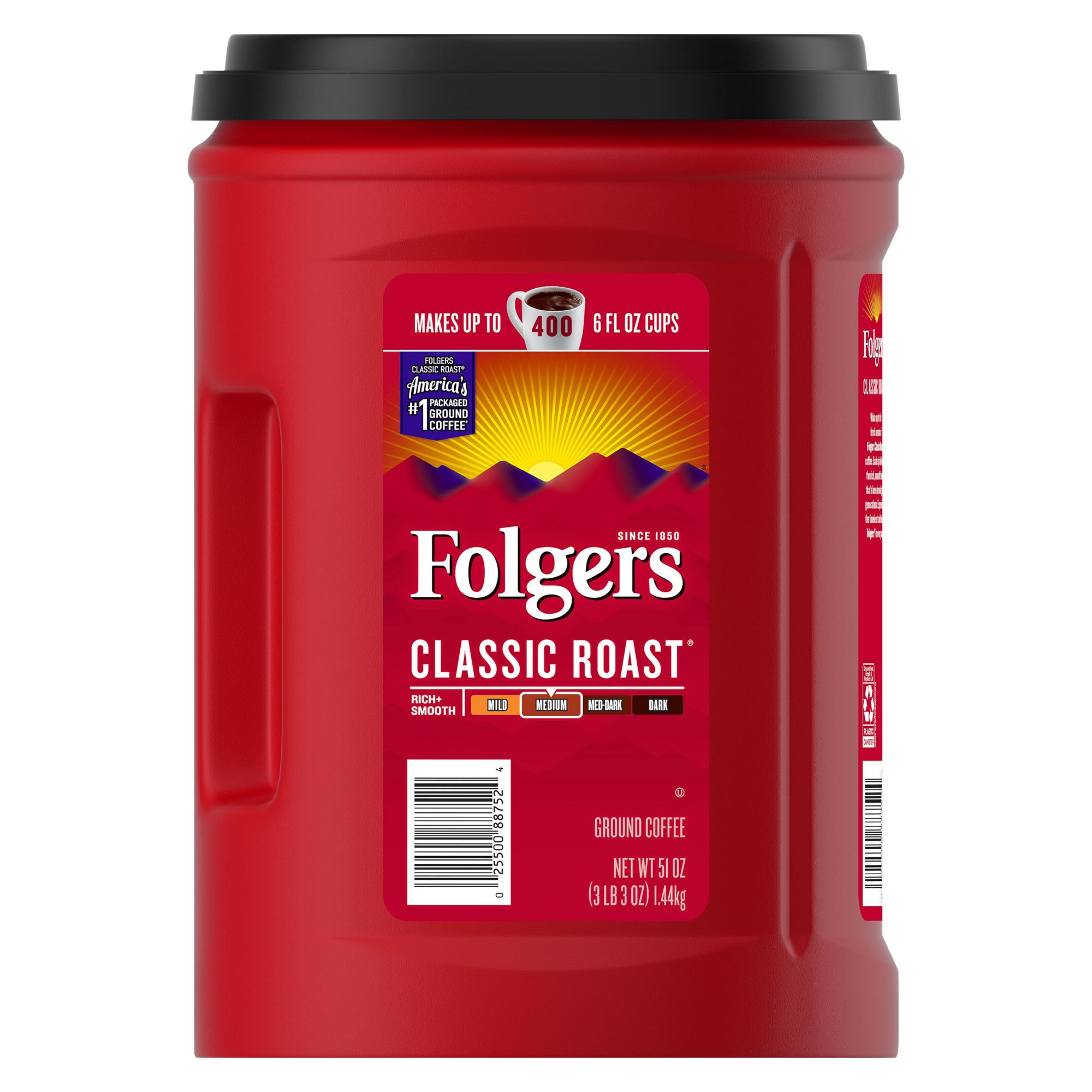 Made from mountain-grown beans, this Folgers 51 Oz. Classic Roast Coffee delivers an aromatic and flavorful brew for your morning pot of coffee. Get ready to start your day off right with this robust coffee.