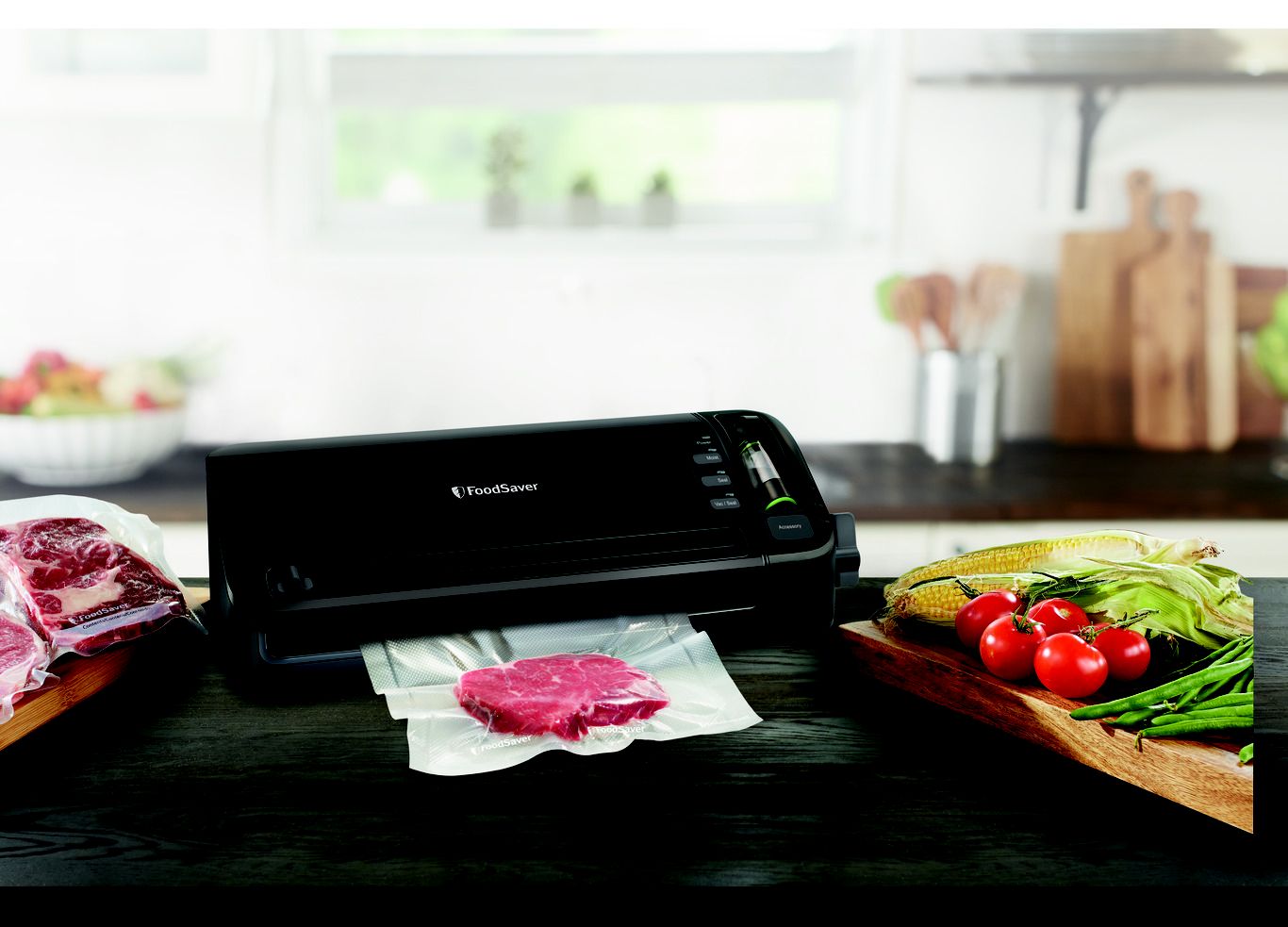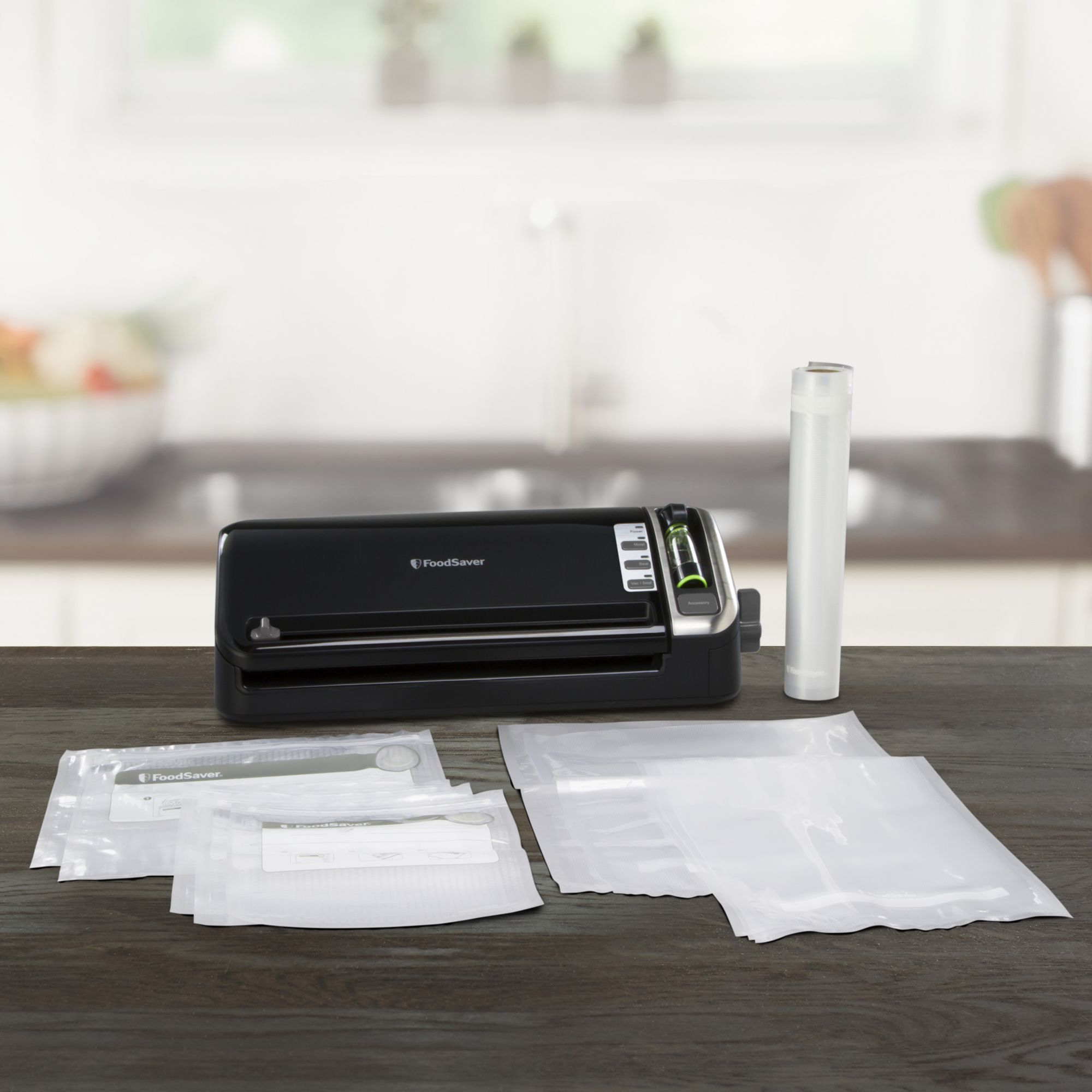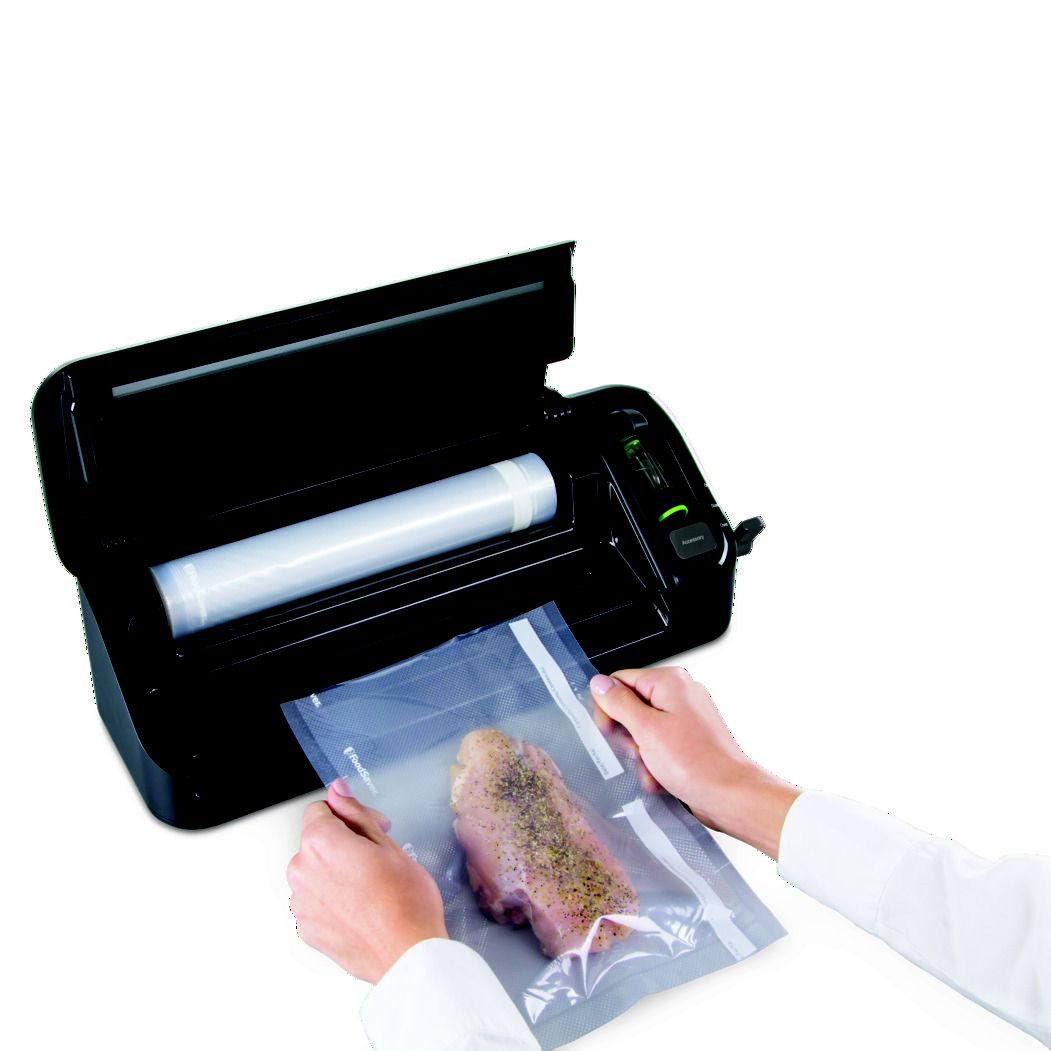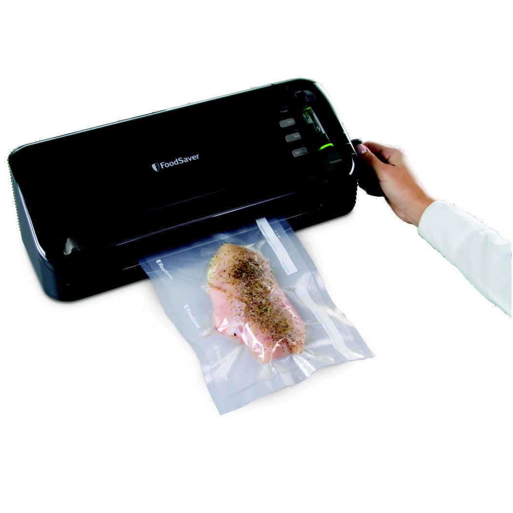 Keeps food fresh in the freezer up to five times longer and in the fridge or pantry twice as long compared to ordinary storage methods Extra-wide sealing strip applies heat for a secure, air-tight seal Handheld sealer seals FoodSaver zipper bags, canisters, containers, and marinates food in minutes Built-in roll storage for FoodSaver vacuum rolls Roll cutter on lid slides across to cut bags to any length Dishwasher-safe drip tray catches excess liquid that may fall during the sealing process Includes (1) FoodSaver food preservation system, (1) 11" x 10' vacuum seal roll, (3) 1-quart vacuum seal bags, (2) 1-gallon vacuum seal bags, (3) 1-quart vacuum zipper bags, and (2) 1-gallon vacuum zipper bags Warranty: 5 years limited