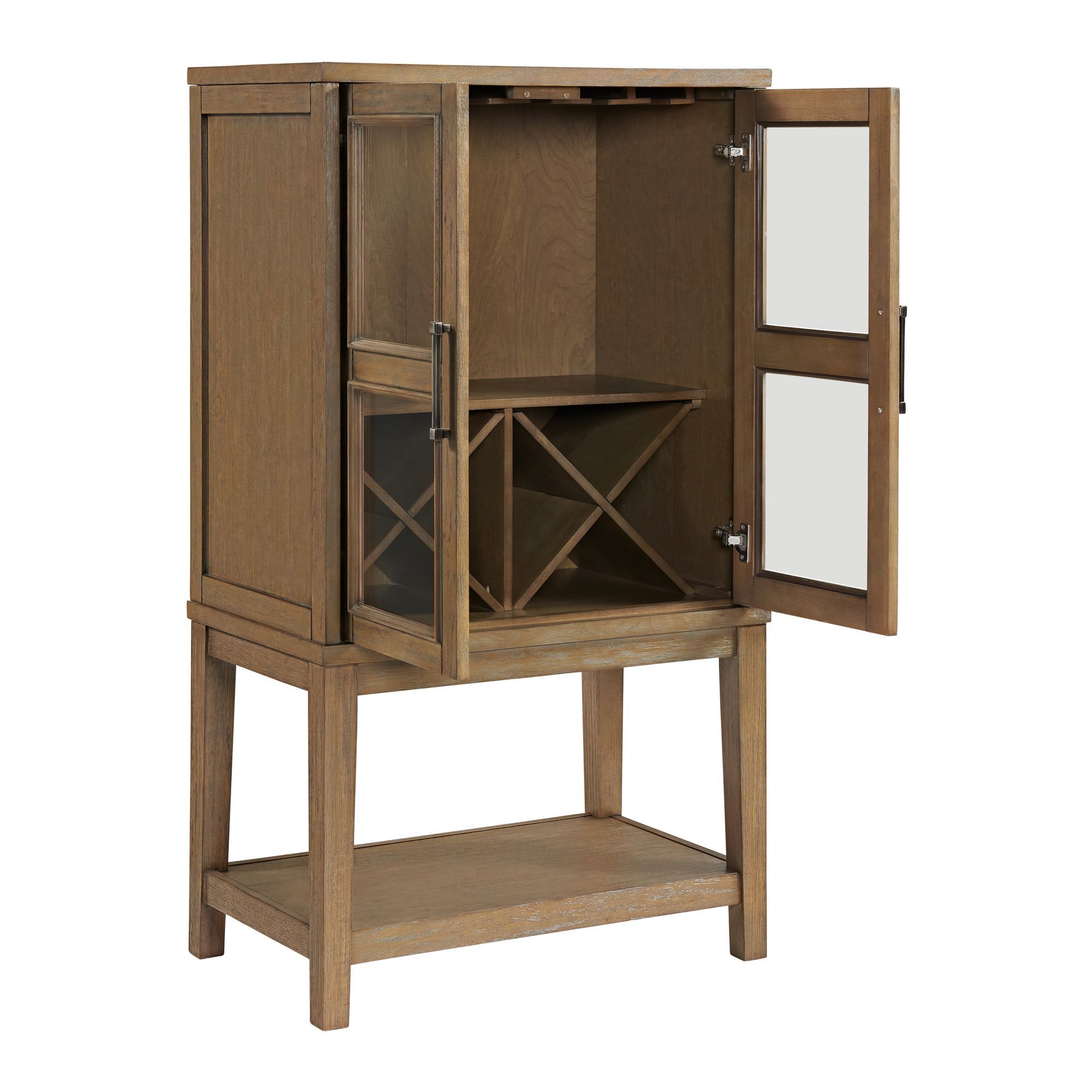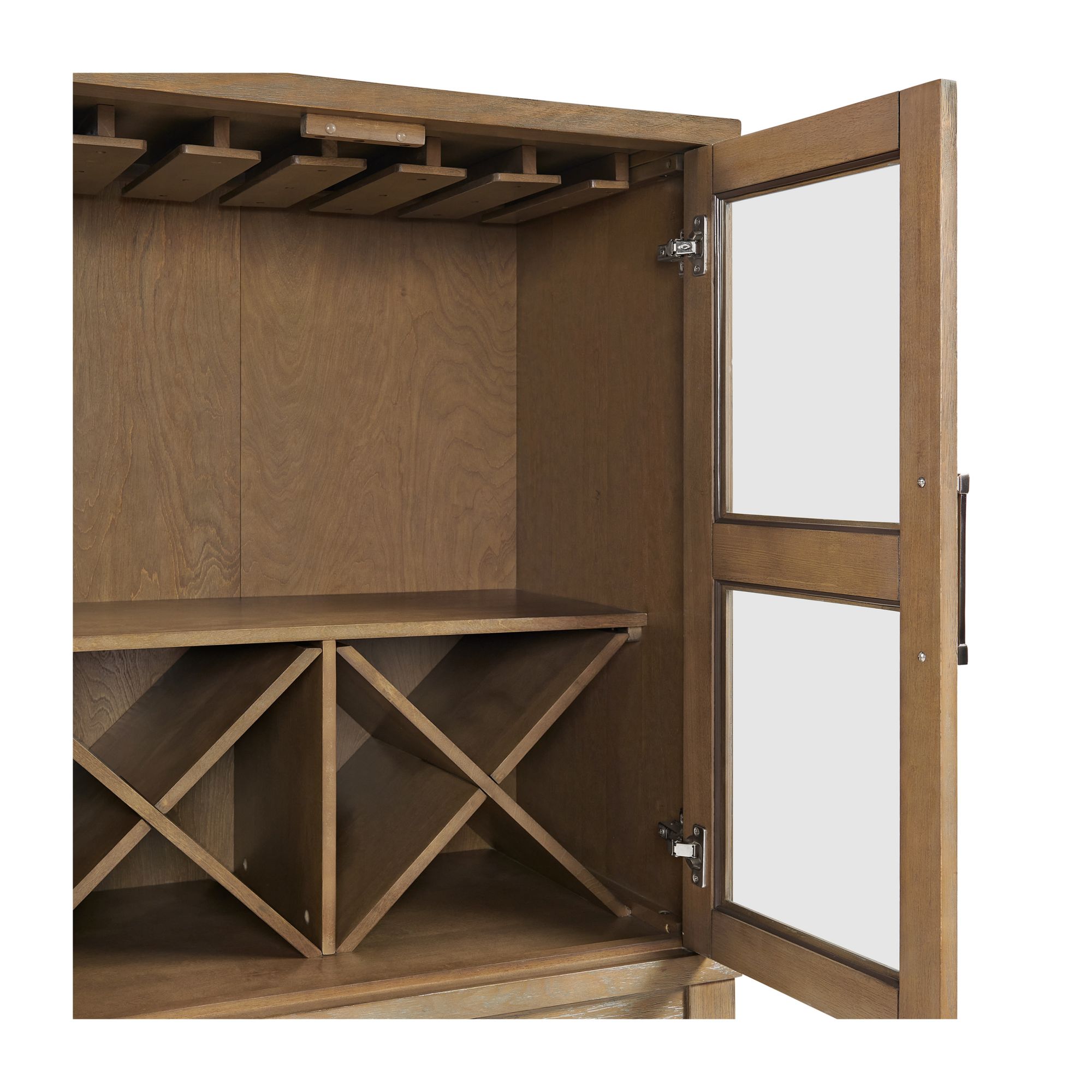 The Foremost Home Arlo Multi-Function Bar Cabinet is great for wine storage or as a decorative accent piece. Complete with a multi-step finish, it will truly make a statement in your home. This item also features enclosed storage with a glass holder on top and removable wine storage on the bottom — plus a functional storage shelf.