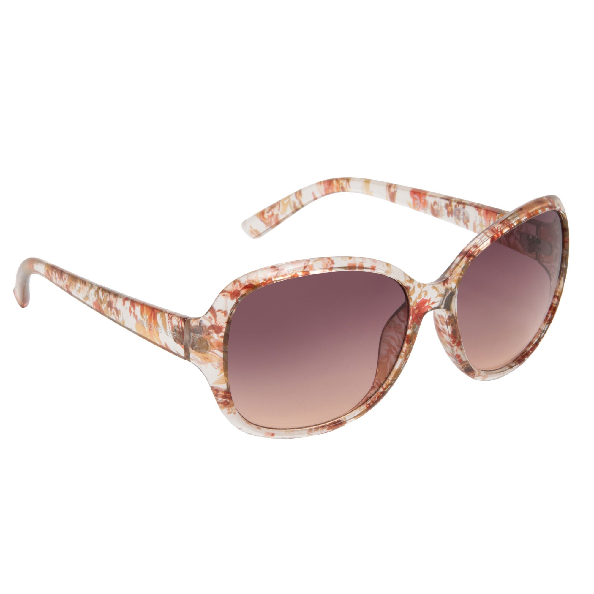 Includes women's oversized square sunglasses, floral