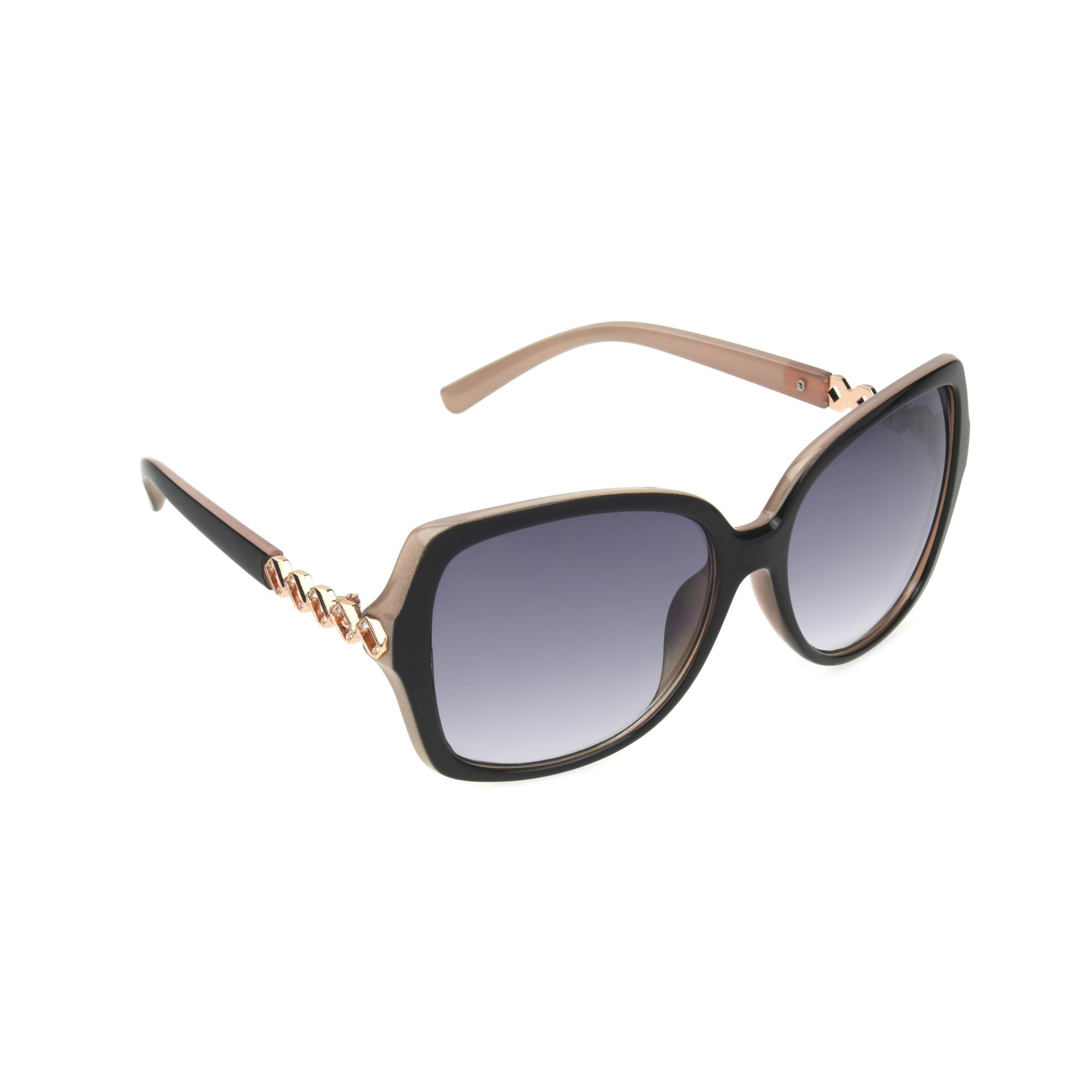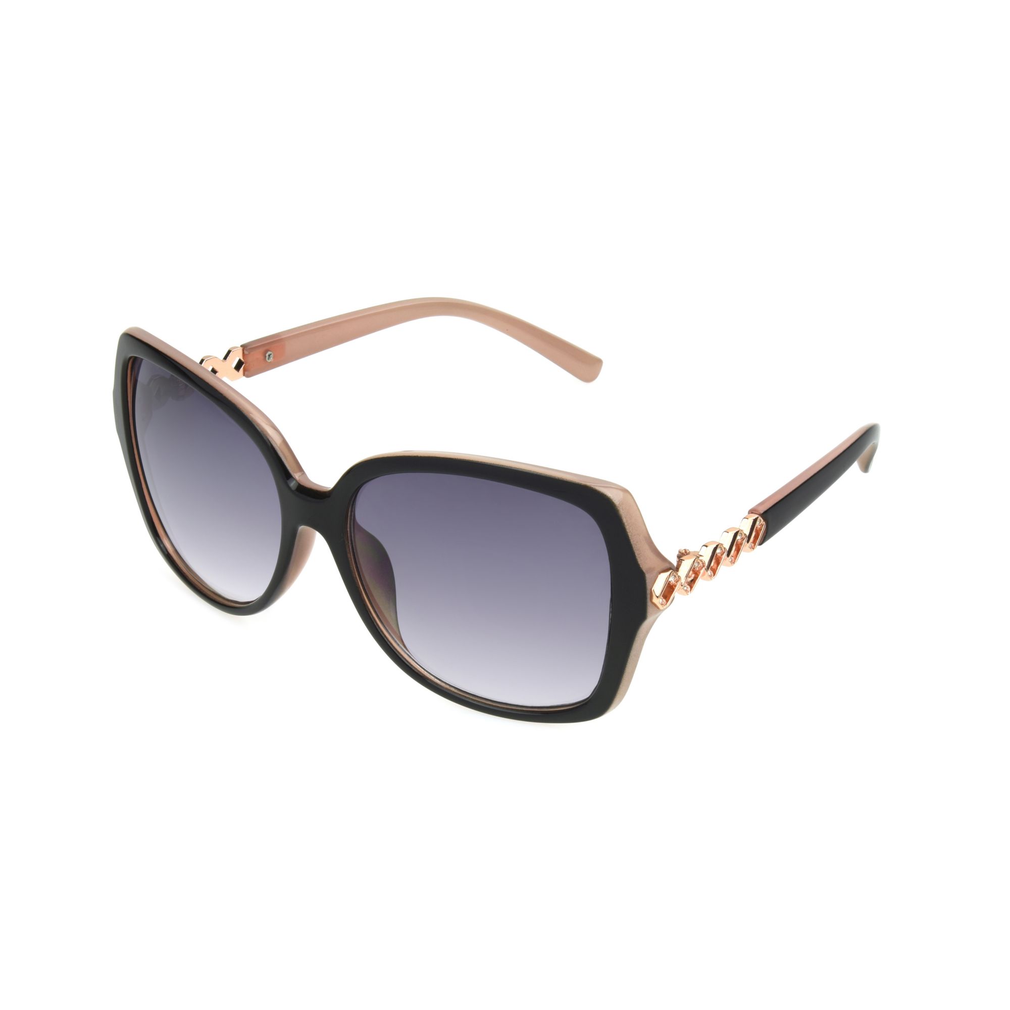 These Foster Grant women's fashion sunglasses, feature oversized square frame fronts in a black and taupe finish. Metal details on the temple elevate the look. The dark lenses are not only fashion-forward but are also equipped with scratch and impact-resistant technology, ensuring they stay in pristine condition. With 100% UVA-UVB lens protection, these sunglasses seamlessly blend chic design with essential eye care.