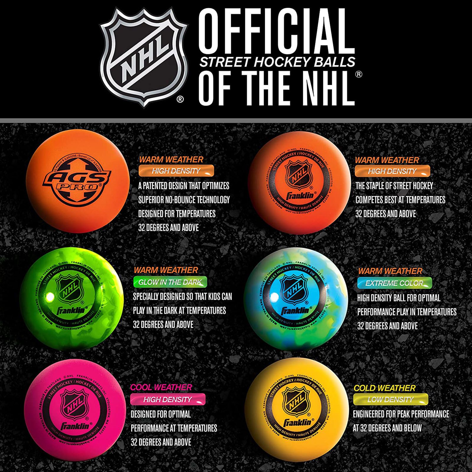 Franklin NHL Extreme Color High-Density Street Hockey Balls, 15 pk.