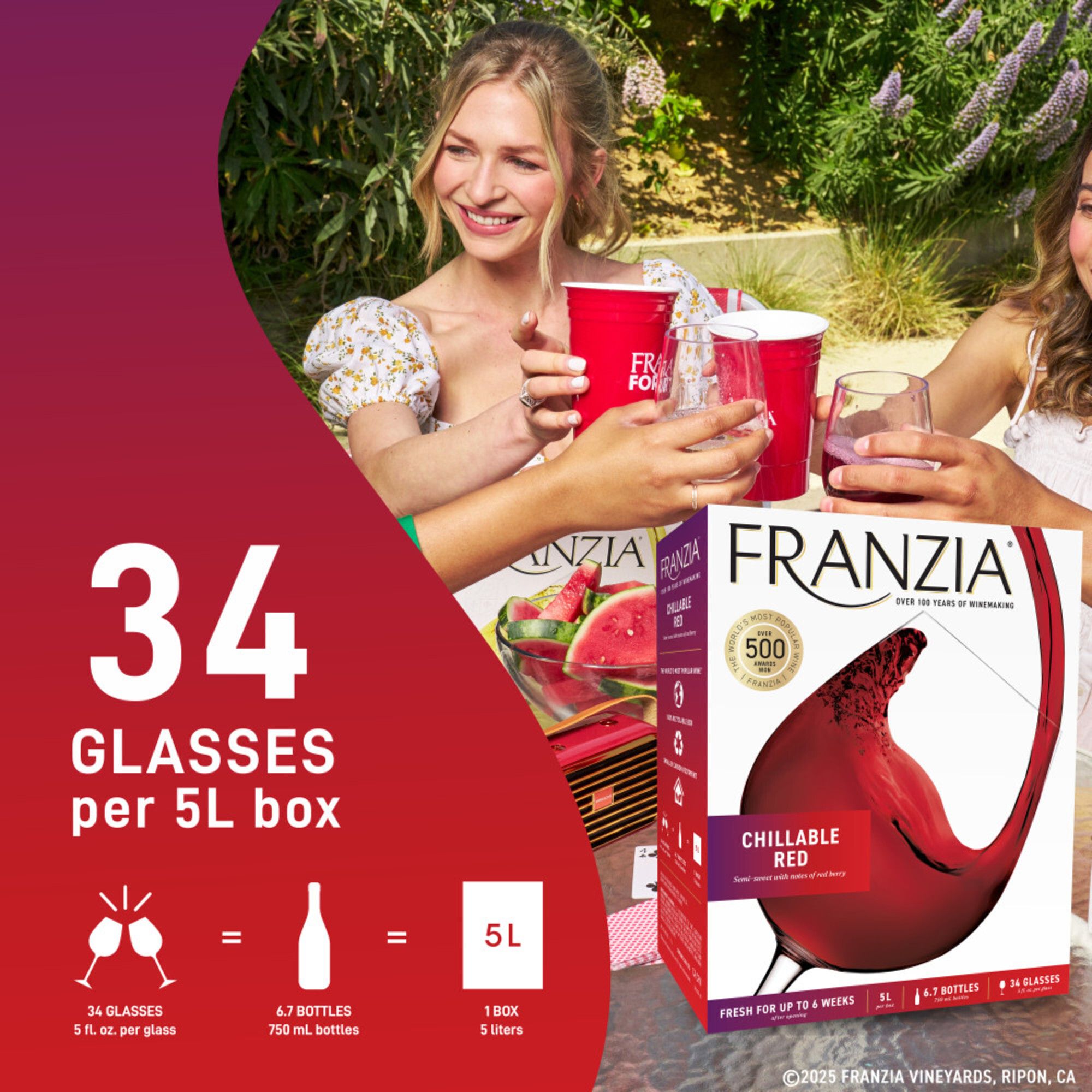 One 5L Box of Franzia Chillable Red, Red Wine
