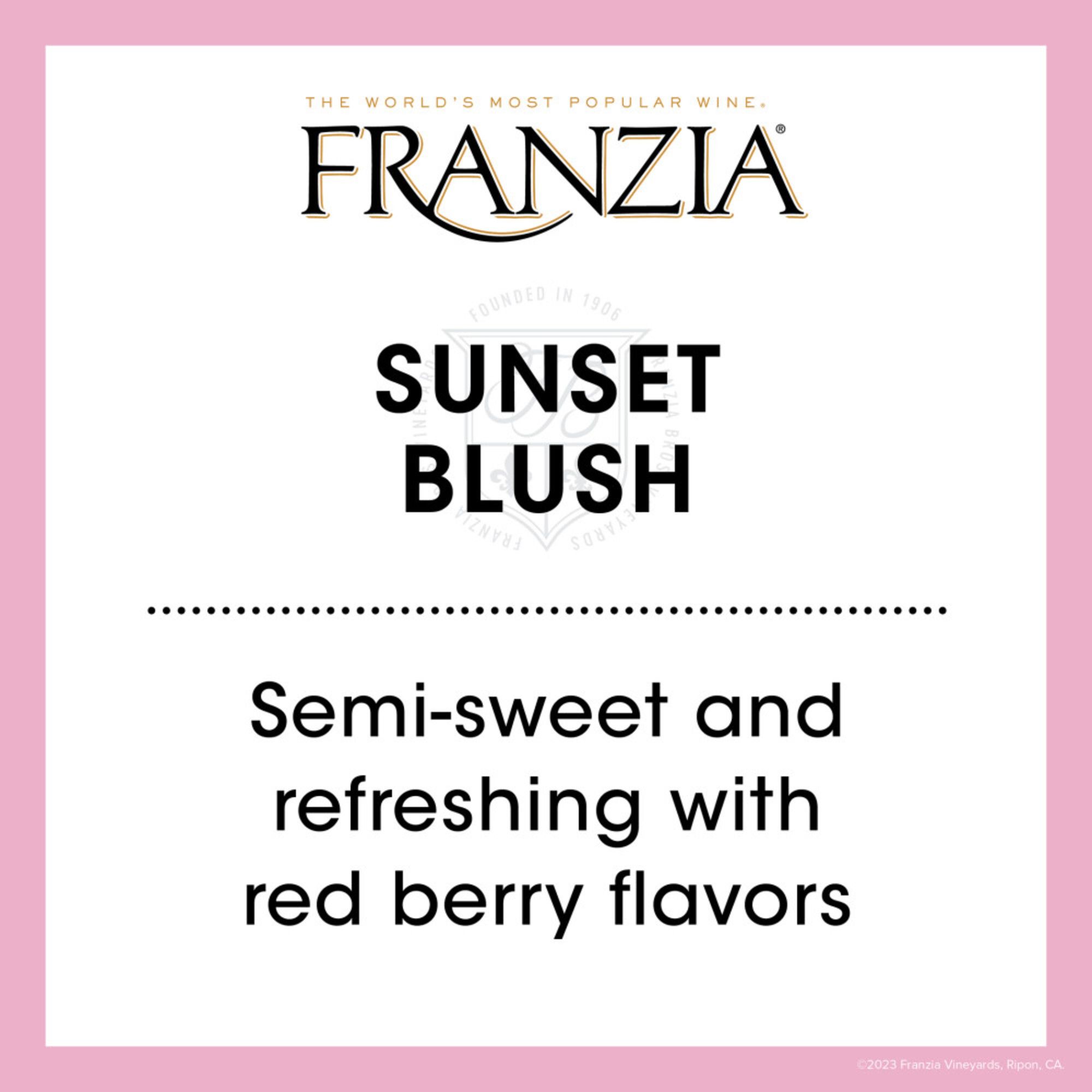 Franzia Sunset Blush pink wine is a semi-sweet and refreshing wine with red berry flavors