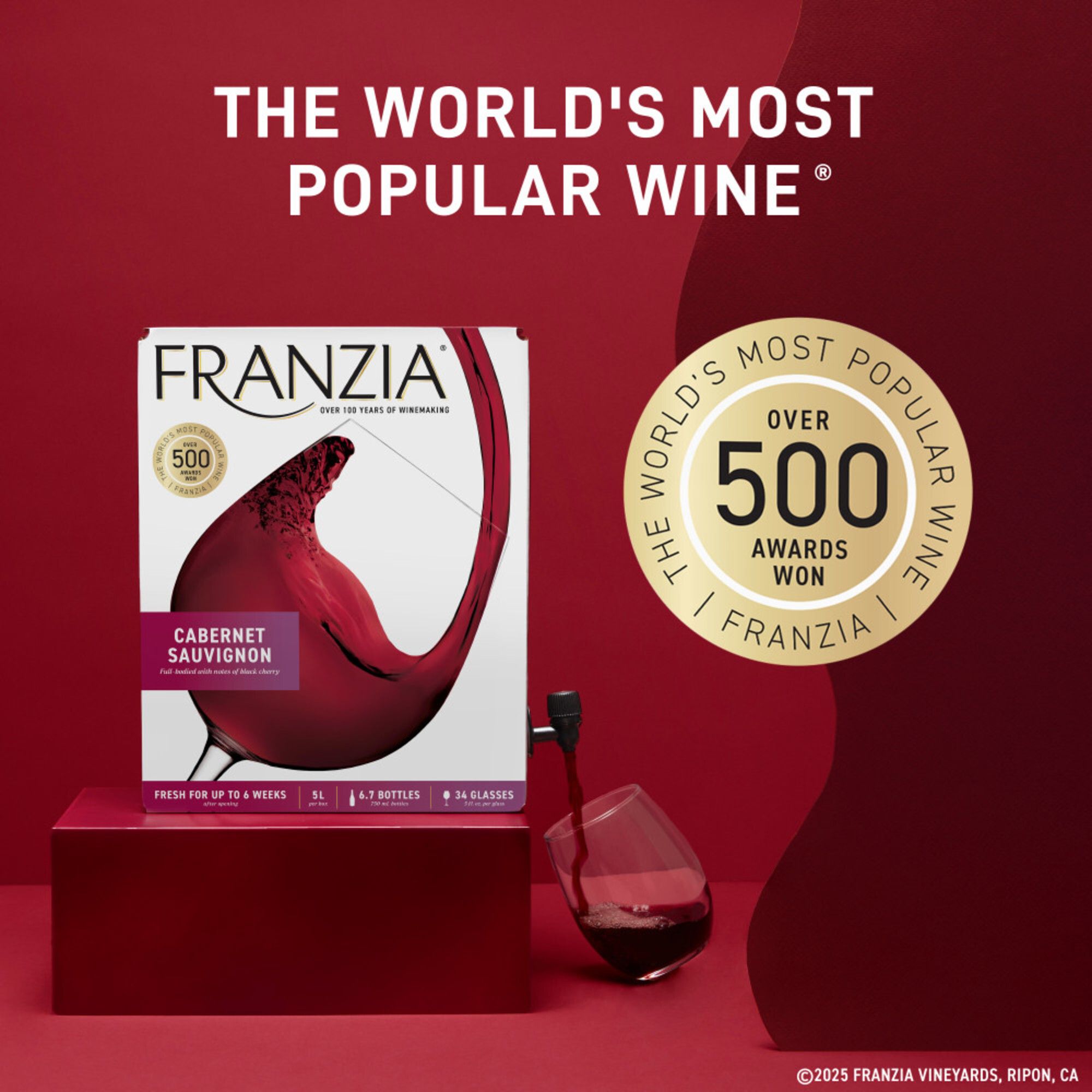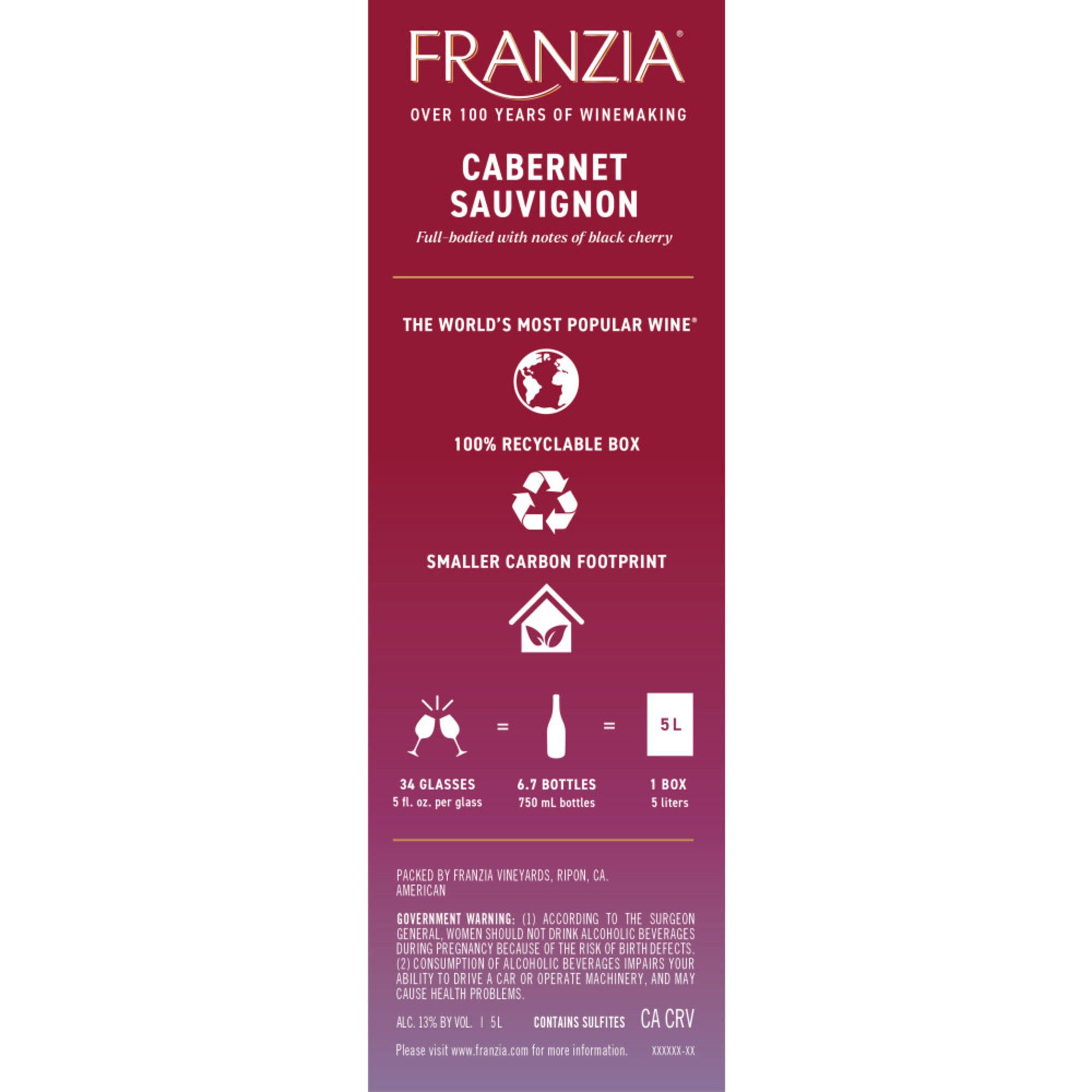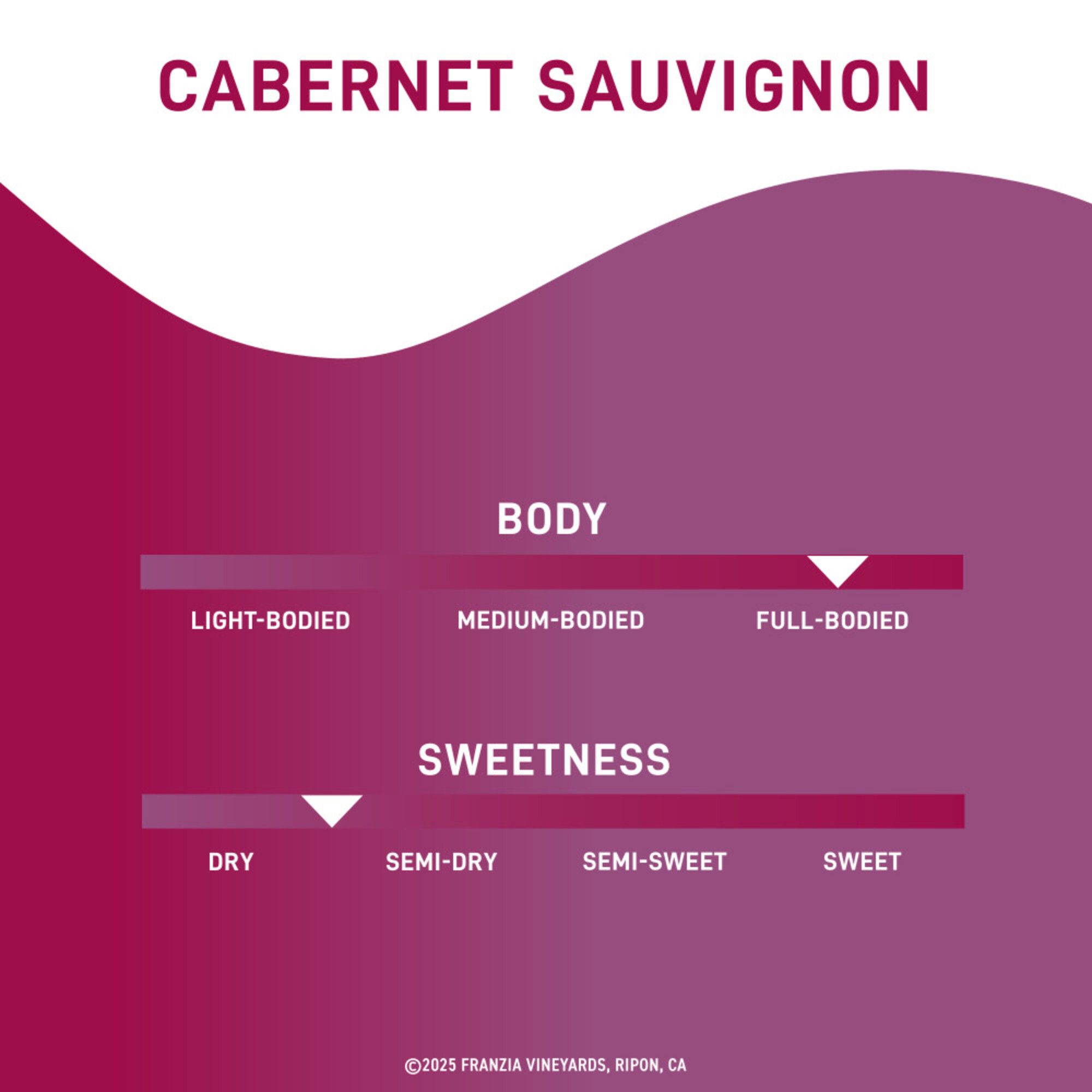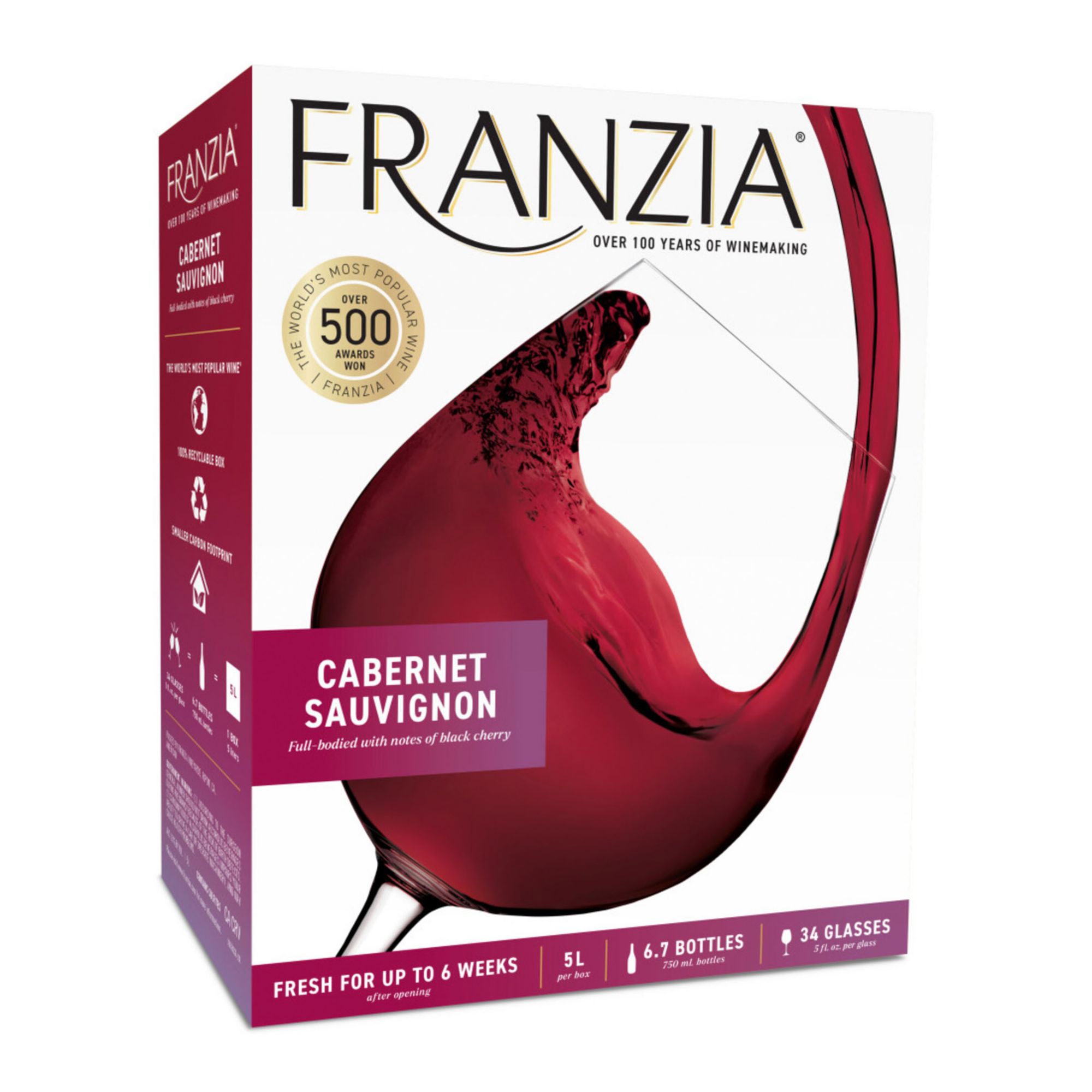 Franzia Cabernet Sauvignon red wine is a full-bodied, dry wine with cherry and plum aromas with a hint of oak
