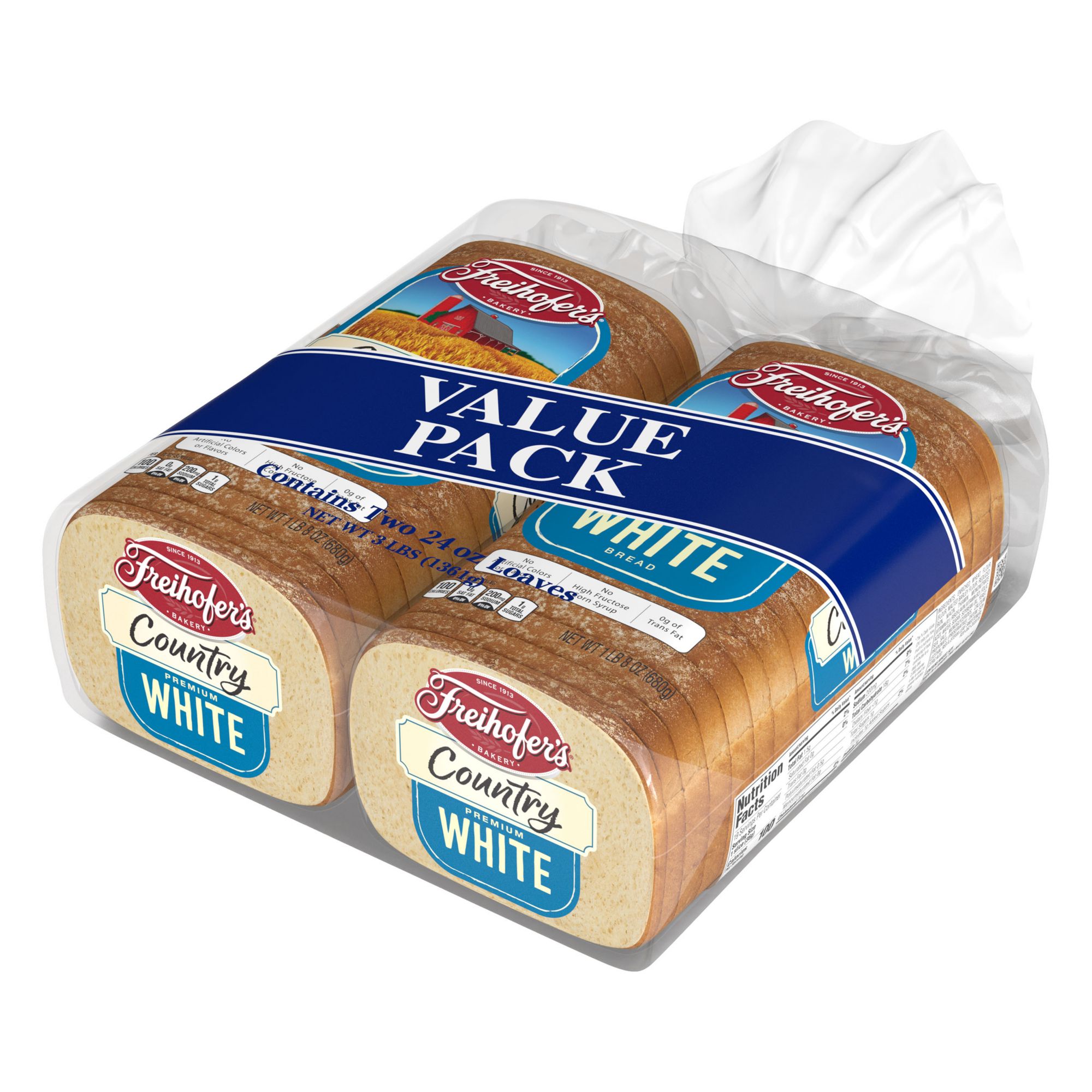Soft country style white bread Makes great sandwiches to little pizzas Your family will love the taste Includes two 24 oz. loaves of County Style white bread