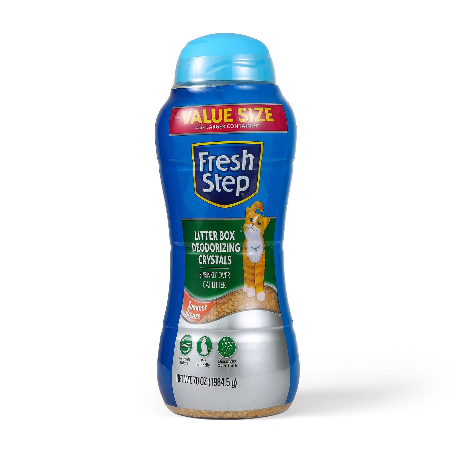 Litter Box Odor Eliminator - These scent boosting cat litter crystals mix in with your cat's litter and release a light fragrance every time your cat uses the litter box; concealing odors and keeping your litter pan and home smelling fresh and clean 100% Non-toxic - Fresh Step crystals are completely safe, non-toxic and pet friendly; no need to worry about exposing your kitty to chemicals No Residue - Fresh Step cat litter crystals will disintegrate over time because they are water soluble, no mess, no fuss Activate Every Time Your Cat Steps - These kitty litter crystals are activated every time your cat uses the litter box; giving your litter pan a constant boost of freshness Fresh Scent - The revitalizing Fresh Scent will make your Fresh Step crystal litter pleasing to the senses, and will make you forget that it is litter Includes 1 Fresh Step litter crystals value size in fresh scent, 70 oz.