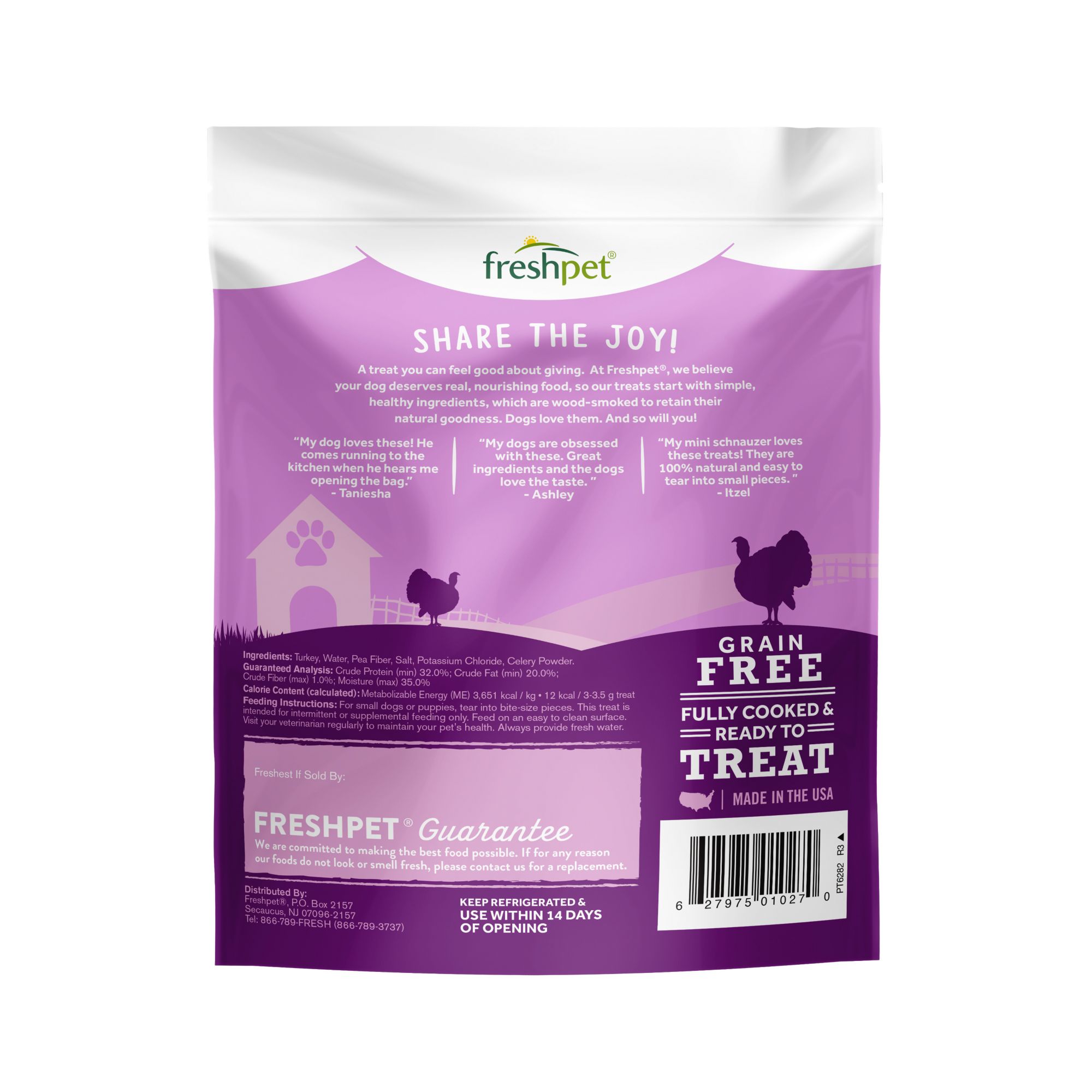 Real meat treats Limited ingredients Convenient re-sealable pouch Served fresh from the fridge Made in the USA Includes one 6-oz. bag