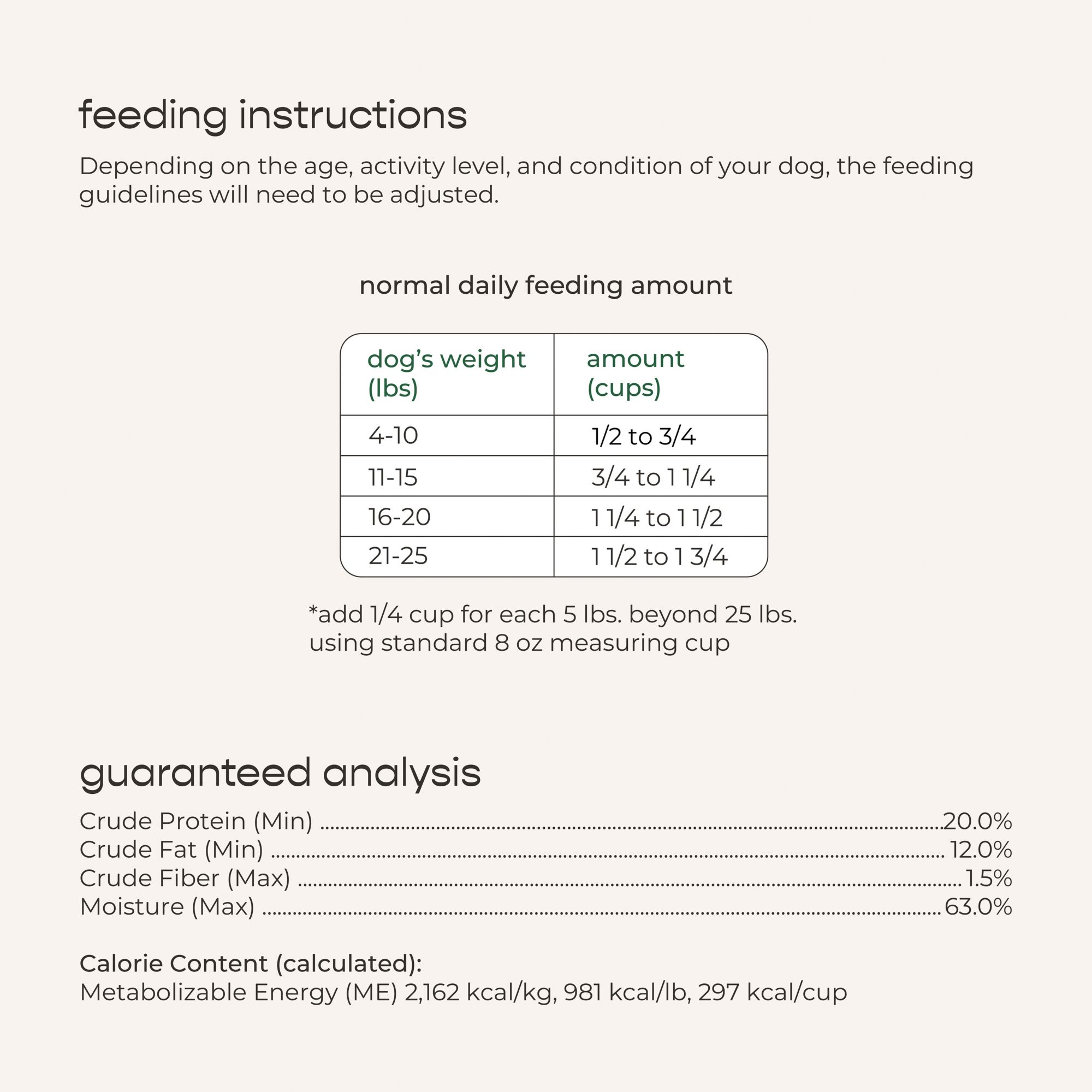 Chicken, Cranberries, Carrots, Pea Protein, Pea Fiber, Ground Oats, Natural Flavors, Vinegar, Carrageenan, Cassia Gum, Salt, Potassium Chloride, Spinach, Minerals (Zinc Proteinate, Iron Proteinate, Copper Proteinate, Manganese Proteinate, Sodium Selenite, Calcium Iodate), Vitamins (Choline Chloride, Vitamin E Supplement, Vitamin A Supplement, Niacin, Calcium Pantothenate, Biotin, Thiamine Mononitrate, Riboflavin, Vitamin B12 Supplement, Vitamin D3 Supplement, Pyridoxine Hydrochloride, Folic Acid).